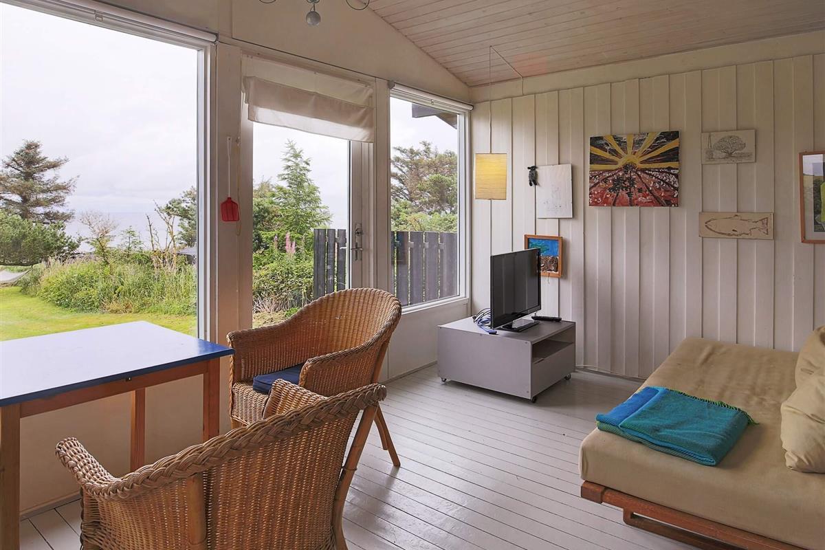 Das kleine Ferienhaus ist eher einfach ausgestattet und bietet zwei kleine Schlafzimmer mit jeweils einem Doppelbett, ein Bad mit Dusche sowie einen offenen Küchen-/Wohnbereich mit Ess- und Sitzecke sowie schöner Aussicht zum Wasser. Davor erwartet Sie eine große, über Eck angelegte Holzterasse mit teils großartigem Meerblick! Vom Grundstück aus haben Sie über eine Treppe direkten Zugang zum Ufer.