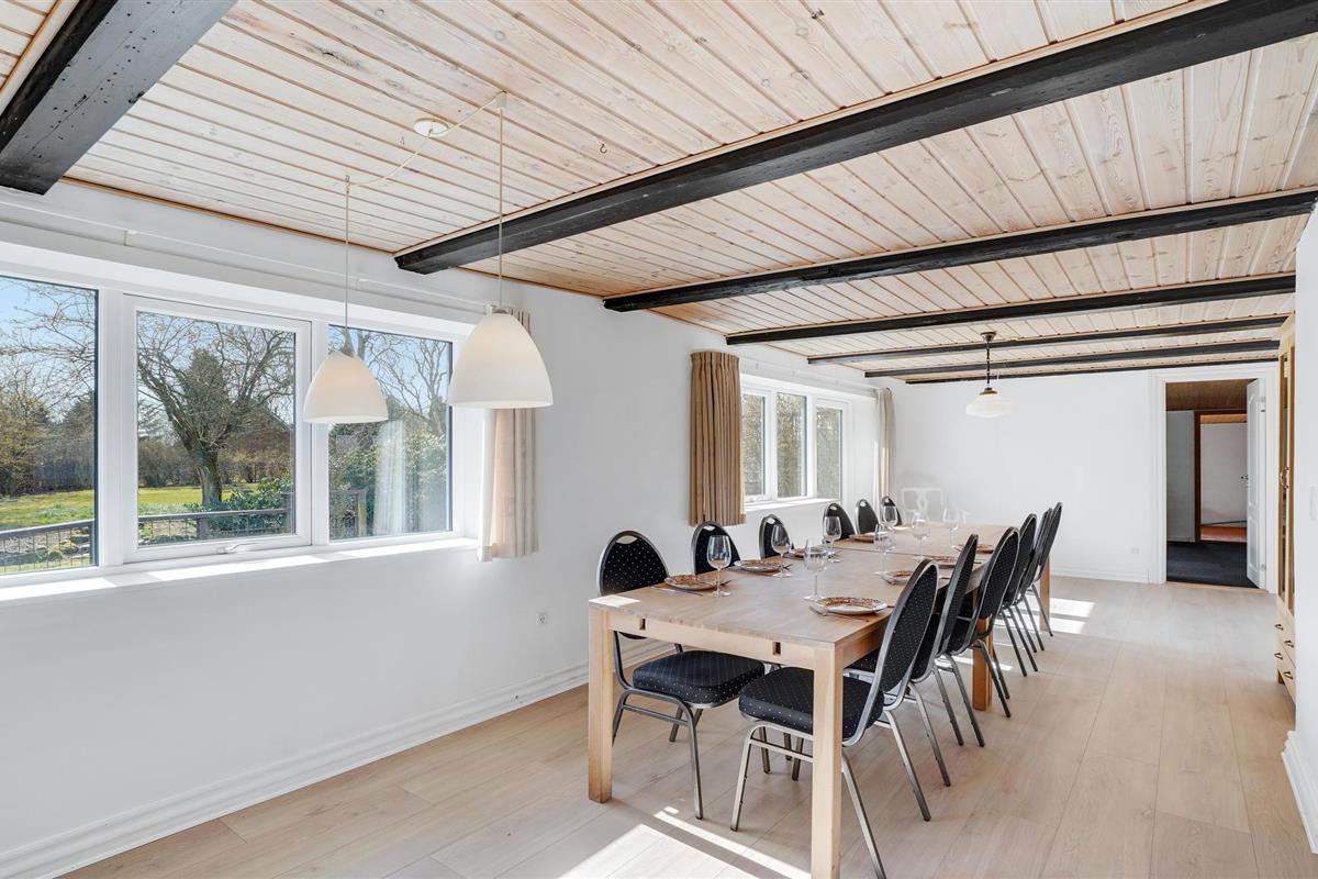 Op een idyllische locatie, niet ver van het Skive Fjord, verwelkomt deze zeer ruime voormalige boerderij je voor een ontspannen vakantie met meerdere gezinnen of een grotere groep in een prachtige natuurlijke omgeving. Een authentieke en gezellige woonervaring wacht op je in de lichte kamers met zichtbare plafondbalken. Speel een spelletje biljart of tafeltennis onder het dak met een betoverend uitzicht door het grote gevelraam en geniet van maaltijden aan de lange eettafel met een prachtig uitzicht op de tuin.