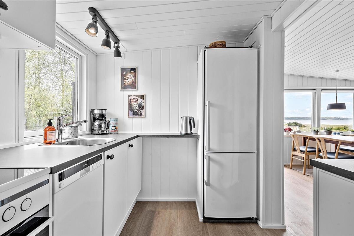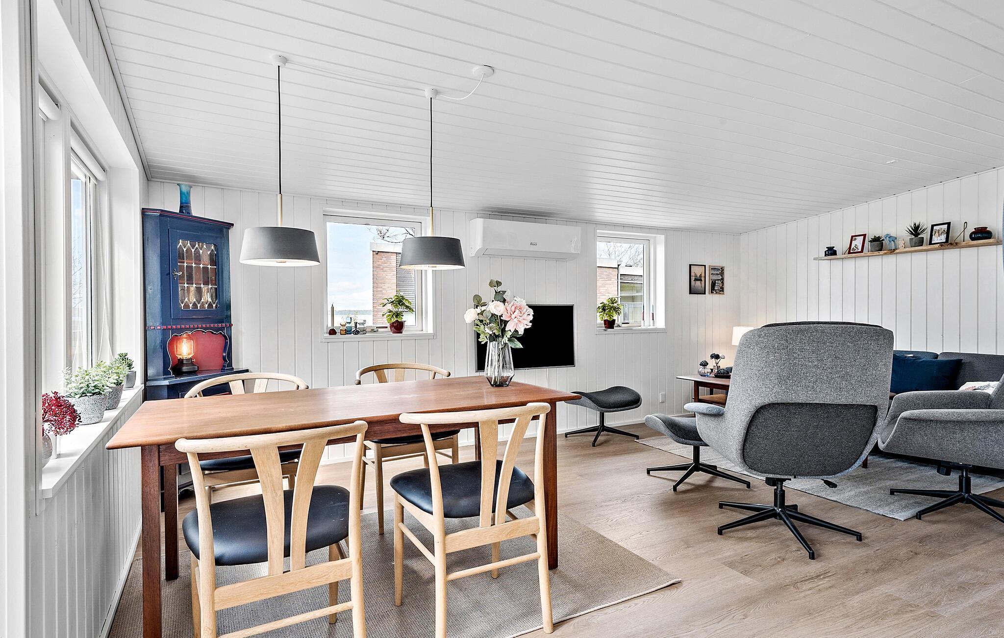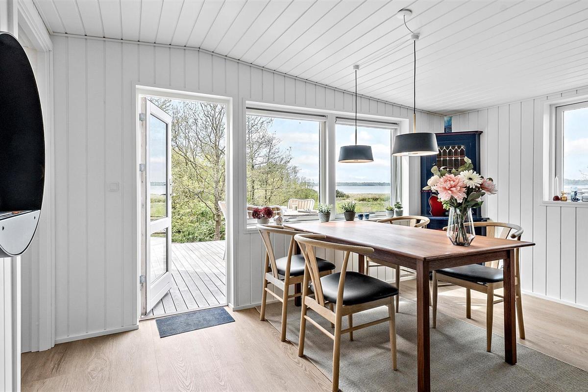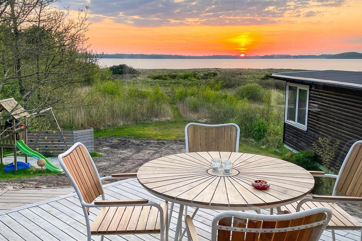 Het terras loopt langs verschillende kanten van het huis, zodat je de hele dag zon, schaduw en beschutting kunt vinden. Vanaf het terras heb je een fantastisch uitzicht tot aan de punt van Lundø. Lees een goed boek, adem de frisse lucht in en gril sappige steaks op de barbecue in de avondzon. Misschien kun je jezelf trakteren op een duik in de hot tub onder de sterrenhemel?