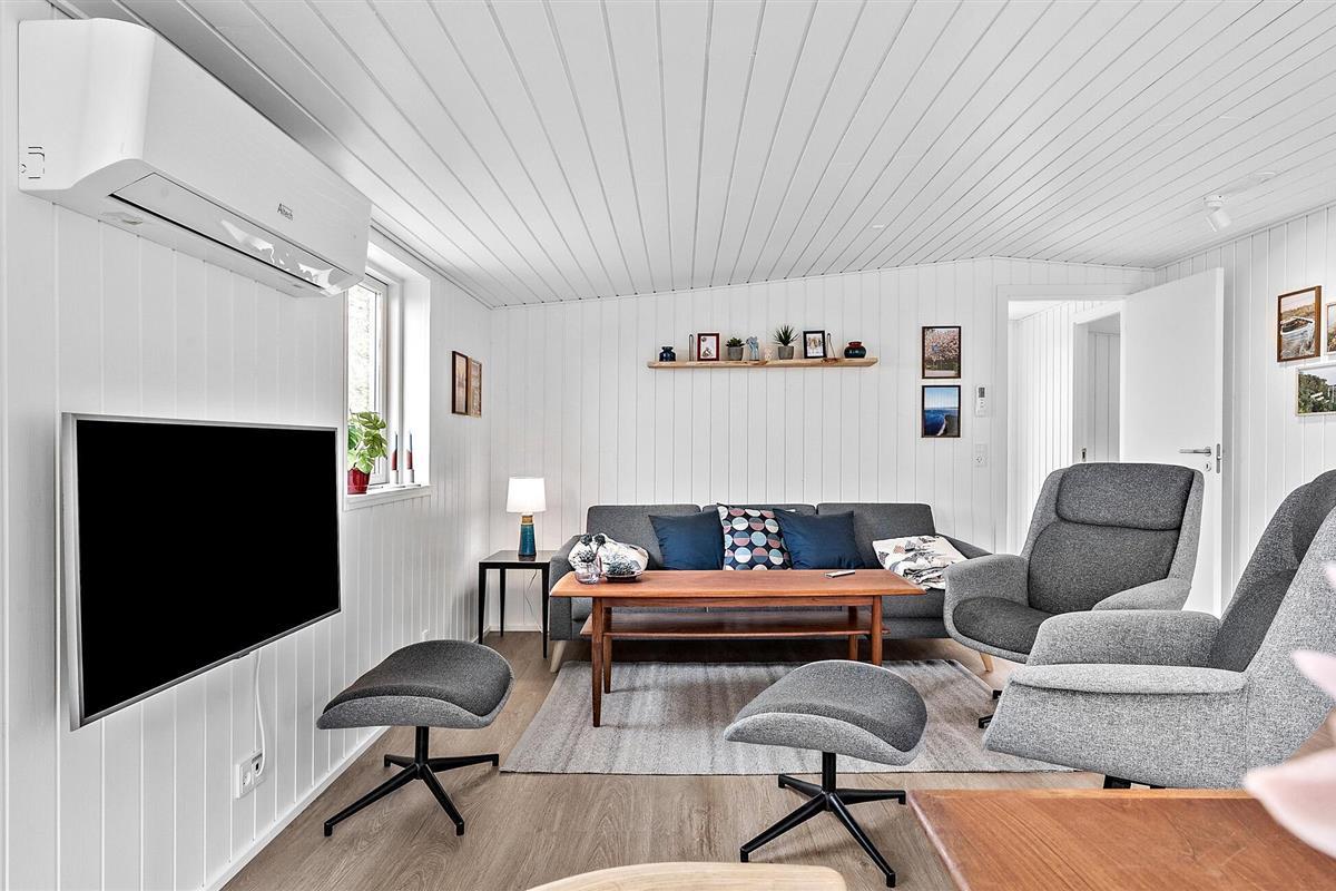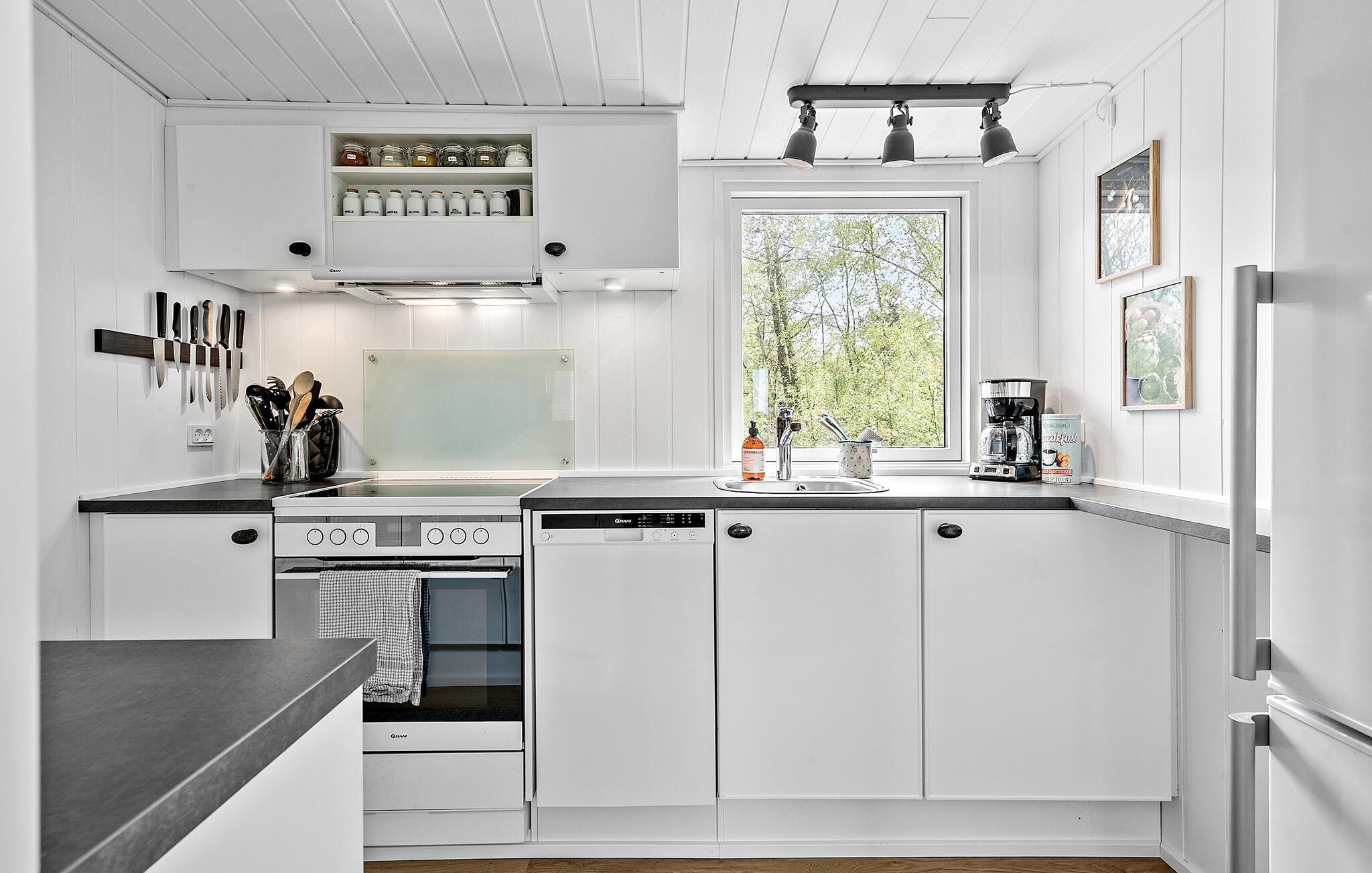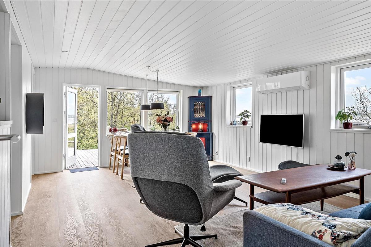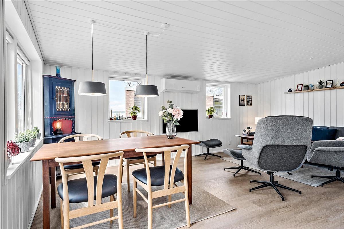 Het terras loopt langs verschillende kanten van het huis, zodat je de hele dag zon, schaduw en beschutting kunt vinden. Vanaf het terras heb je een fantastisch uitzicht tot aan de punt van Lundø. Lees een goed boek, adem de frisse lucht in en gril sappige steaks op de barbecue in de avondzon. Misschien kun je jezelf trakteren op een duik in de hot tub onder de sterrenhemel?