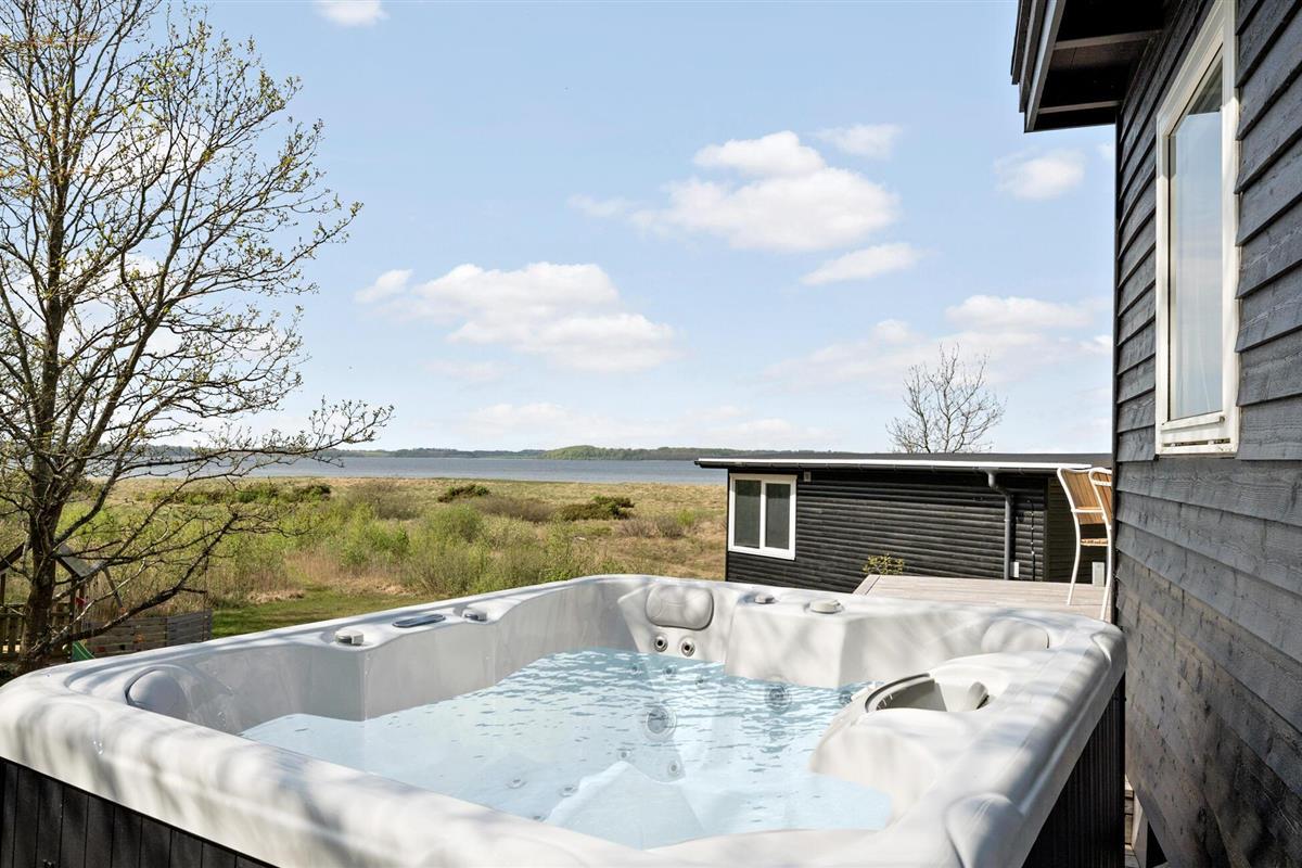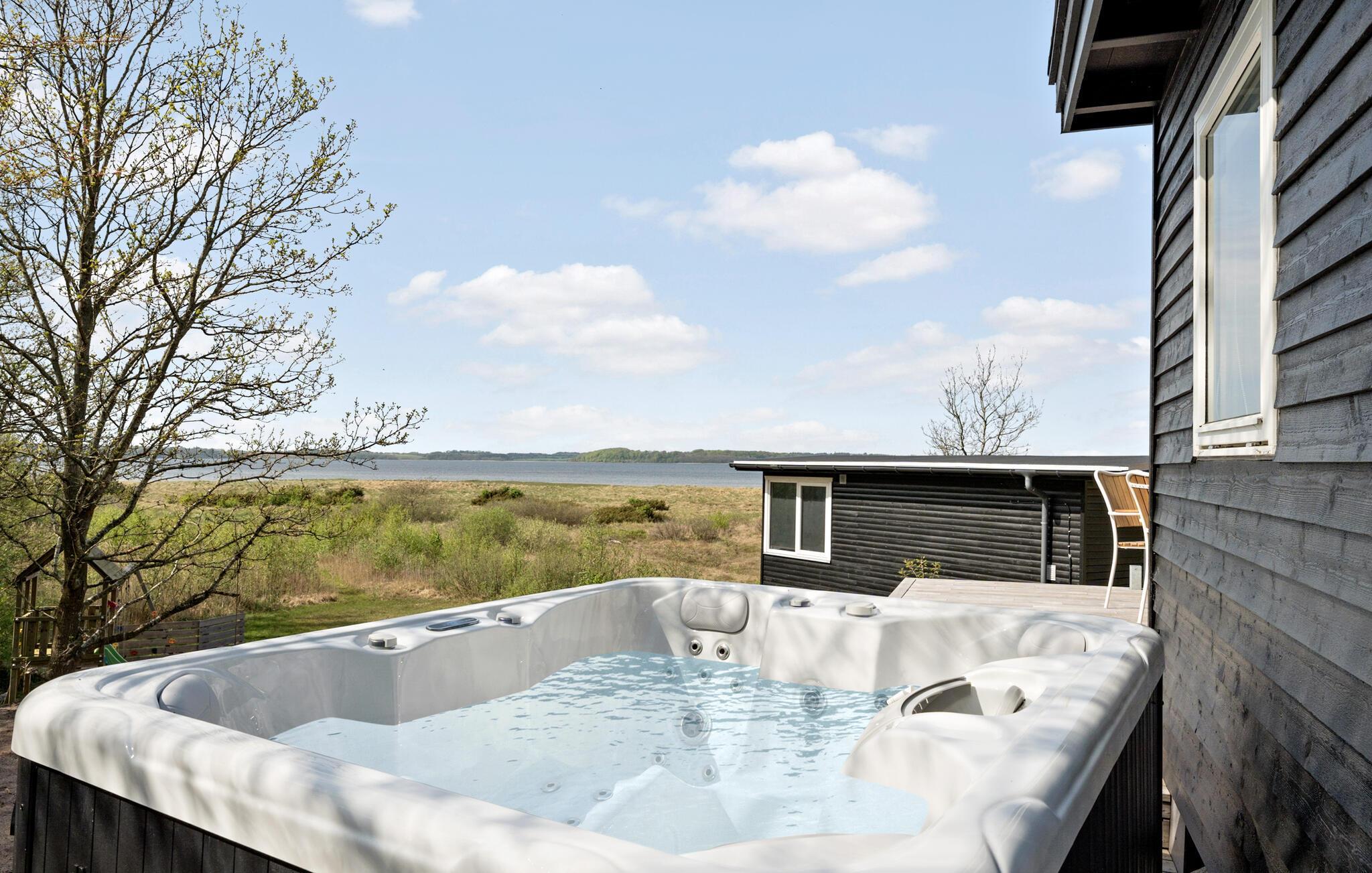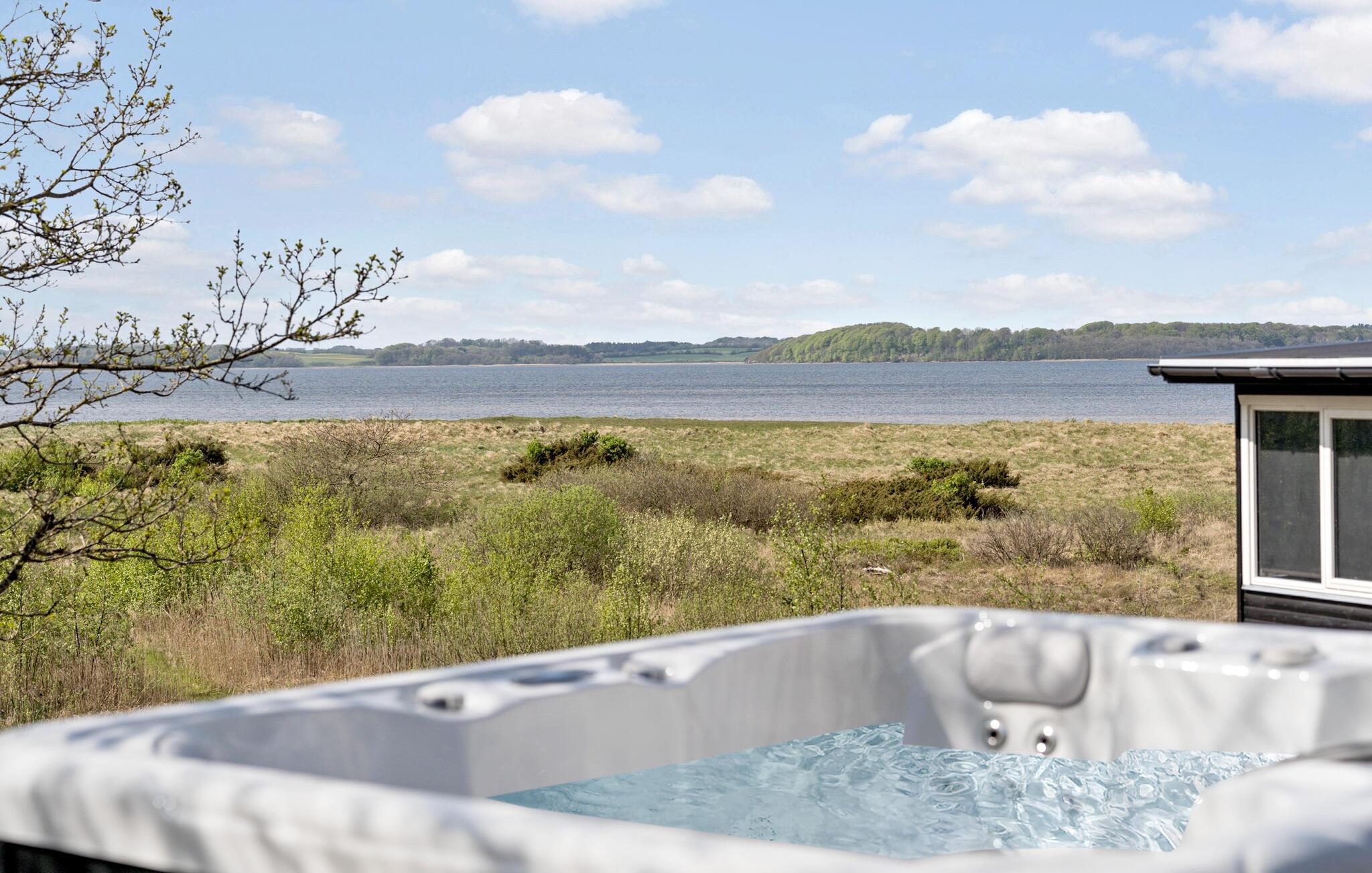 Comfortabel vakantiehuis met hot tub en uitzicht op Limfjord bij Lundø Strand, perfect voor rust en ontspanning.