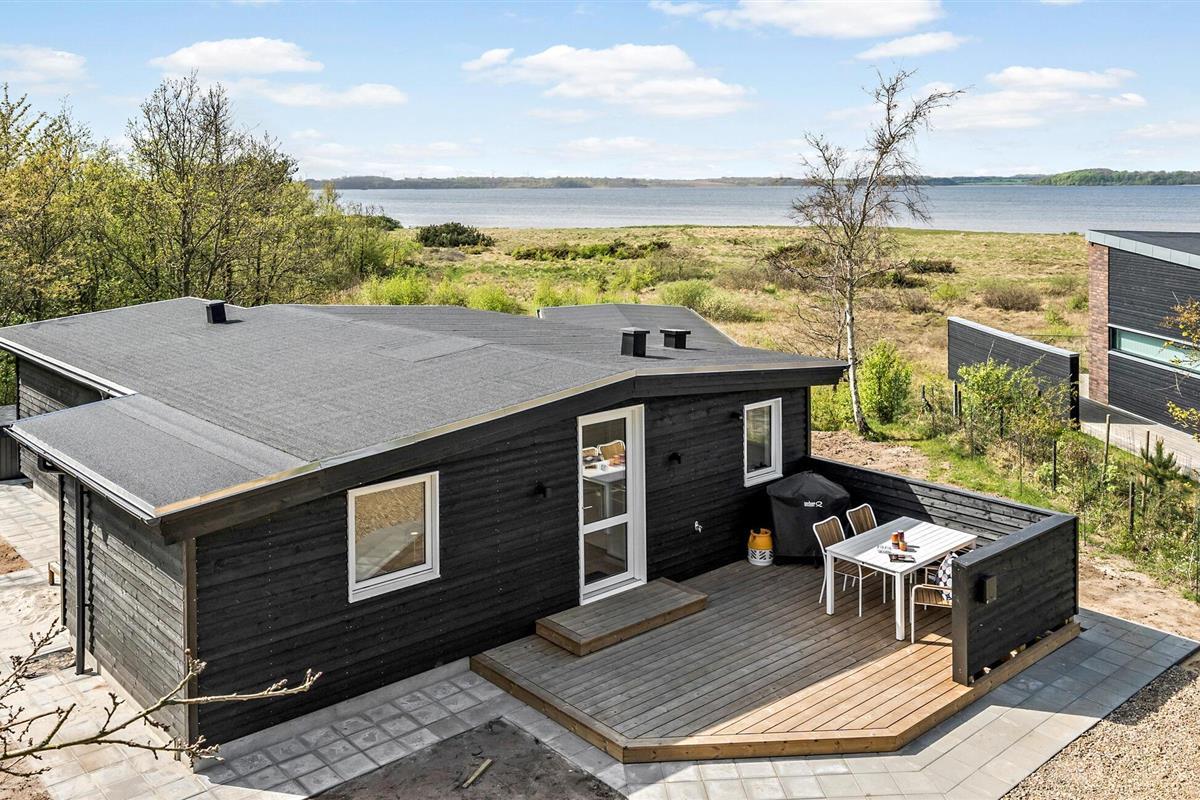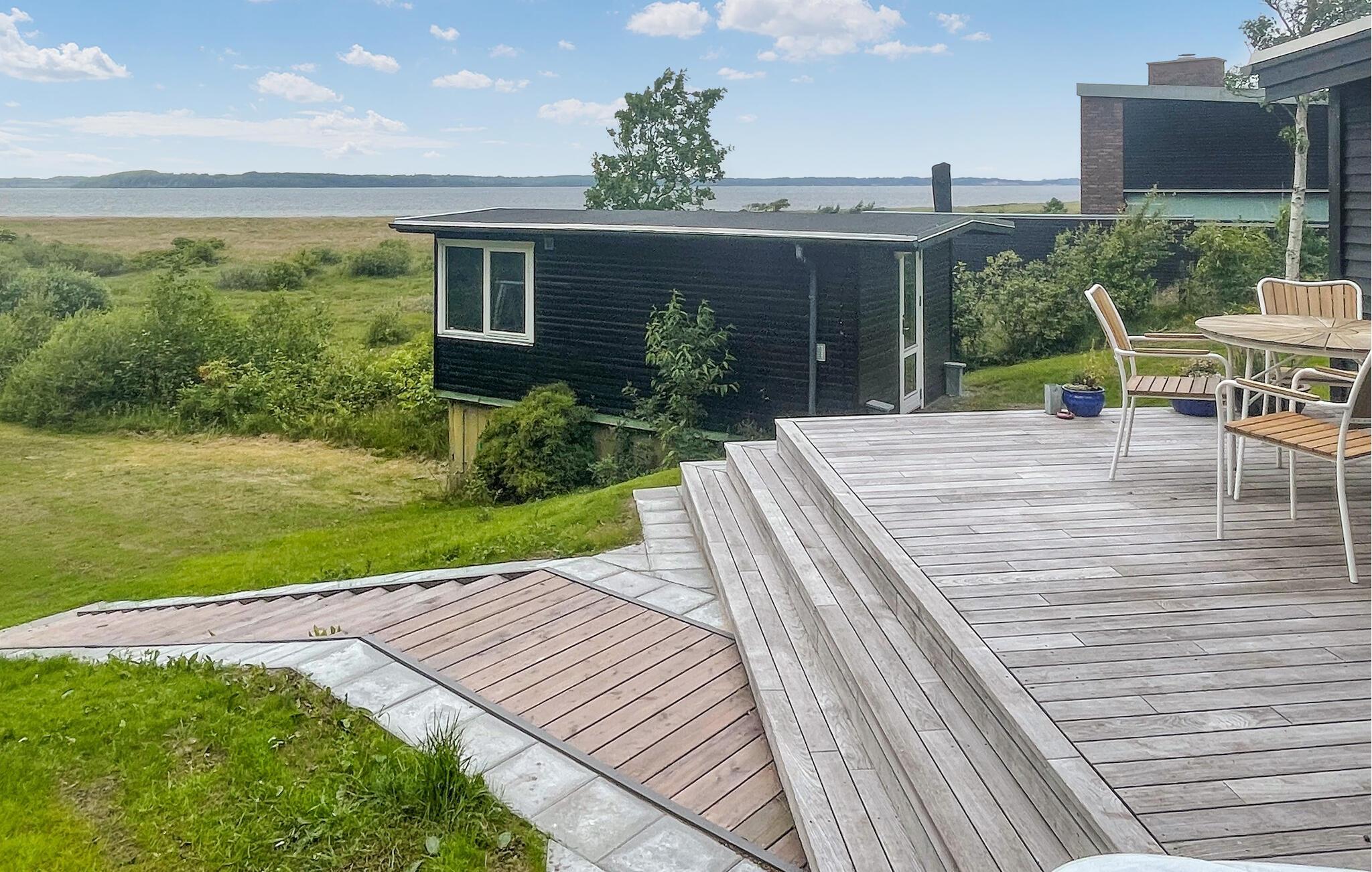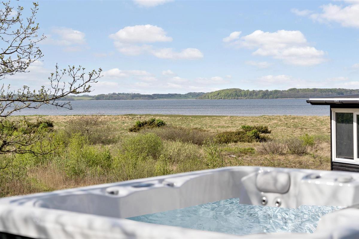 Comfortabel vakantiehuis met hot tub en uitzicht op Limfjord bij Lundø Strand, perfect voor rust en ontspanning.