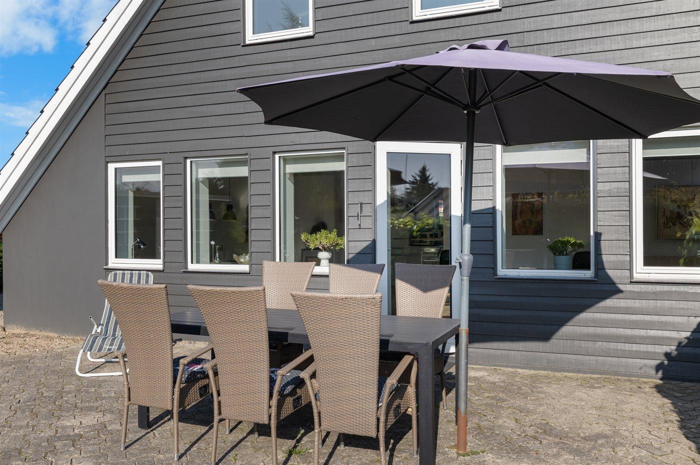 De vakantiewoning is gelegen op een 780 m² groot aangelegde tuin. Afstand tot de zee 200 m. Dichtstbijzijnde winkel 300 m. Bij de vakantiewoning hoort 20 m² terras. Gereedschapsruimte. Parkeerplaats bij het huis.