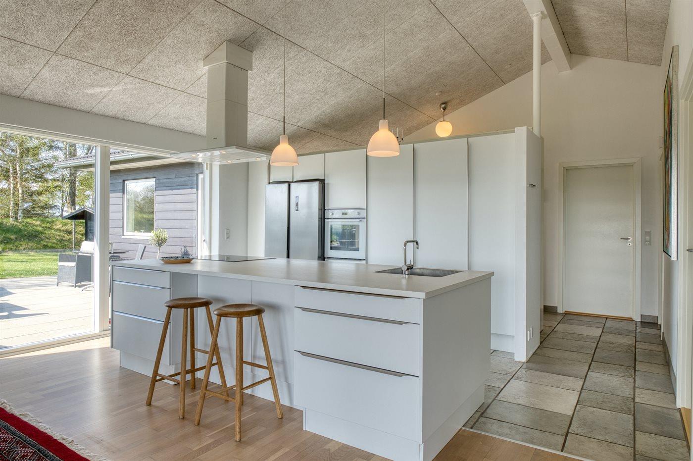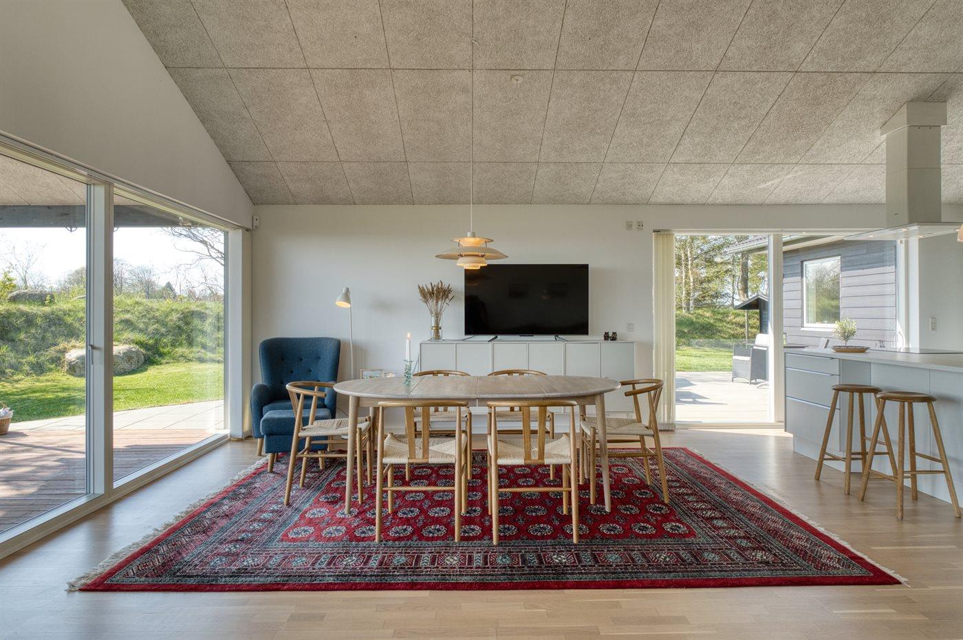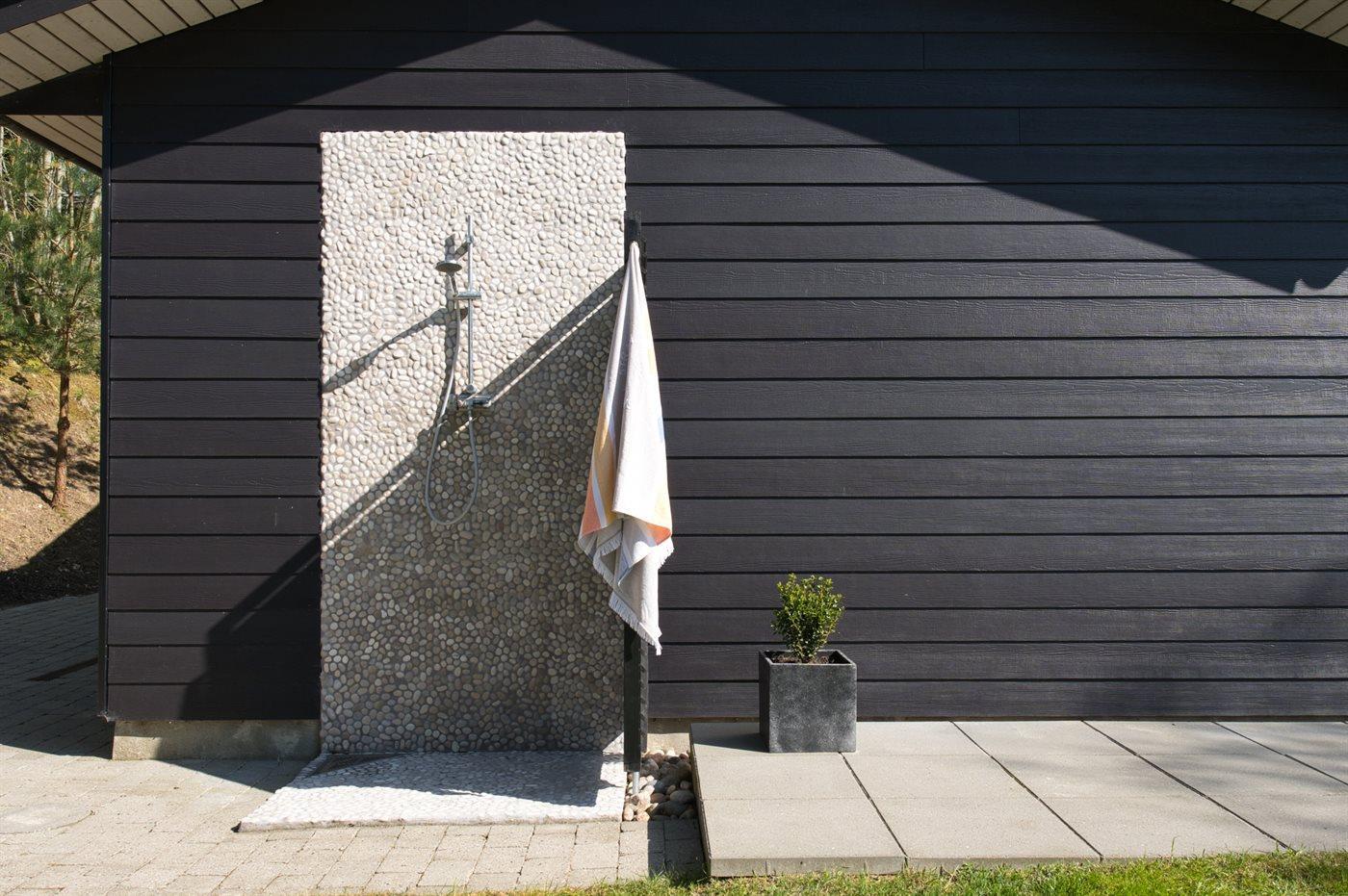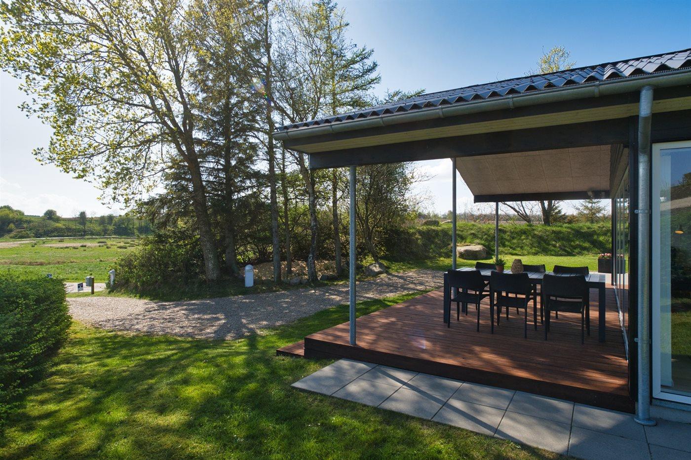 De vakantiewoning is gelegen op een 1500 m² groot natuural grond. Afstand tot de fjord 50 m. Er is een zwemsteiger in de buurt. Dichtstbijzijnde winkel 5000 m. Er is een golfbaan op een afstand van 6000 m. Bij de vakantiewoning hoort terras. Daarnaast is er een overdekt terras.Vuurplaats. Buitendouche. Barbecue. Het huis heeft een stopcontact voor het opladen van een elektrische auto. Parkeerplaats bij het huis.