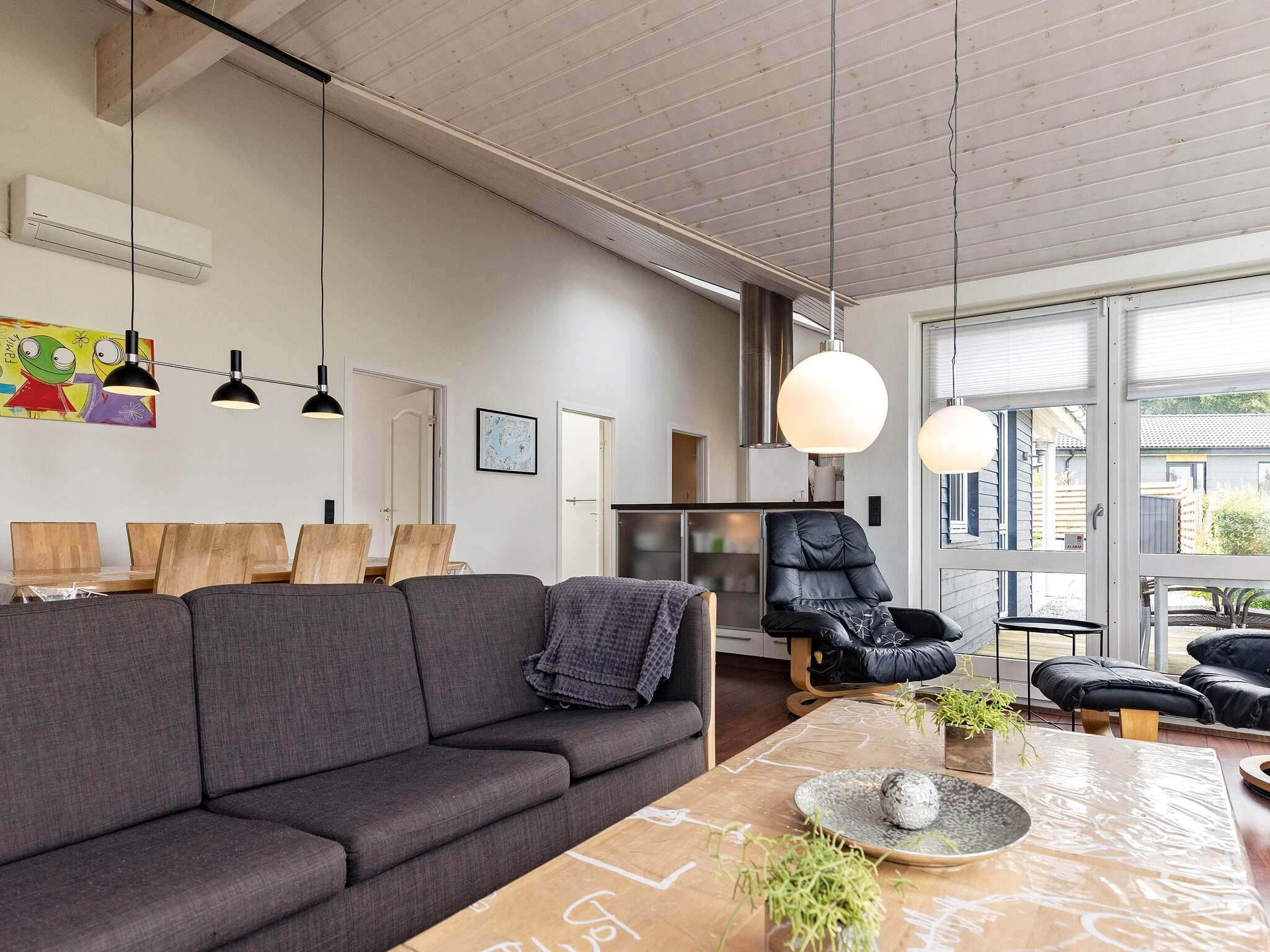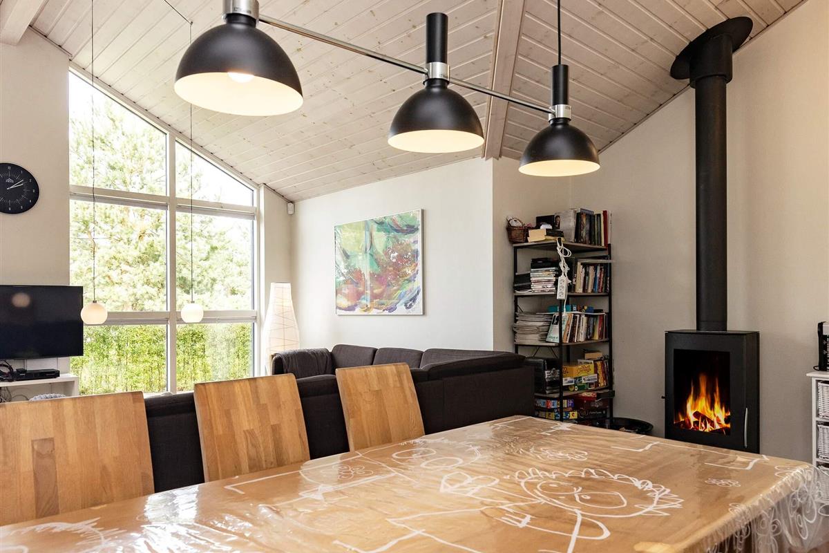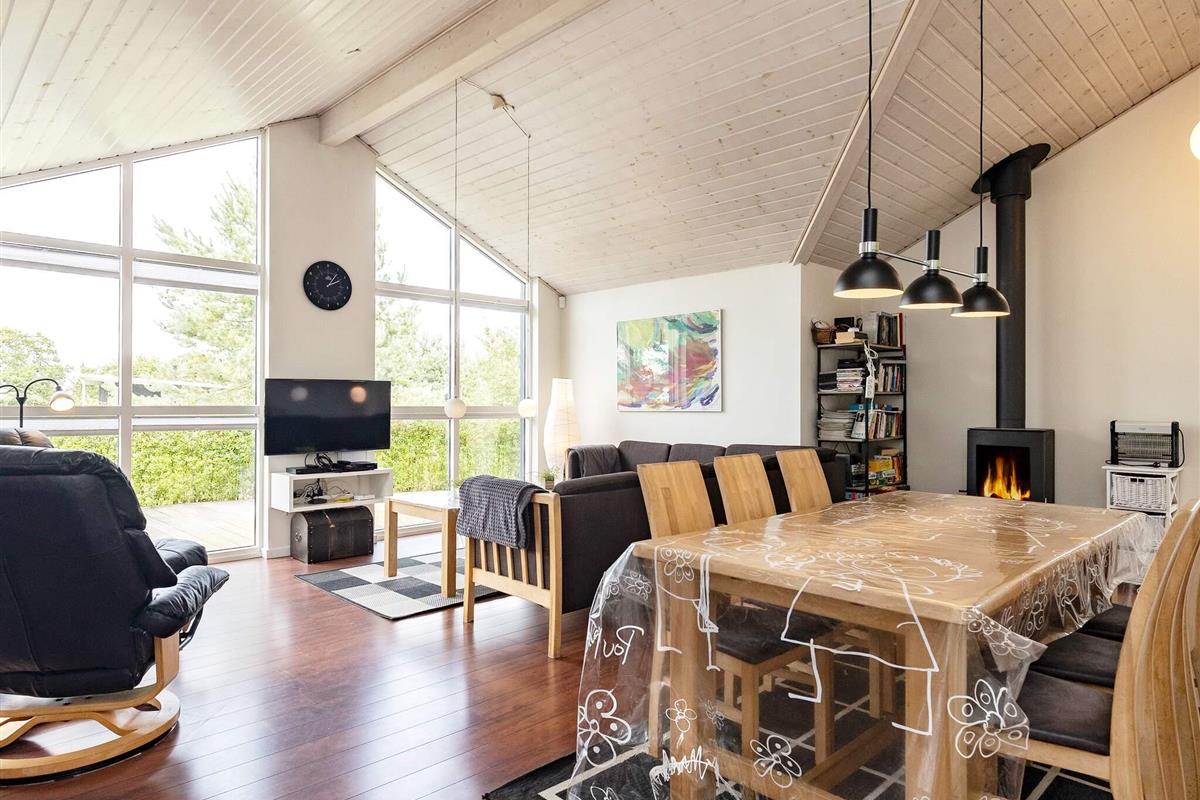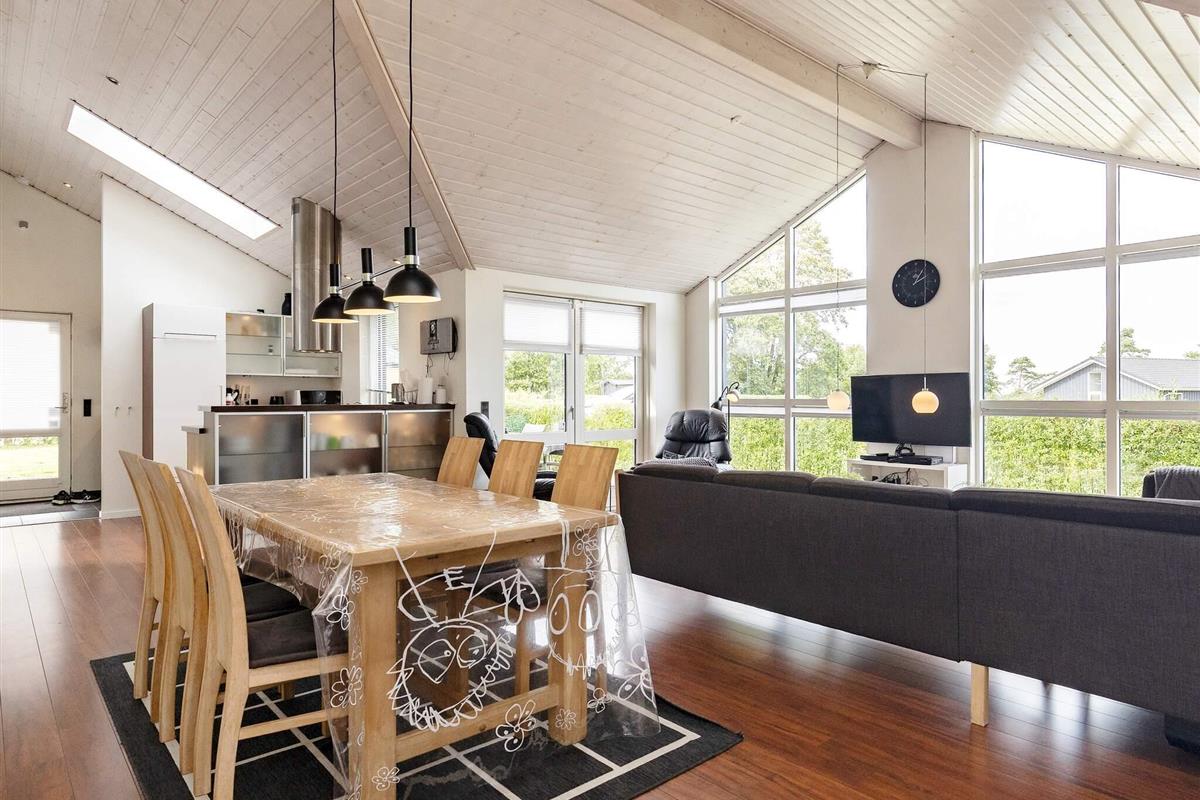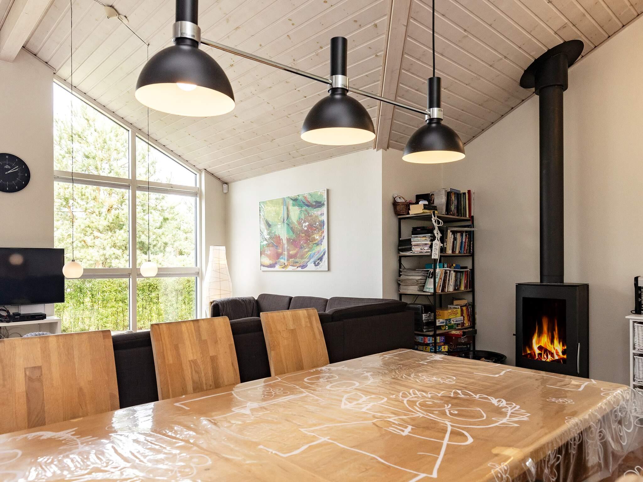 Das Ferienhaus hat einen kombinierten Aufenthalts- und Küchenbereich, vier Schlafzimmer sowie ein Bad mit Whirlpool und eineGästetoilette. Außerdem sind u.a. ein praktischer Hauswirtschaftsraum mit Waschmaschine, Geschirrspüler, Holzofen und eine klimafreundliche Wärmepumpe im Haus vorhanden. Es wurde durchgehend hell und mit ansprechendem Mobiliar eingerichtet.
