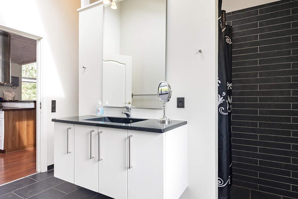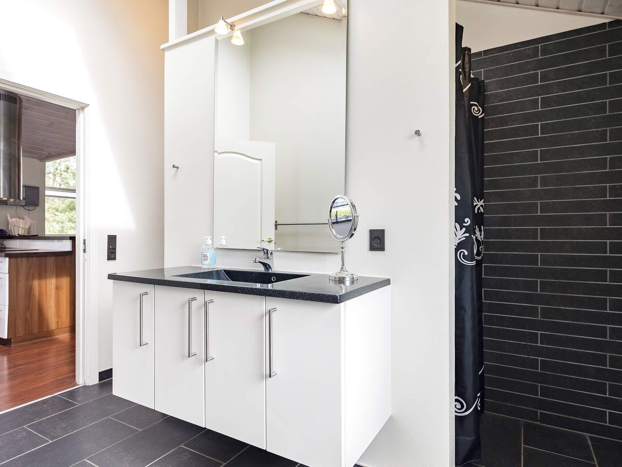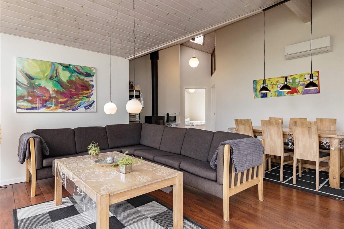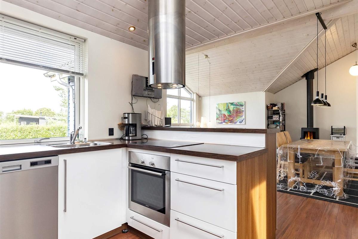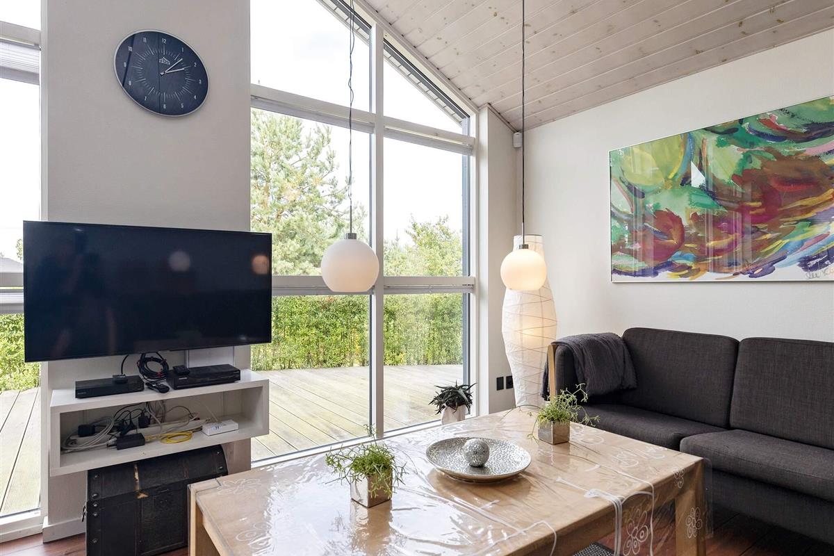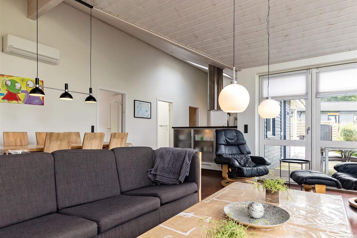 Das Ferienhaus hat einen kombinierten Aufenthalts- und Küchenbereich, vier Schlafzimmer sowie ein Bad mit Whirlpool und eineGästetoilette. Außerdem sind u.a. ein praktischer Hauswirtschaftsraum mit Waschmaschine, Geschirrspüler, Holzofen und eine klimafreundliche Wärmepumpe im Haus vorhanden. Es wurde durchgehend hell und mit ansprechendem Mobiliar eingerichtet.