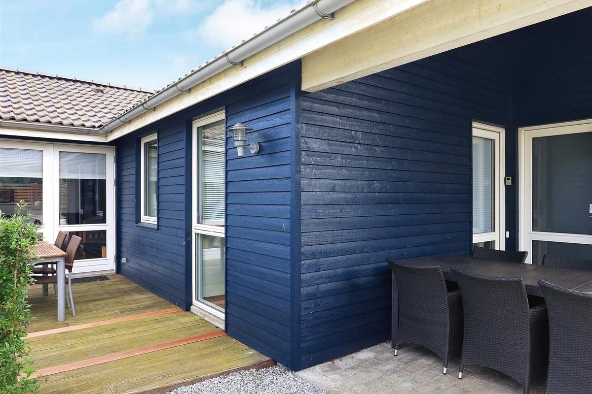 Dieses Ferienhaus mit weitläufiger Terrasse rund um das Haus liegt auf einem 1.900 m² großen Naturgrundstück mit Rasenfläche. Außerdem gibt es vor Ort auch eine Gemeinschaftsfläche mit Feuerstelle am Strand.