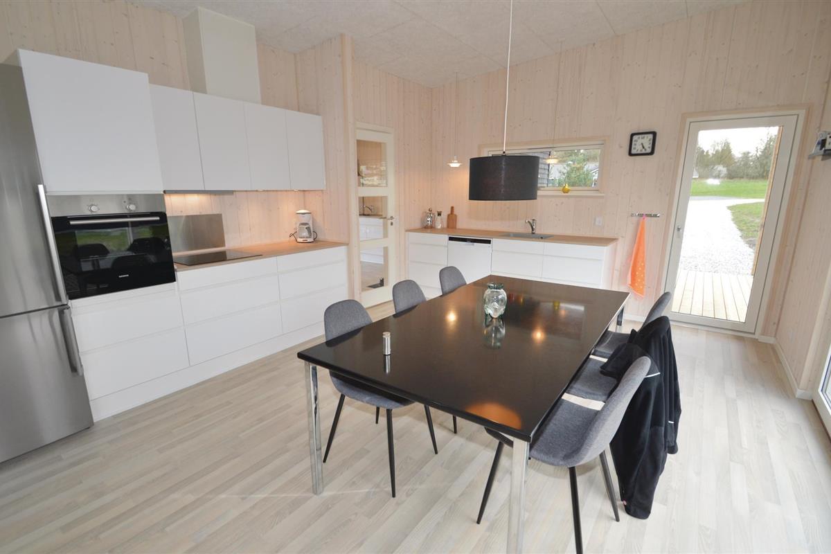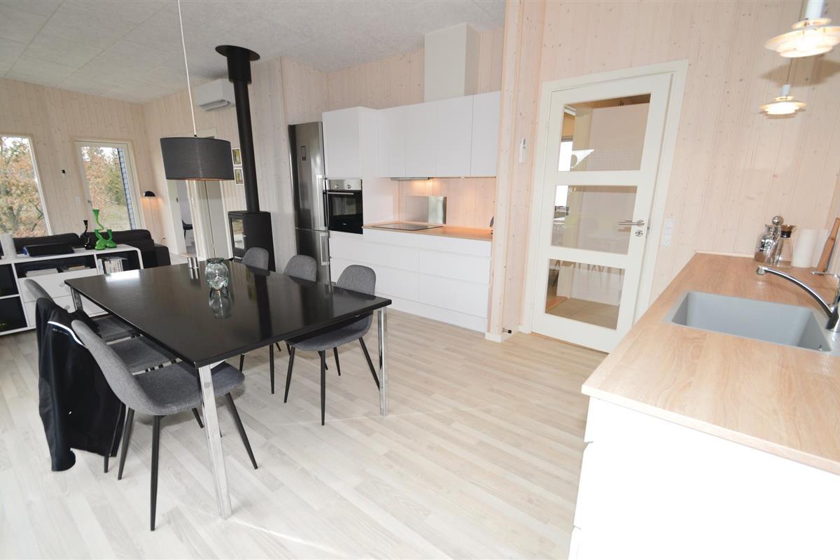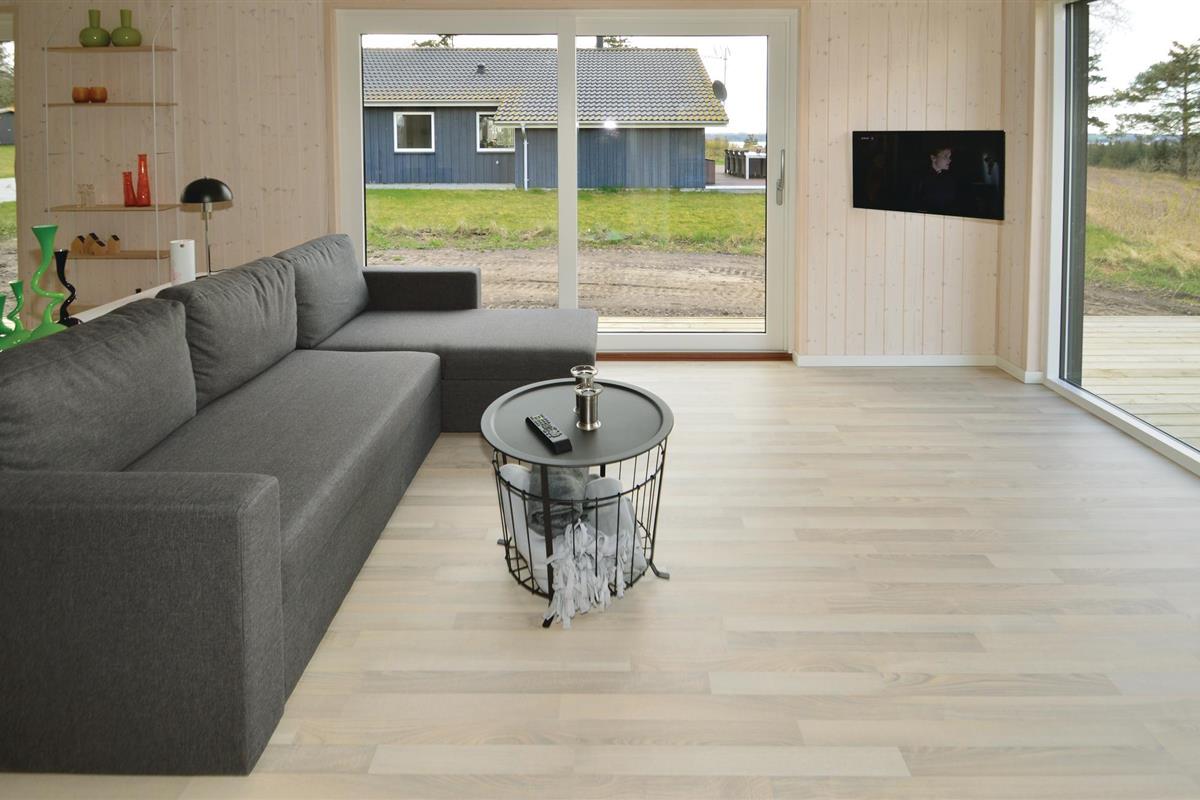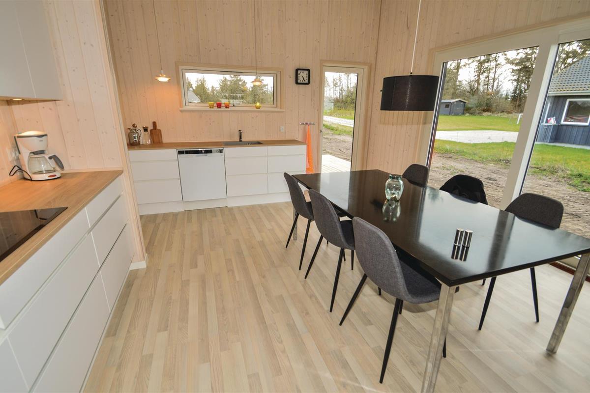 Mooi vakantiehuis gemaakt van hoogwaardige bouwmaterialen. Het werd gebouwd in 2017 en geniet van een uitstekende plaatsing met uitzicht op een ravijn en naar beneden naar Hjarbæk Fjord. Het interieur is minimalistisch met comfortabele meubels en de grote raampartijen laten overdag veel licht binnen.
