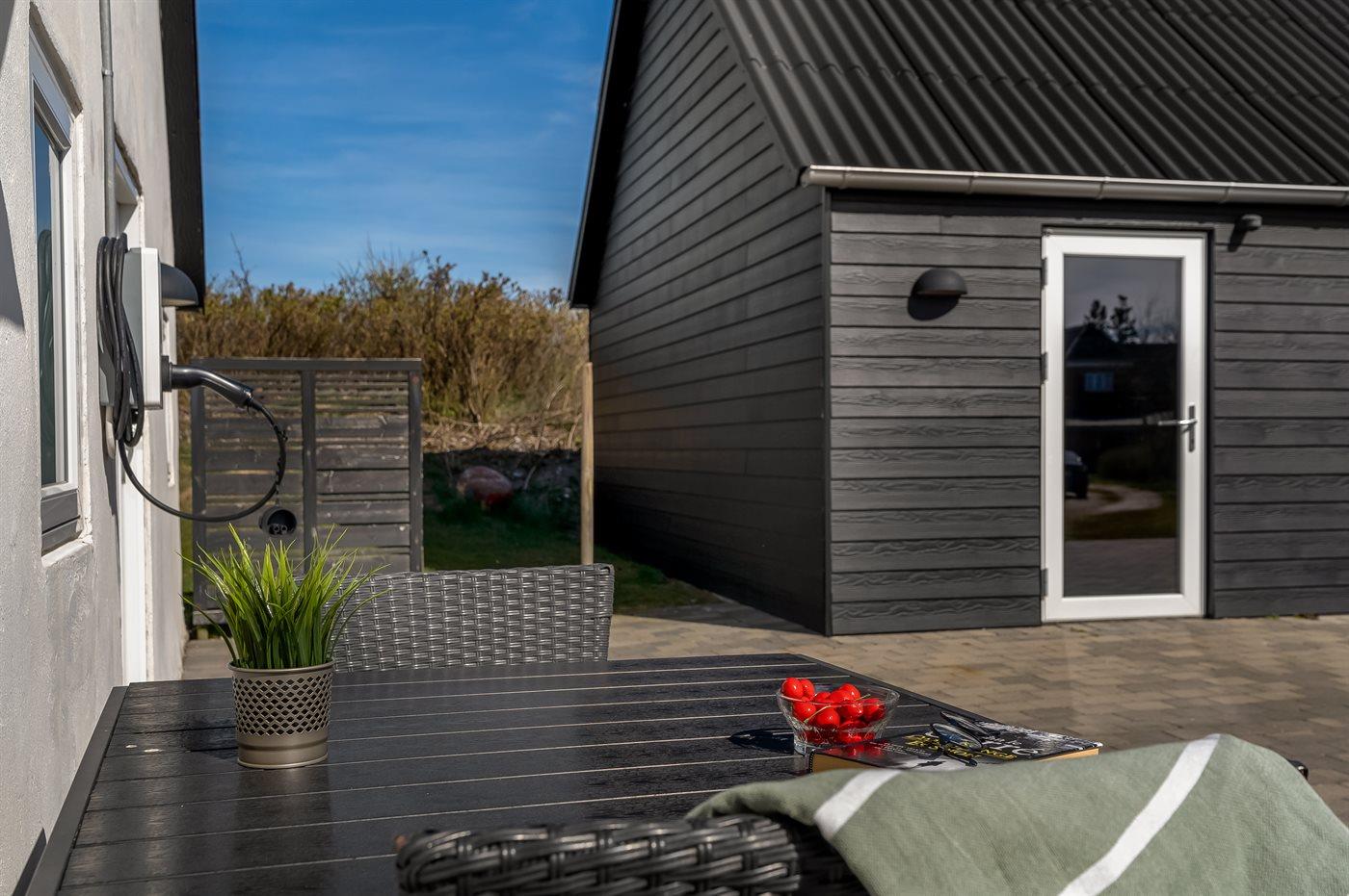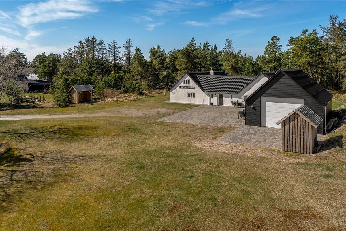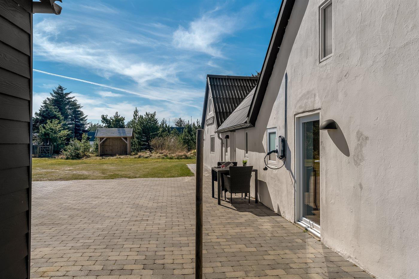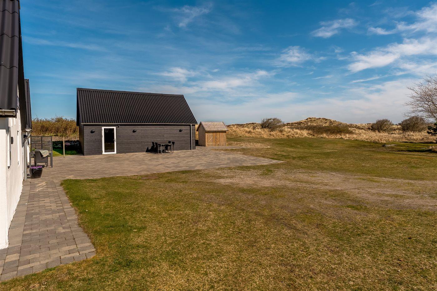 De vakantiewoning is gelegen op een 2100 m² groot natuural grond. De grond is omheind. Afstand tot de zee 1200 m. Dichtstbijzijnde winkel 8000 m. Bij de vakantiewoning hoort 90 m² terras. Gereedschapsruimte. Barbecue. Het huis heeft een stopcontact voor het opladen van een elektrische auto. Parkeerplaats bij het huis.