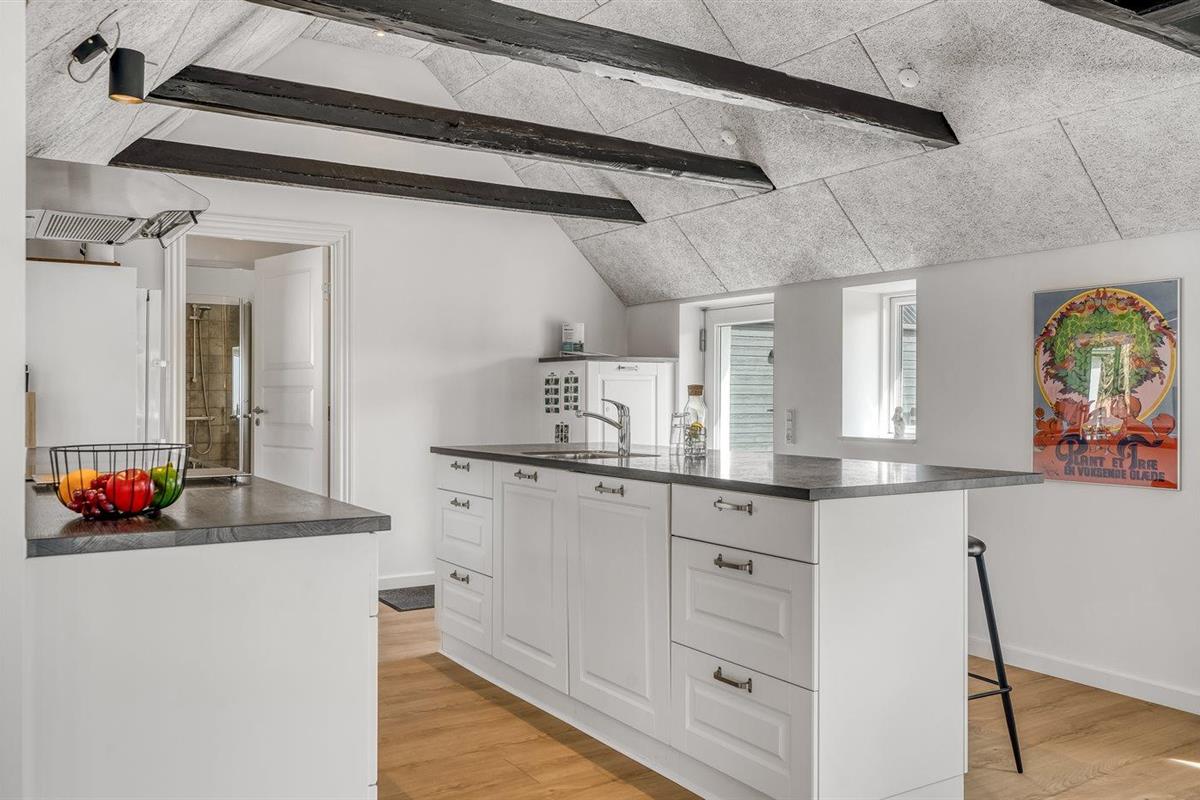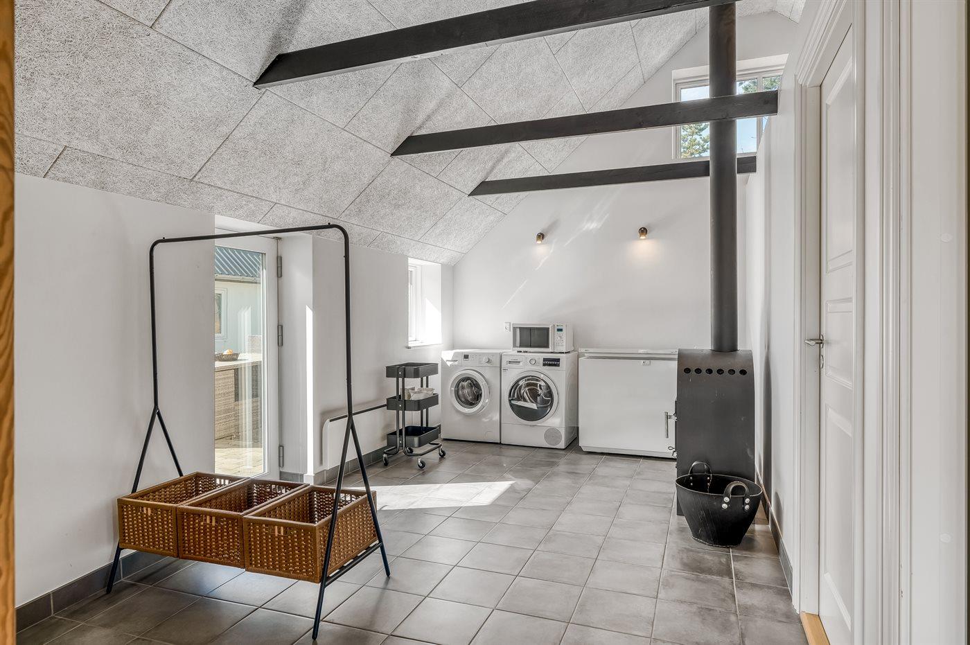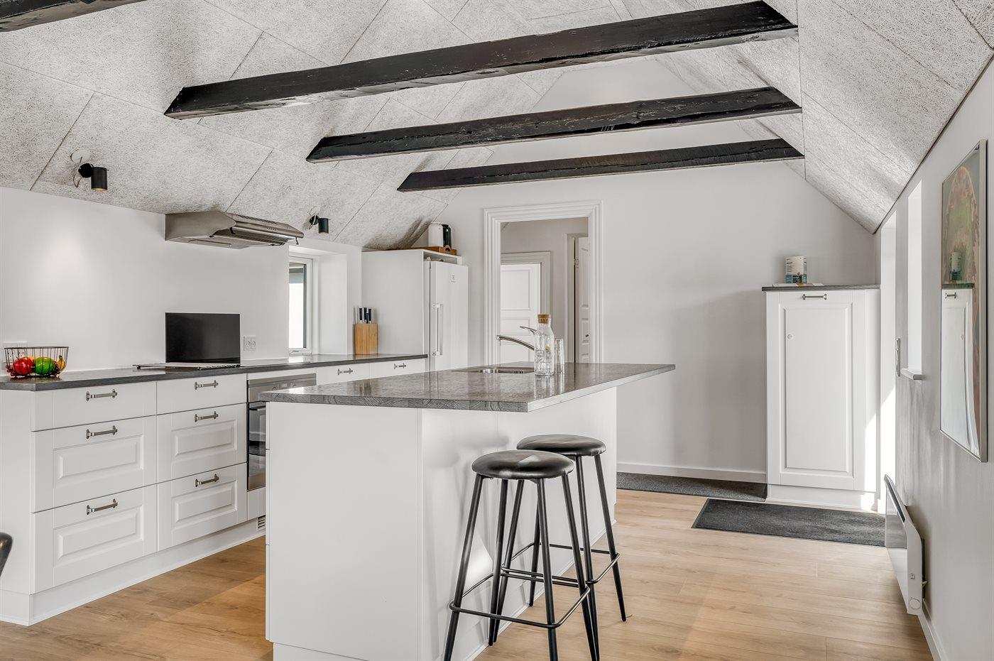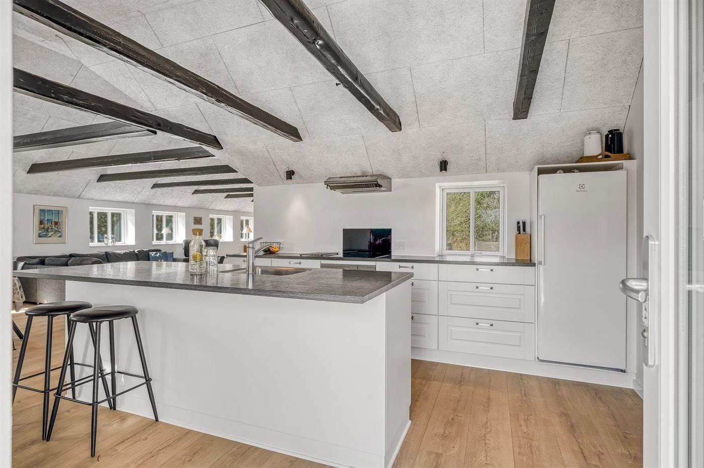 De keuken is uitgerust met koelkast Er is 4 inductiekookplaten, heteluchtoven en vaatwasser.