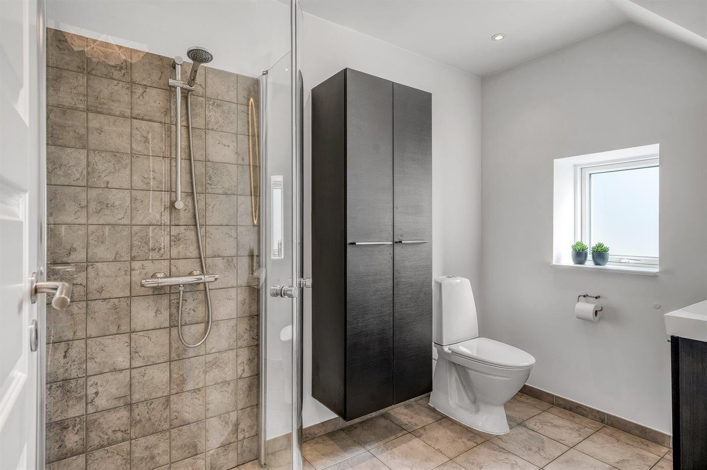 Er is 1 badkamer met douchehok en 2 toiletten, waarvan 1 gastentoilet. Er is vloerverwarming in 1 badkamer. Er is vloerverwarming in het gastentoilet.
