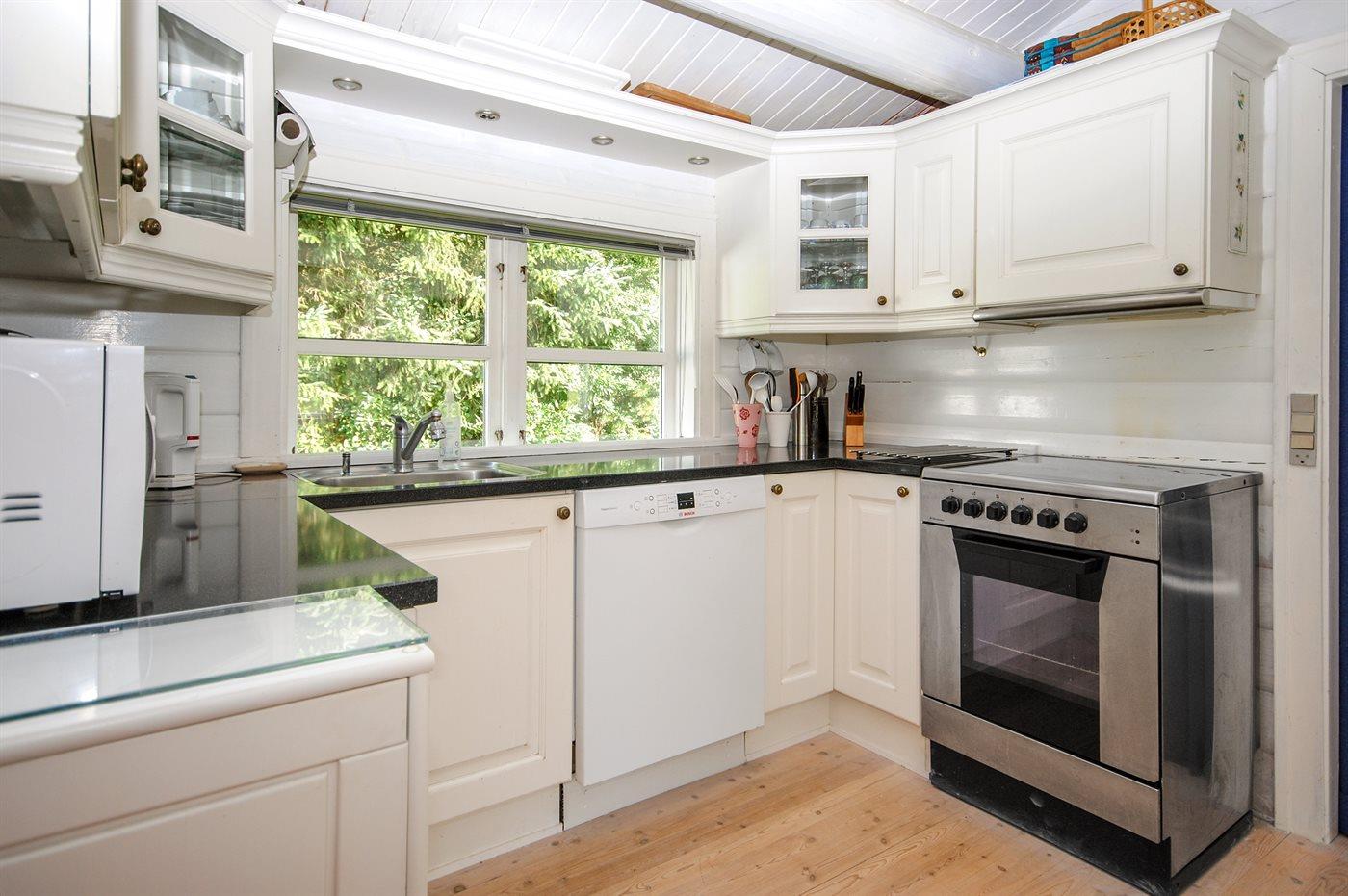 De keuken is uitgerust met koelkast Er zijn 4 keramische kookplaten, heteluchtoven, magnetron en vaatwasser.