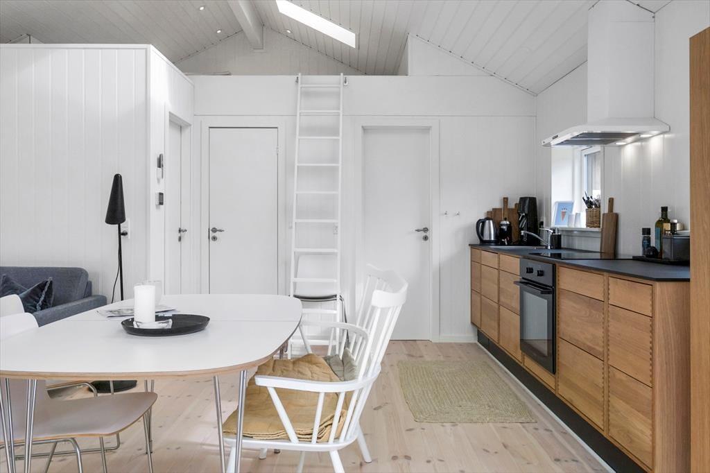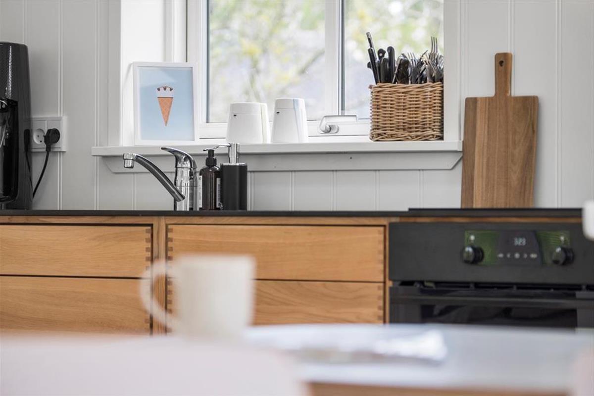 Hier an der Adresse finden Sie ein gut gebautes Ferienhaus aus dem Jahr 2021, das sich mit einer schwarzen Holzfassade und einem hellen und schönen Interieur auf die schönste Weise präsentiert. Die großen Fenster lassen das Sonnenlicht aus verschiedenen Ecken der Welt herein, und mit einer Decke bis zum Dach und weißer Farbe an den Wänden wirkt das Wohnzimmer hell und luftig. Eine köstliche Küche ist in den Raum integriert, so dass das Kochen ein natürlicher Teil der gemeinsamen Momente wird. Wenn Sie einen Film sehen möchten, machen Sie es sich auf dem Sofa bequem und schalten Sie den Flachbildfernseher ein, der mit Chromecast verbunden ist. Das Badezimmer ist einfach, sauber und verfügt über eine Dusche, und in den zwei Schlafzimmern können insgesamt drei Personen schlafen. Wenn Sie einen zusätzlichen Schlafplatz benötigen, können Sie es sich im Wohnzimmer gemütlich machen.