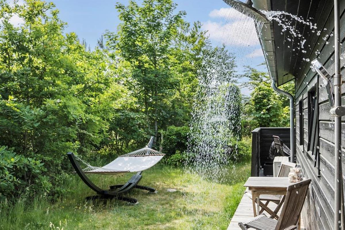 Vom Hauptschlafzimmer und vom Wohnzimmer aus haben Sie direkten Zugang zu der schönen Holzterrasse, die sich um das Haus herum erstreckt. Das bedeutet, dass Sie mehrere tolle Sitzgelegenheiten zur Auswahl haben - und wenn Sie sich nach Ihrer Rückkehr vom Strand das Salz und den Sand abwaschen müssen, gibt es sogar eine Außendusche. Für Ihr Auto gibt es einen Carport.