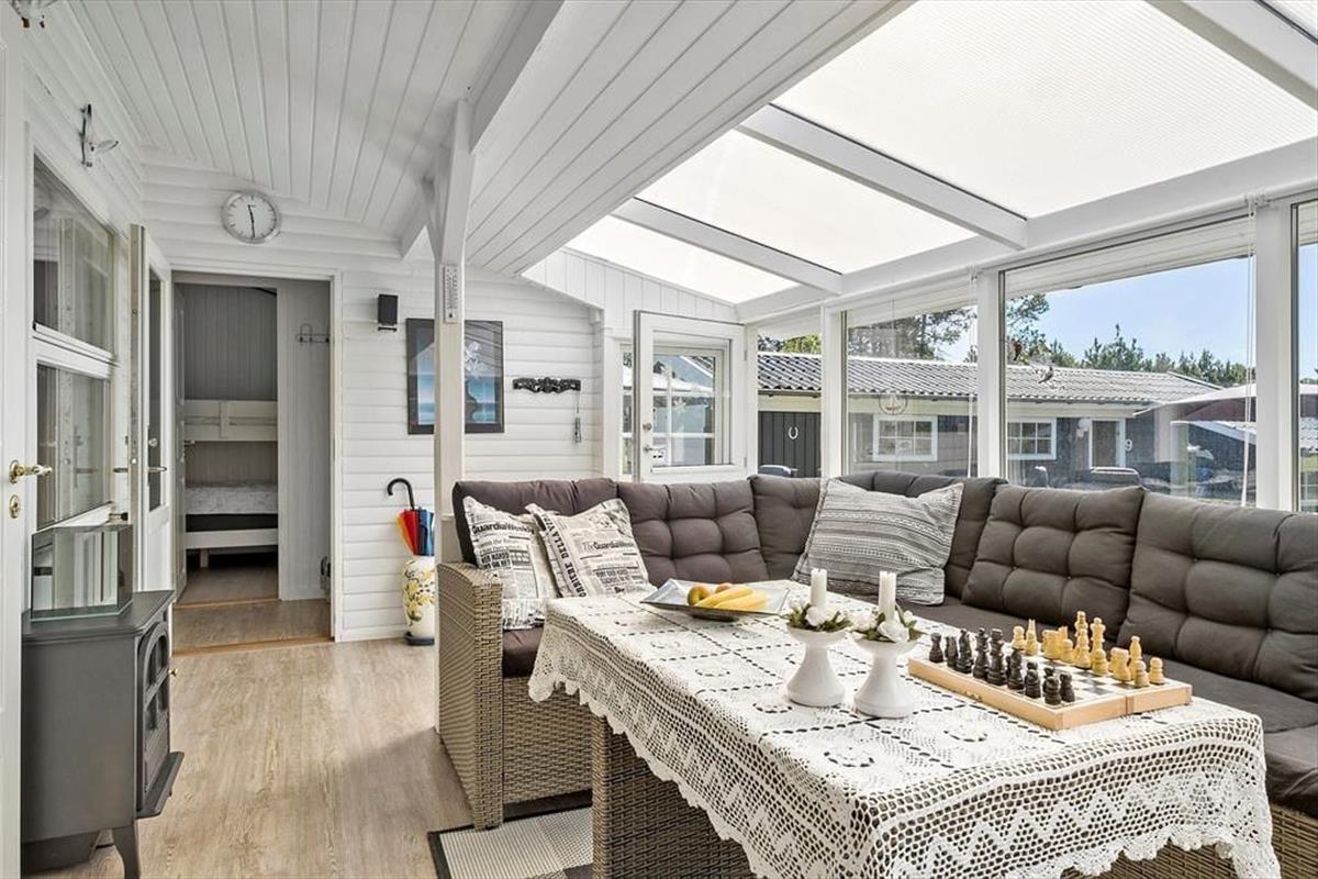 Når du træder indenfor i sommerhuset, bliver du mødt af en gennemført indretning med smagfulde detaljer, der emmer af skandinavisk charme. De lyse rum er indrettet med sans for hygge og komfort, og den åbne planløsning skaber en skøn forbindelse mellem køkkenet og stuen hvor de store vinduespartier sørger for en helt særlig atmosfære. Her kan du og dine nærmeste slappe af i sofaen med udsigt til haven, mens børnene hygger sig med en god film på fladskærmen, eller I kan fordybe jer i brætspil ved spisebordet, mens aftenens måltid simrer i køkkenet. Sommerhusets gode anneks giver jer ekstra fleksibilitet, da det kan bruges som hyggeligt sovested for de større børn eller som en privat krog til et vennepar, der er med på ferie.