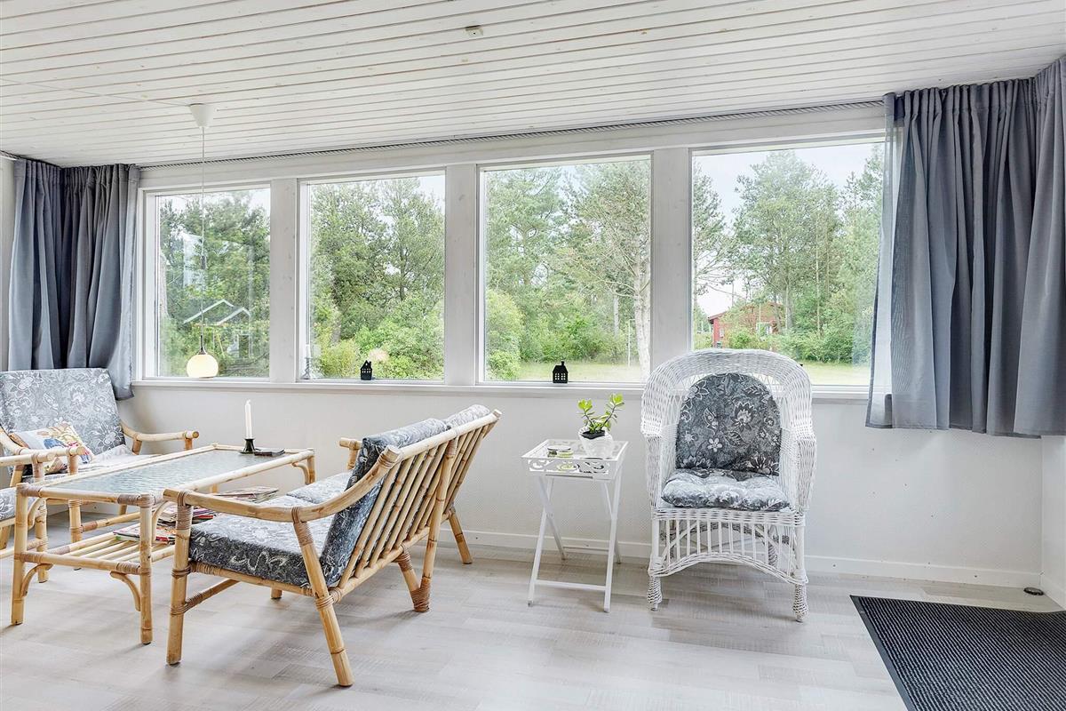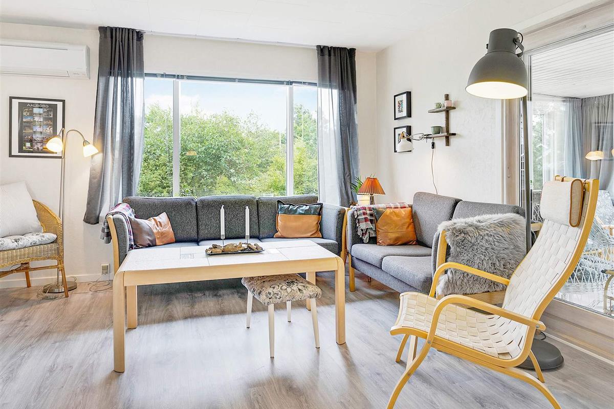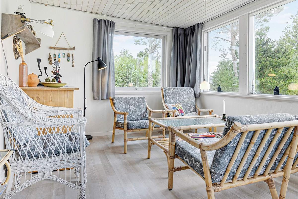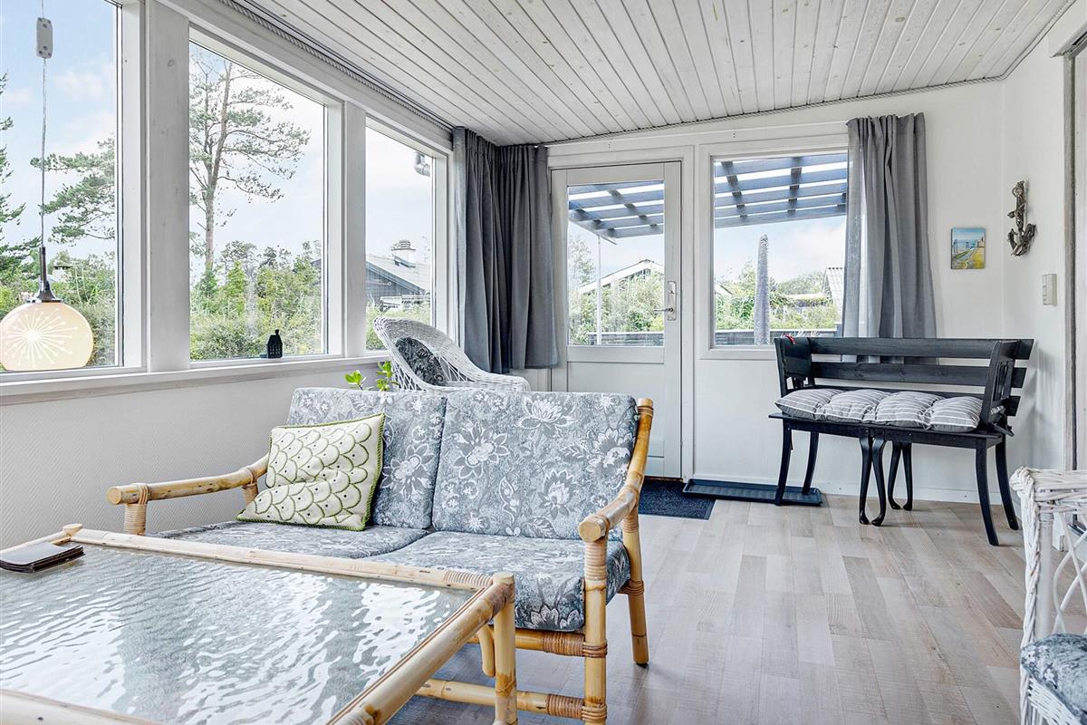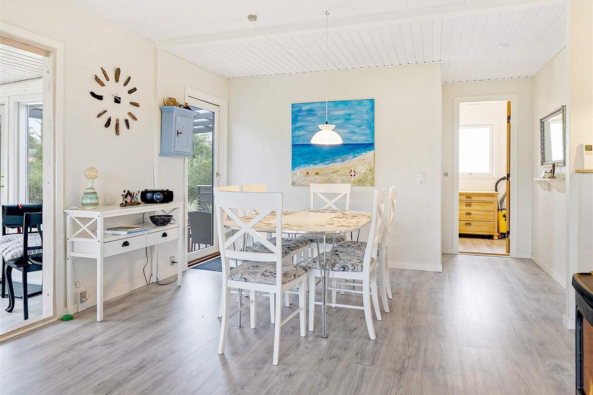 Das Ferienhaus ist gut gepflegt und wohnlich eingerichtet. Die großen Fenster sorgen für viel Tageslicht, der Ofen bei Bedarf für wohlige Wärme. Im Haus drei Schlafzimmer mit jeweils einem Doppelbett sowie ein offener Küchen-/Wohnbereich mit Zugang zu einer teilweise überdachten Terrassenfläche, auf der Sie die Sommertage und -abende genießen können.
