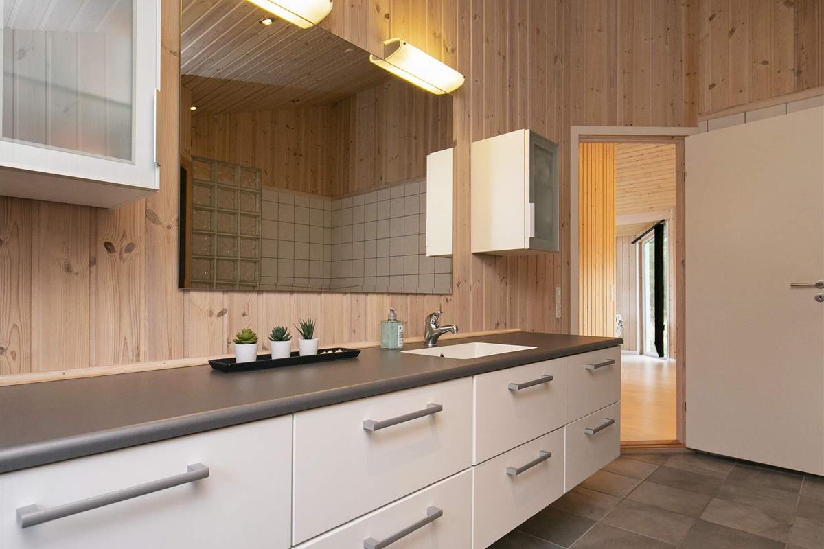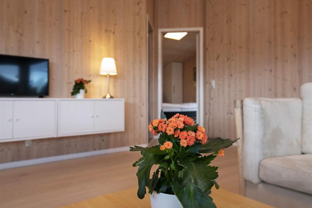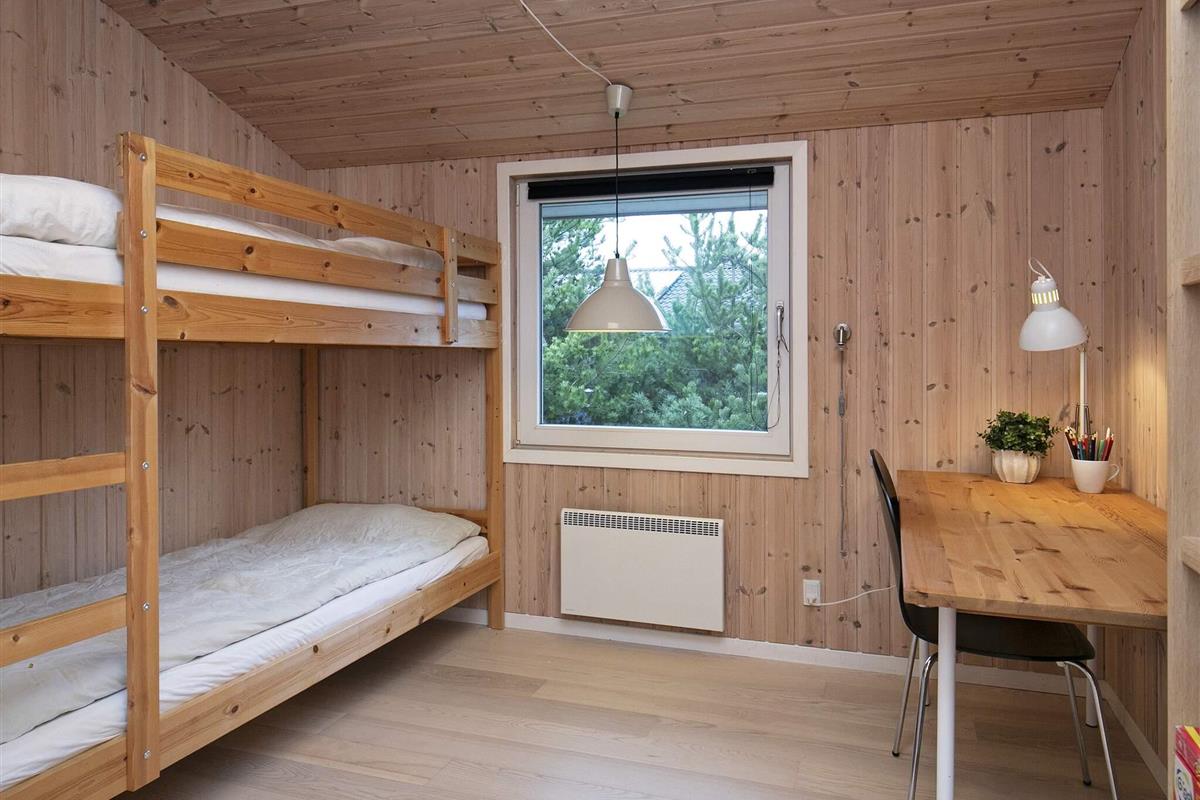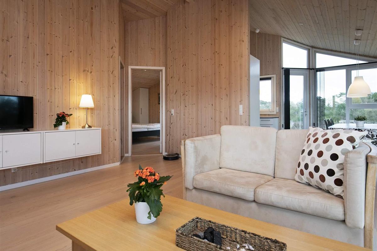 Das Ferienhaus hat einen gut ausgestatteten Küchen-/Wohnbereich mit großen Fenstern und offener Zimmerdecke bis zum First und somit hellem, luftigem Ambiente. Hier gibt es viel Platz für das Familienleben und gemeinsame Aktivitäten. Eine energieeffiziente Wärmepumpe sorgt zu jeder Jahreszeit für ein angenehmes Innenklima. Außerdem gibt es zwei große, helle Schlafzimmer, mit guten Schlafplätzen und Stauraum, sowie einen offenen Hems oben unter der Dachschräge, mit Matratze und solider Leitertreppe als Zugang. Waschmaschine und Trockner findet man unten im offenen Eingangsbereich. Außerdem großes Badezimmer im Haus, mit Dusche und Fußbodenheizung sowie Whirlpool und Sauna.