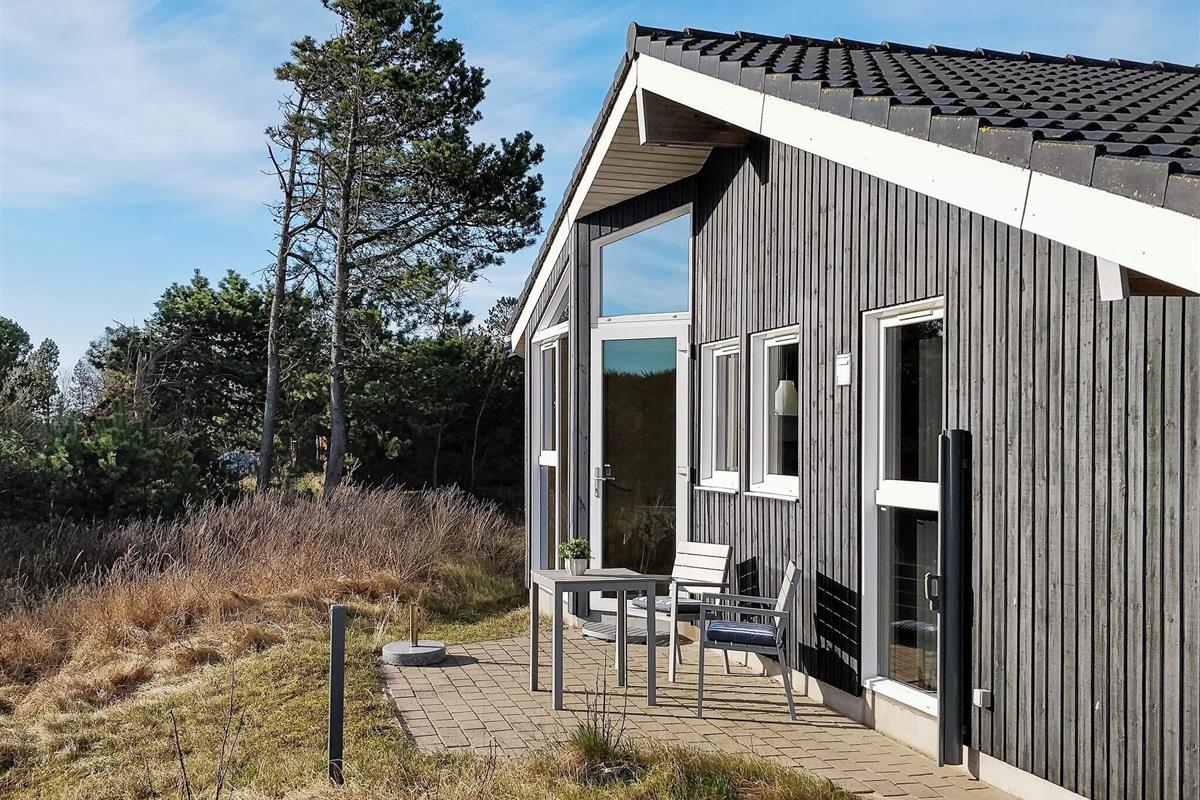 Modernes Ferienhaus mit Whirlpool und Sauna im Bad für Wellness und Erholung. Sie wohnen hier in besonders attraktiver Lage, gleich vorne in der ersten Dünenreihe, auf einem herrlichen Naturgrundstück nur etwa 25 m vom kinderfreundlichen Strandufer bei Lyngså. Unweit liegt auch die kleine Hafenstadt Sæby.