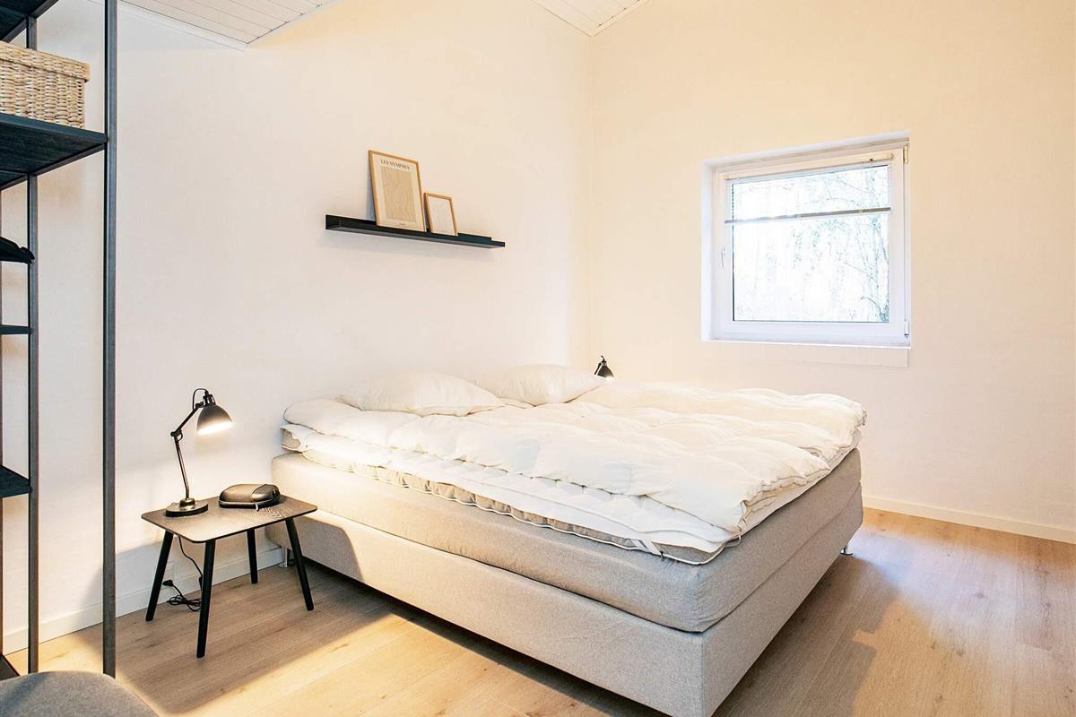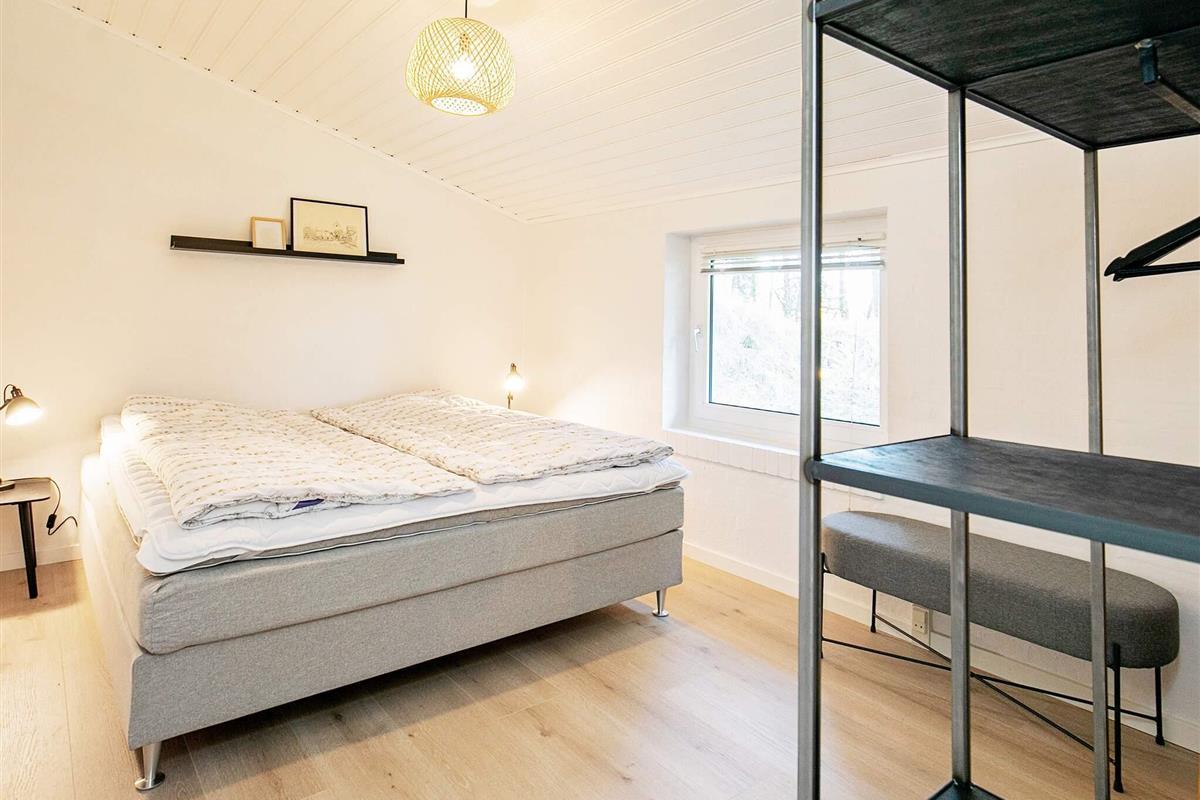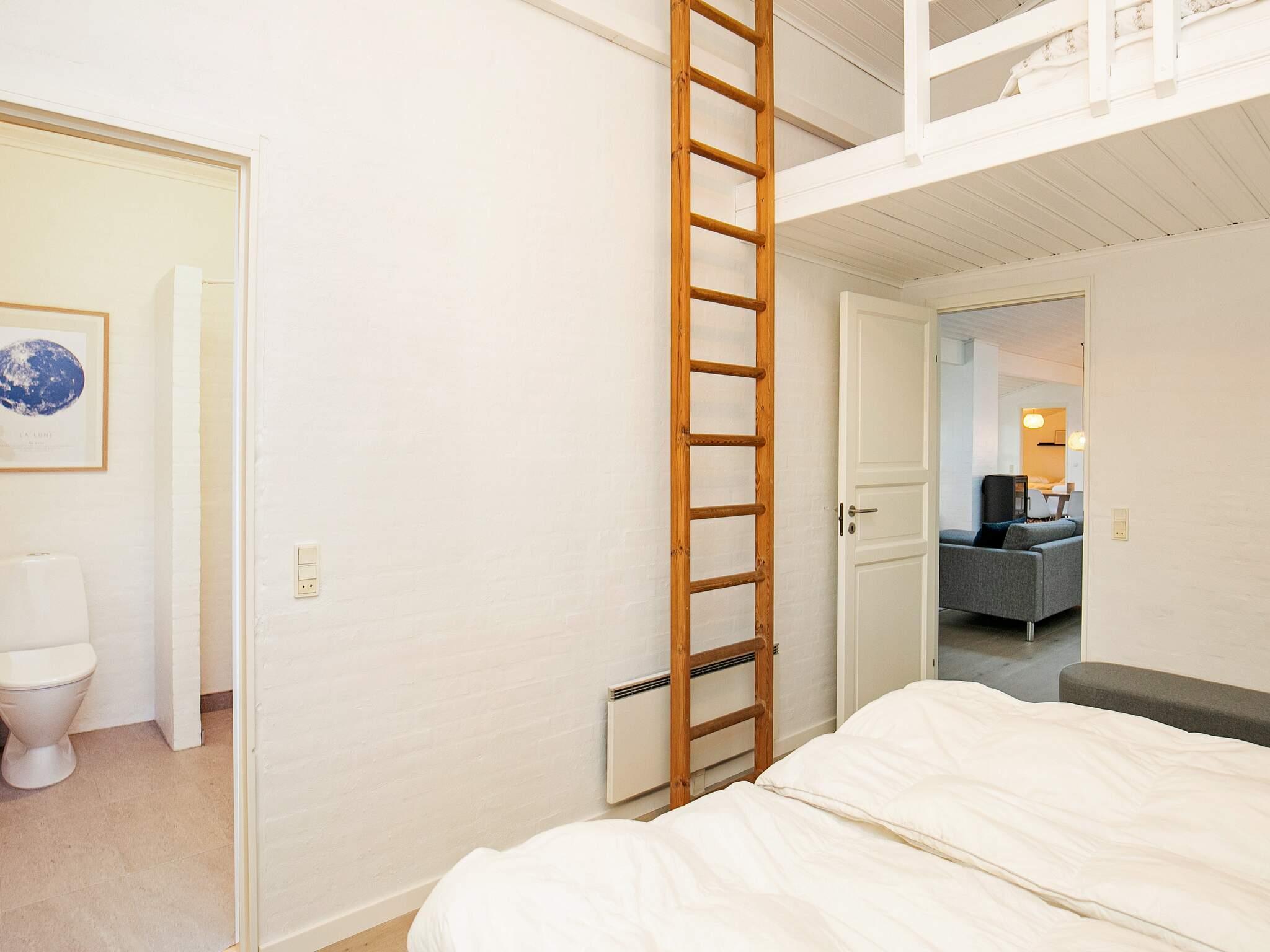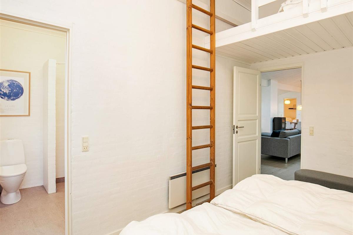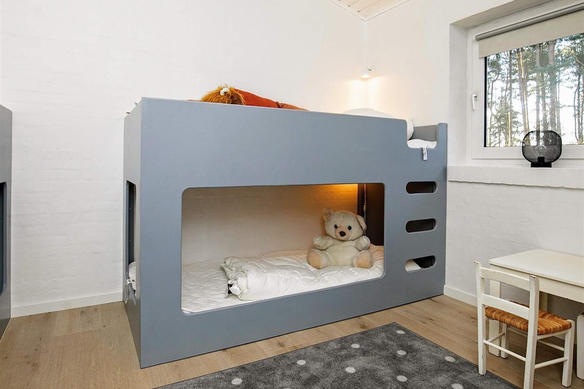 Vier der Schlafzimmer sind mit jeweils einem Doppelbett, das fünfte mit zwei Etagenbetten (je 90x200 cm) mit insgesamt vier Schlafplätzen eingerichtet. Zudem gibt es oben unter der Dachschräge einen offenen Hems mit zwei Liegen.