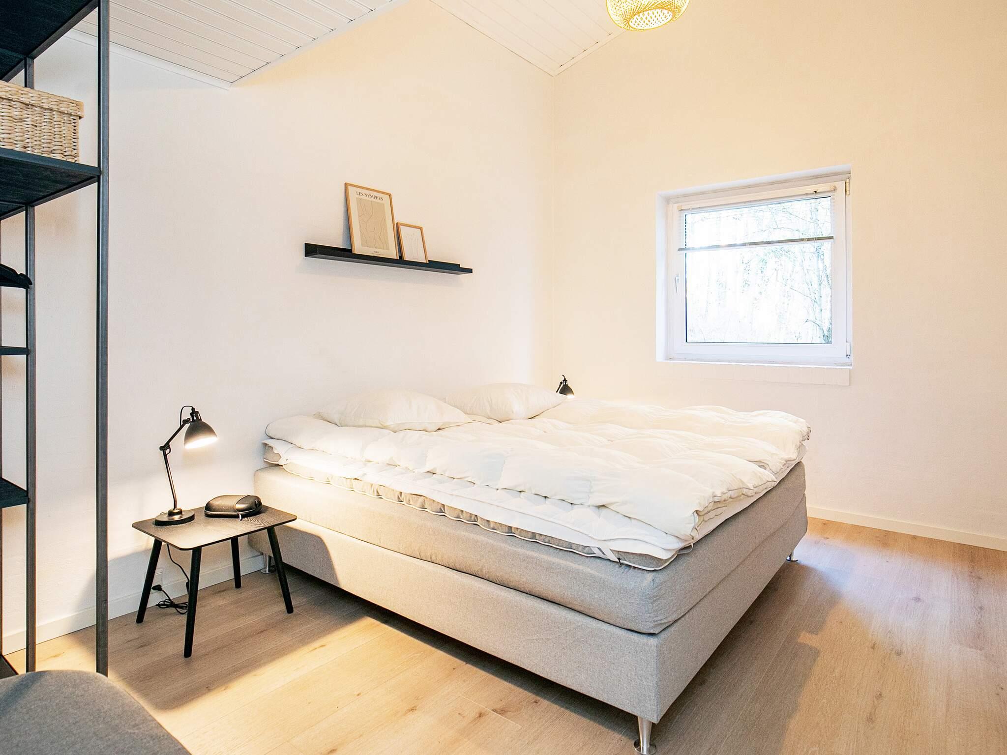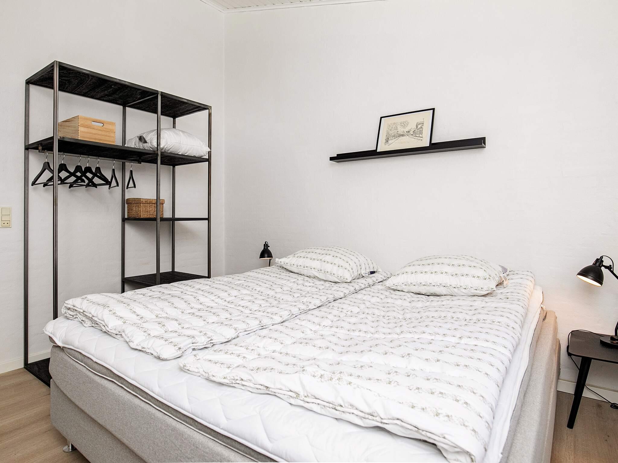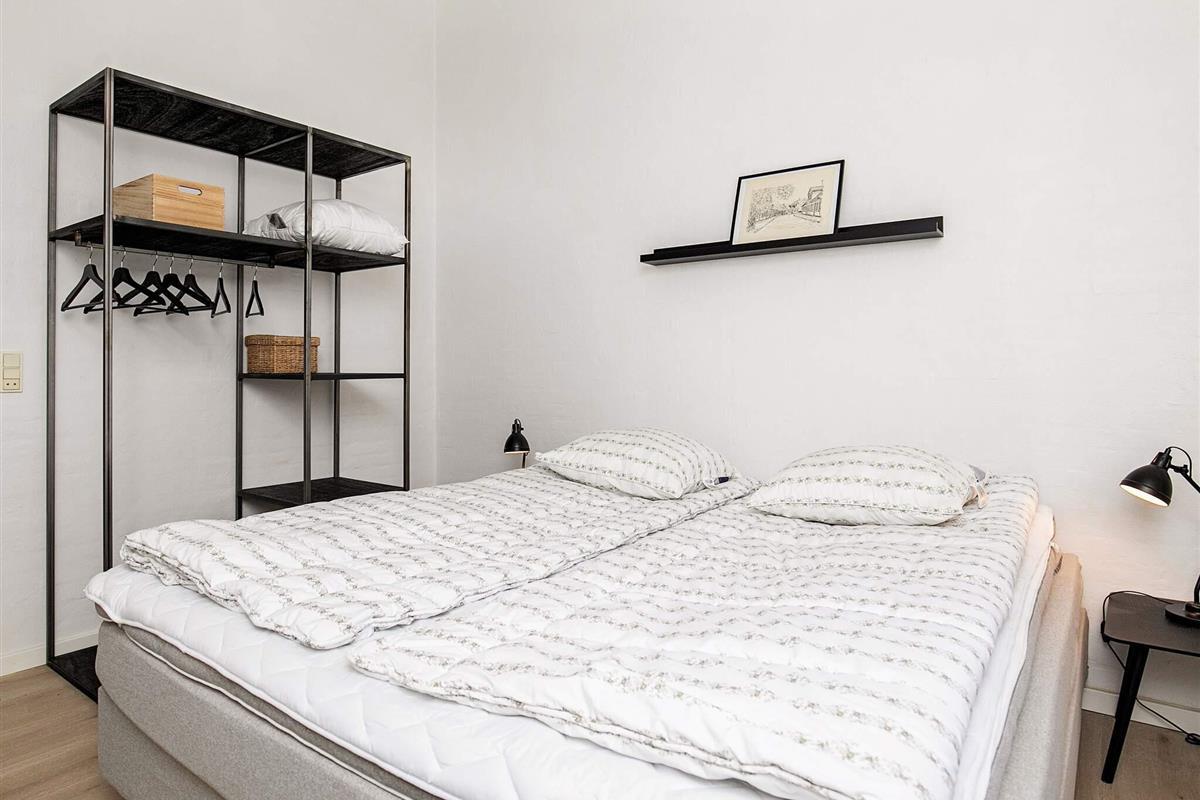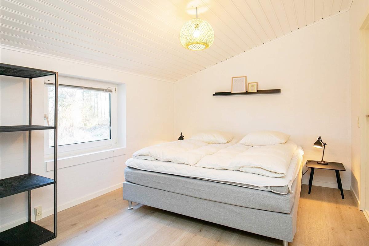 Vier der Schlafzimmer sind mit jeweils einem Doppelbett, das fünfte mit zwei Etagenbetten (je 90x200 cm) mit insgesamt vier Schlafplätzen eingerichtet. Zudem gibt es oben unter der Dachschräge einen offenen Hems mit zwei Liegen.
