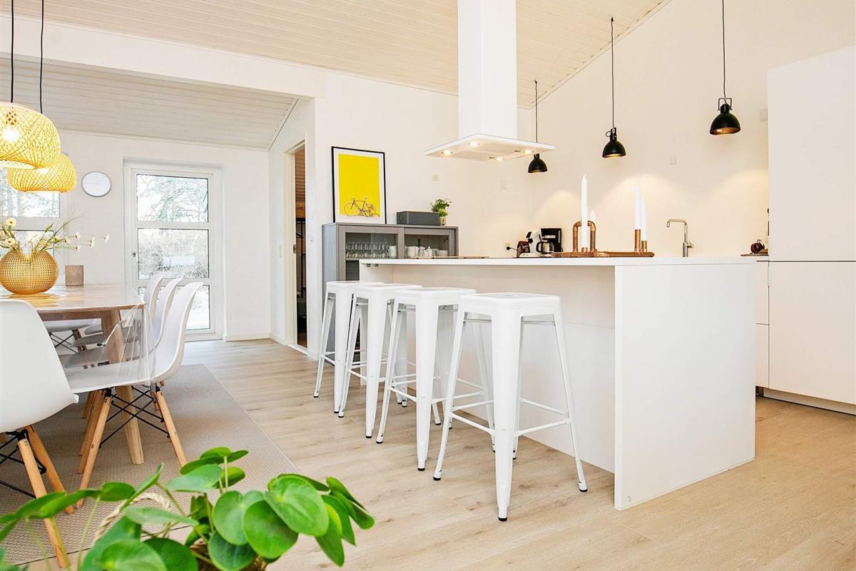 Das umfassend ausgestattete Ferienhaus verfügt auch über einen schönen, offenen Küchen-/Wohnbereich für das Familienleben und gemeinschaftliche Aktivitäten. Machen Sie es sich hier an kühleren Abenden vor dem Feuer im Holzofen gemütlich!