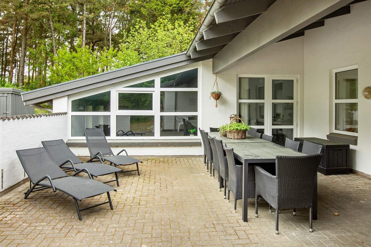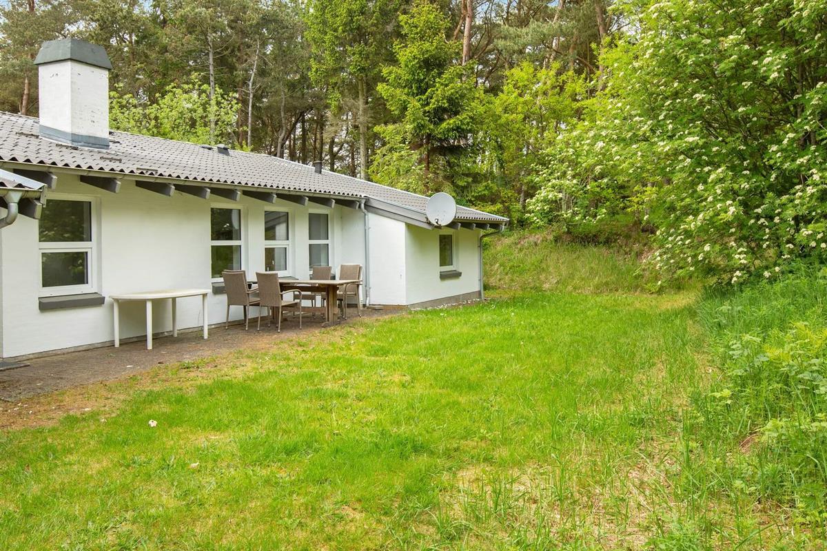 Das zugehörige Naturgrundstück ist ganze 5.000 m2 groß und teils mit Bäumen bewachsen, die Wind- und Sichtschutz bieten. Sie können sich so ungestört im Freien aufhalten. Vor dem Ferienhaus liegt auch eine große, teilweise überdachte Terrassenfläche.