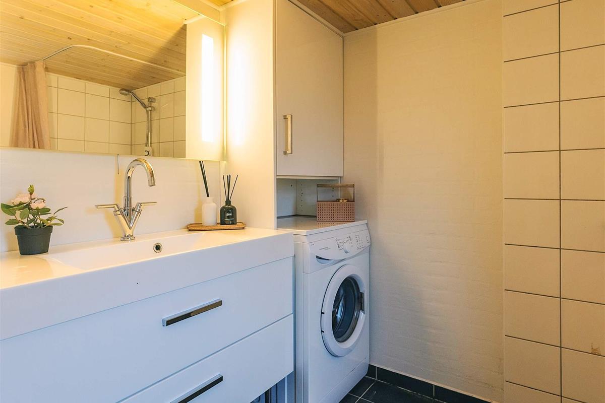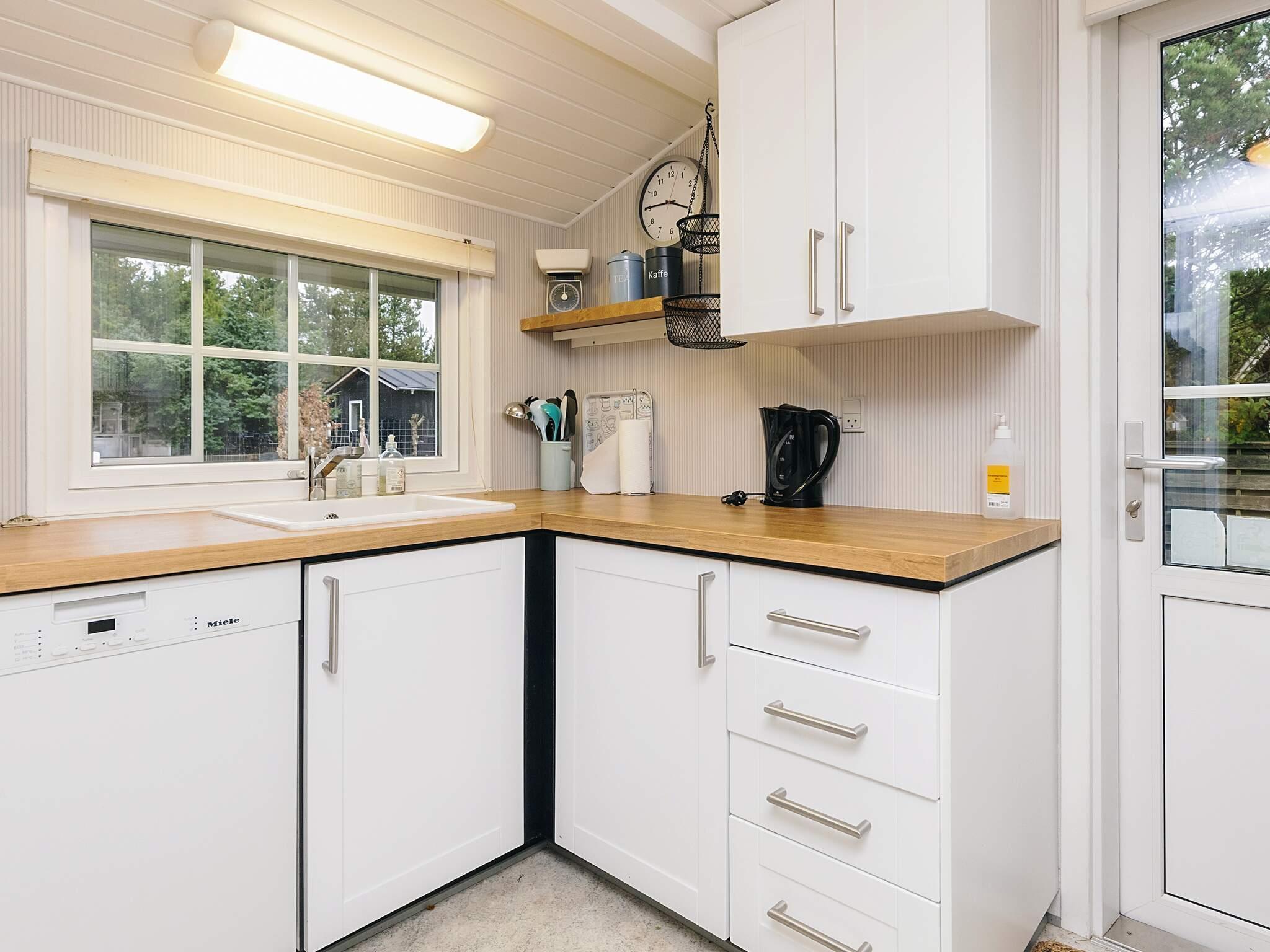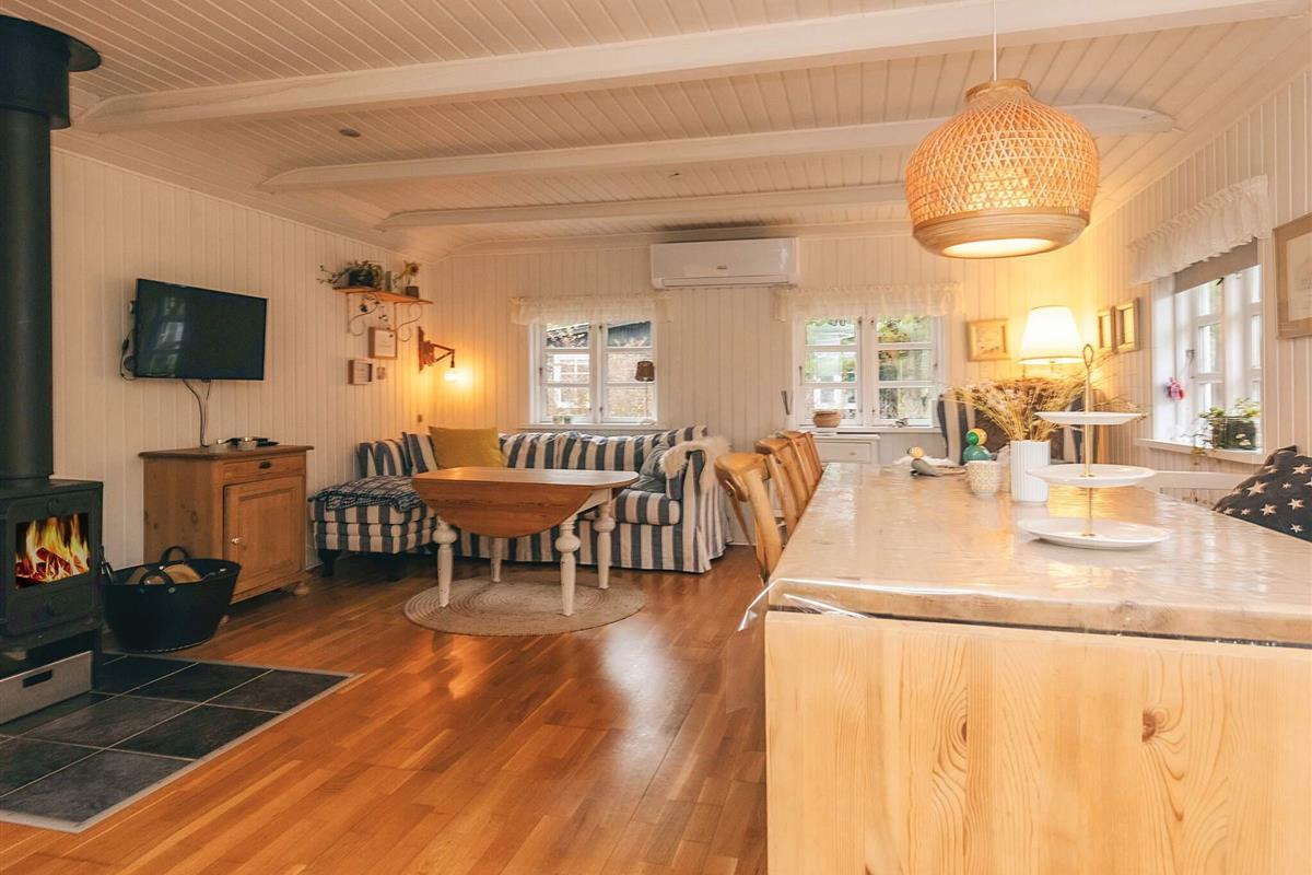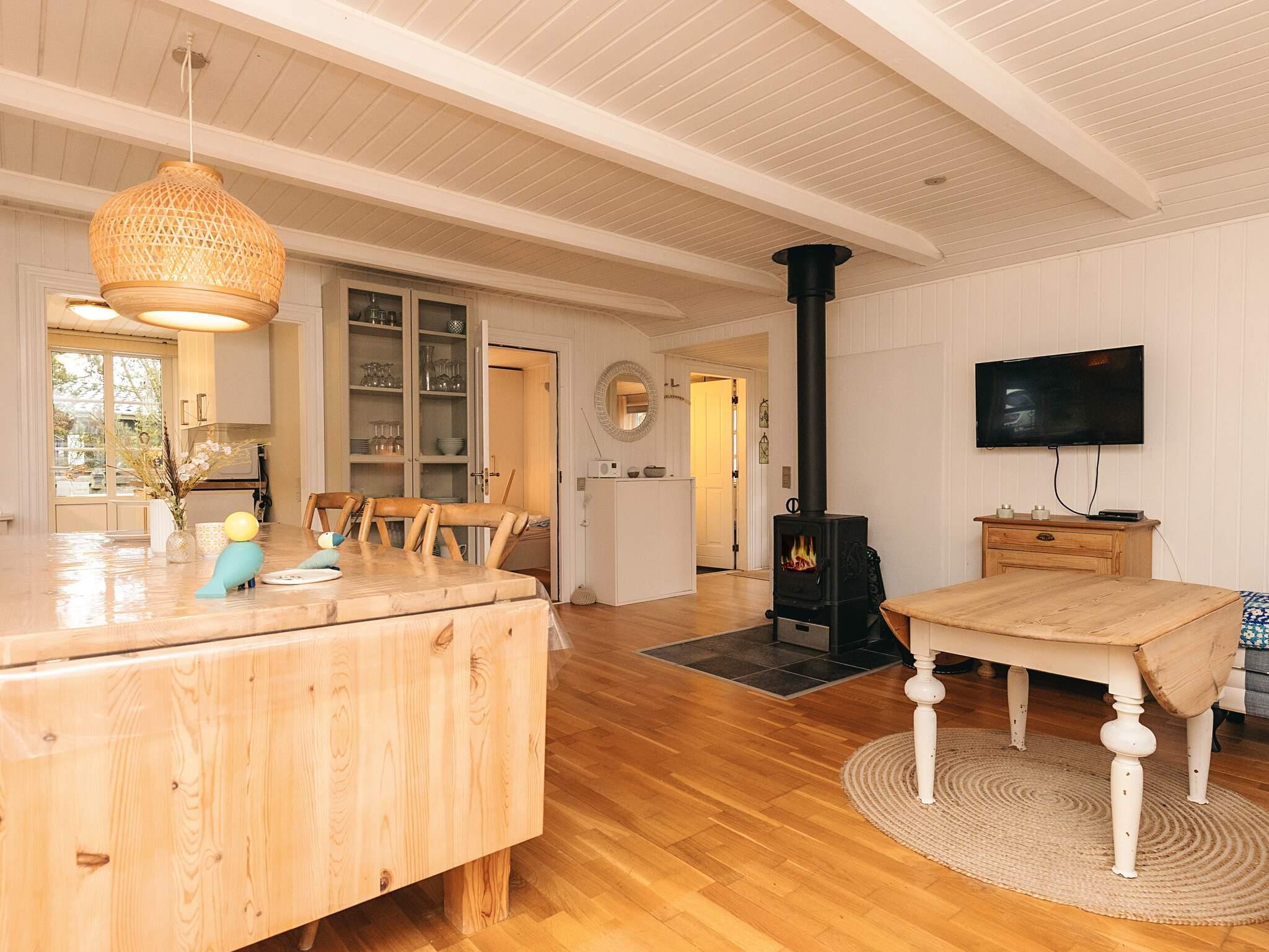 Das Ferienhaus ist gut eingerichtet und hat einen offen kombinierten und gut ausgestatteten Küchen-/Essbereich sowie ein Wohnzimmer mit viel Platz für gemeinsame Aktivitäten. Ob Sie im Ecksofa fernsehen, am Esstisch zusammen ein Spiel spielen oder in der Küche kochen, die Familie hat ausreichend Platz. Zudem Badezimmer mit Dusche und Fußbodenheizung sowie zwei gute Schlafzimmer im Haus, davon eines für die Eltern und eines mit Etagenbett für die Kinder. Freies WLAN im Haus mit Kapazität zum Streamen über Chromecast.