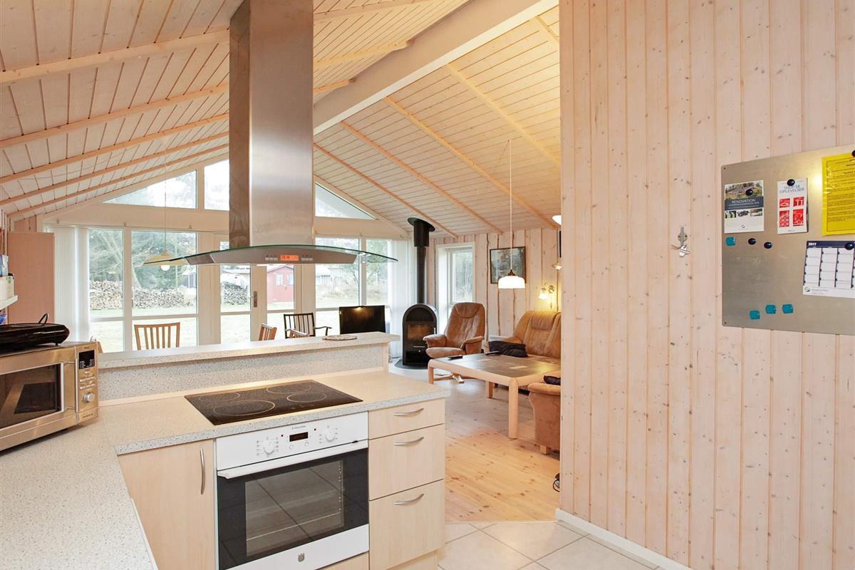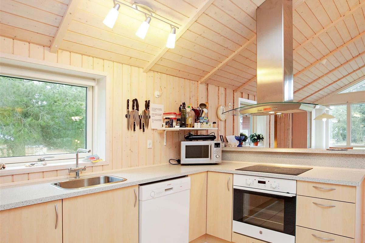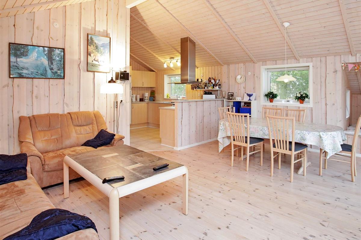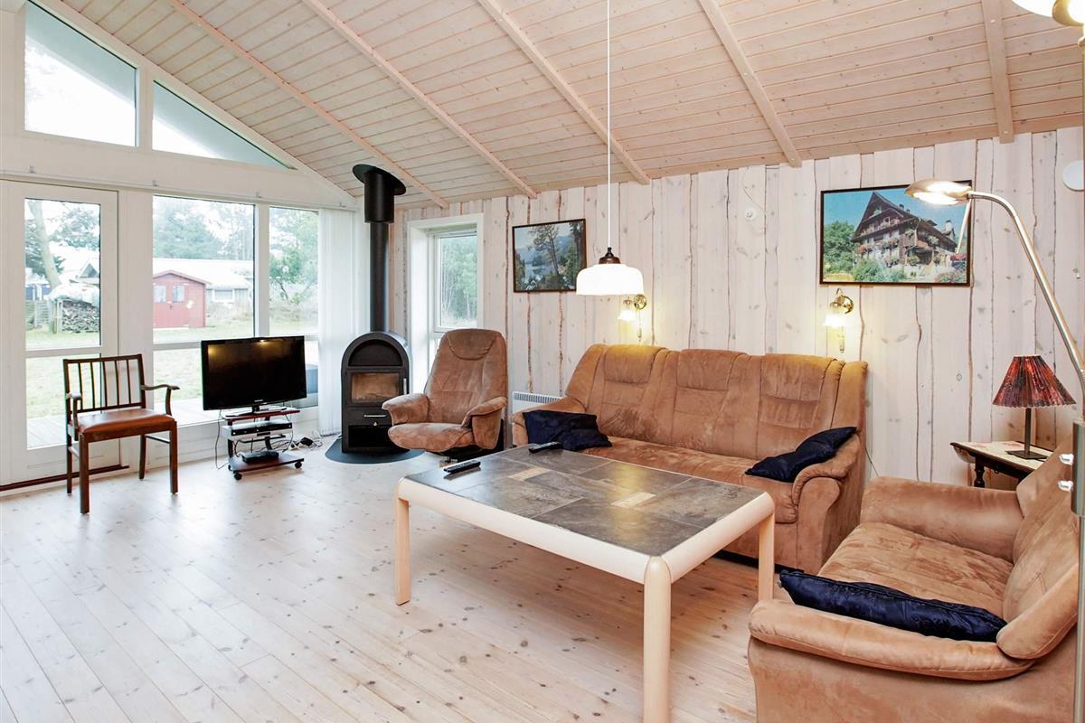 Helles und modernes Ferienhaus in einer Sackgasse, ca. 300 m vom Badestrand und dem Kaufmann entfernt gelegen. Die offene Küche ist gut ausgestattet und mit dem Wohnbereich mit Holzofen kombiniert. Hohe Dachschrägen und ein guter Lichteinfall geben dem Wohnzimmer das besondere Etwas. Die Südterrasse lädt zum Sonnenbaden und gemütlichen Abenden im Freien ein. Die ruhige Umgebung ist durch eine Mischung von Strand, Meer, Wald und Wiesen gekennzeichnet.