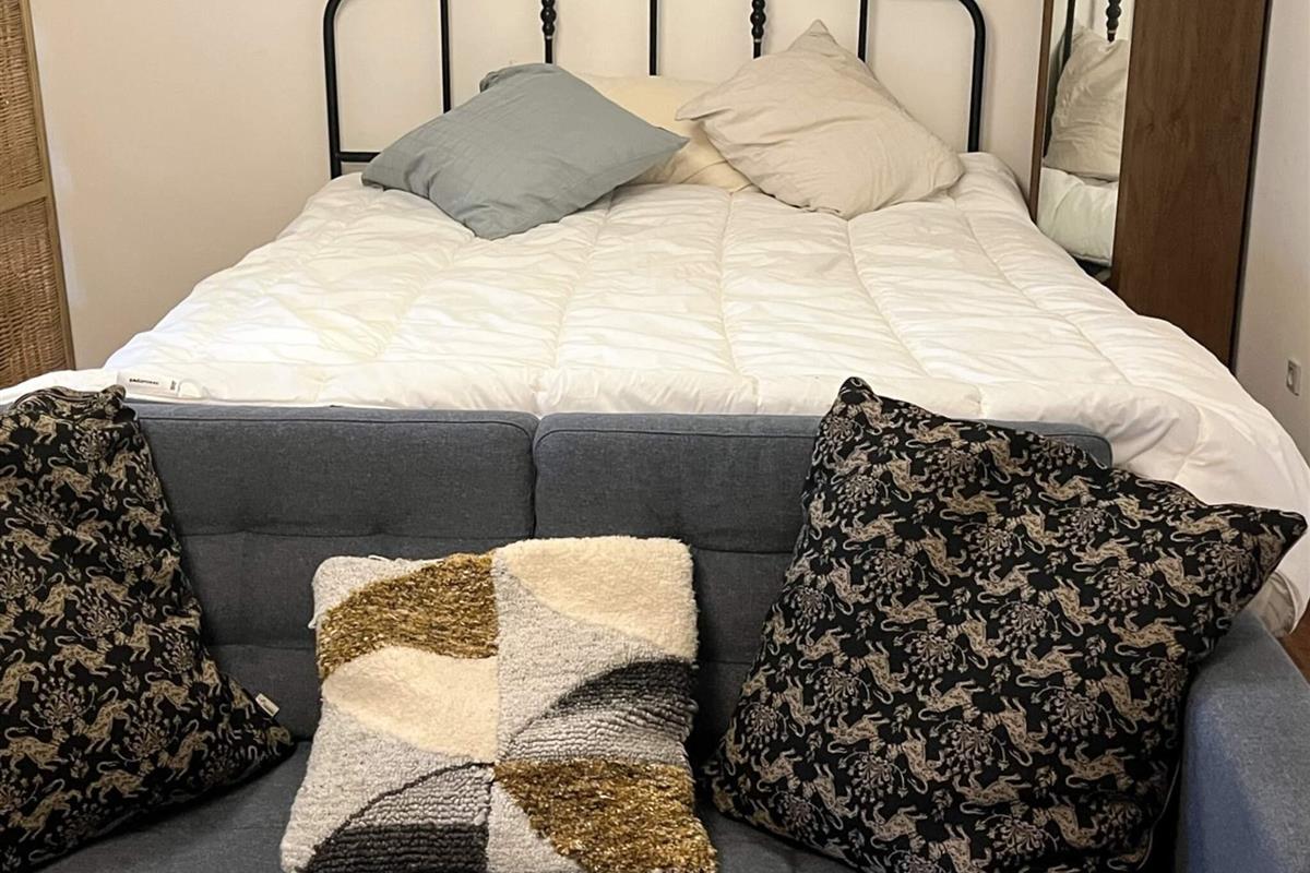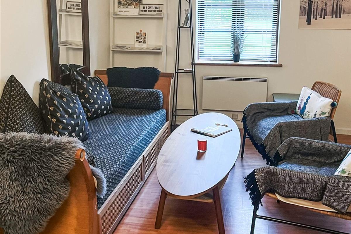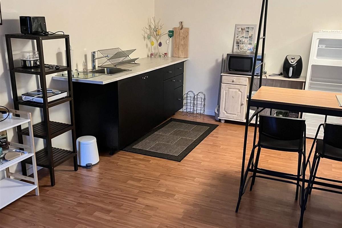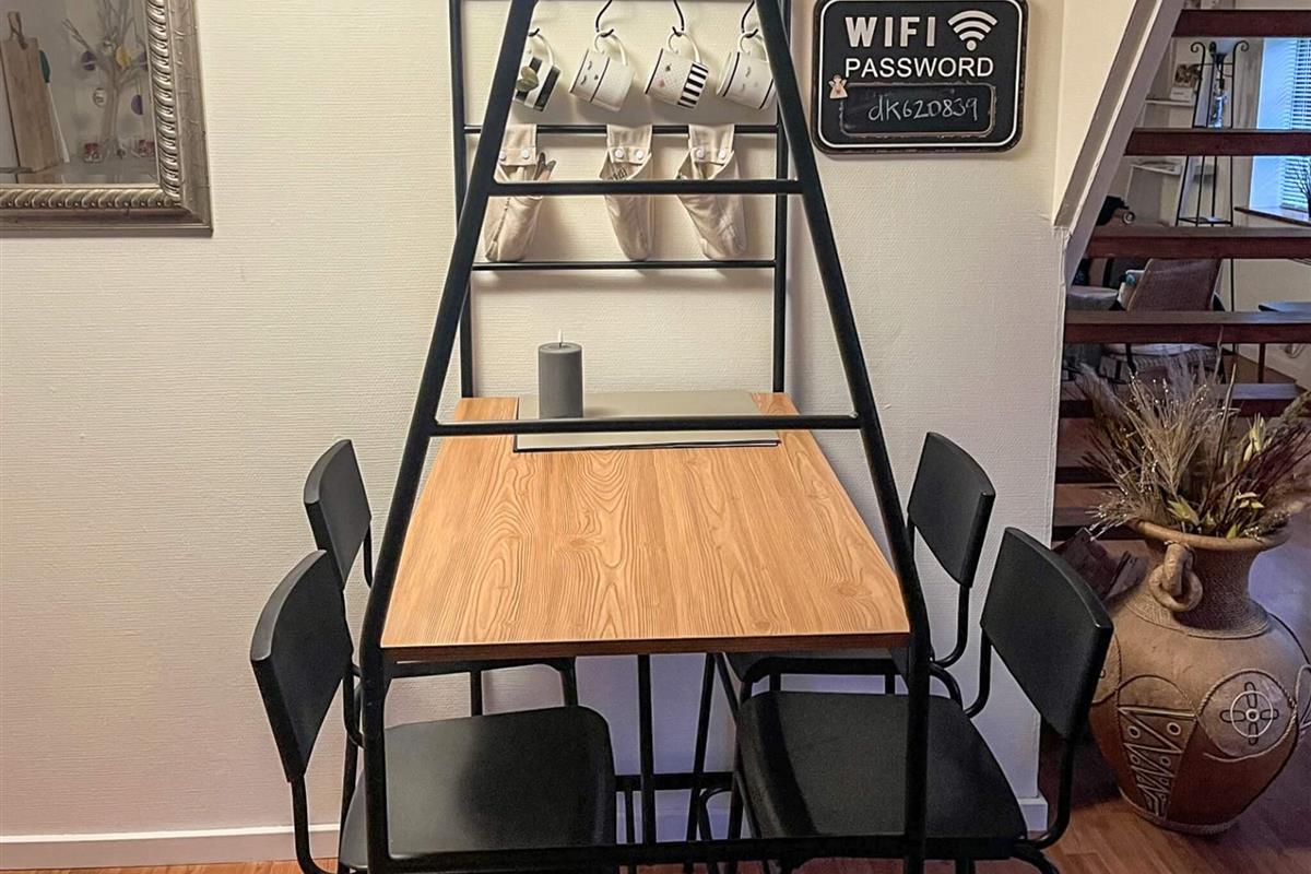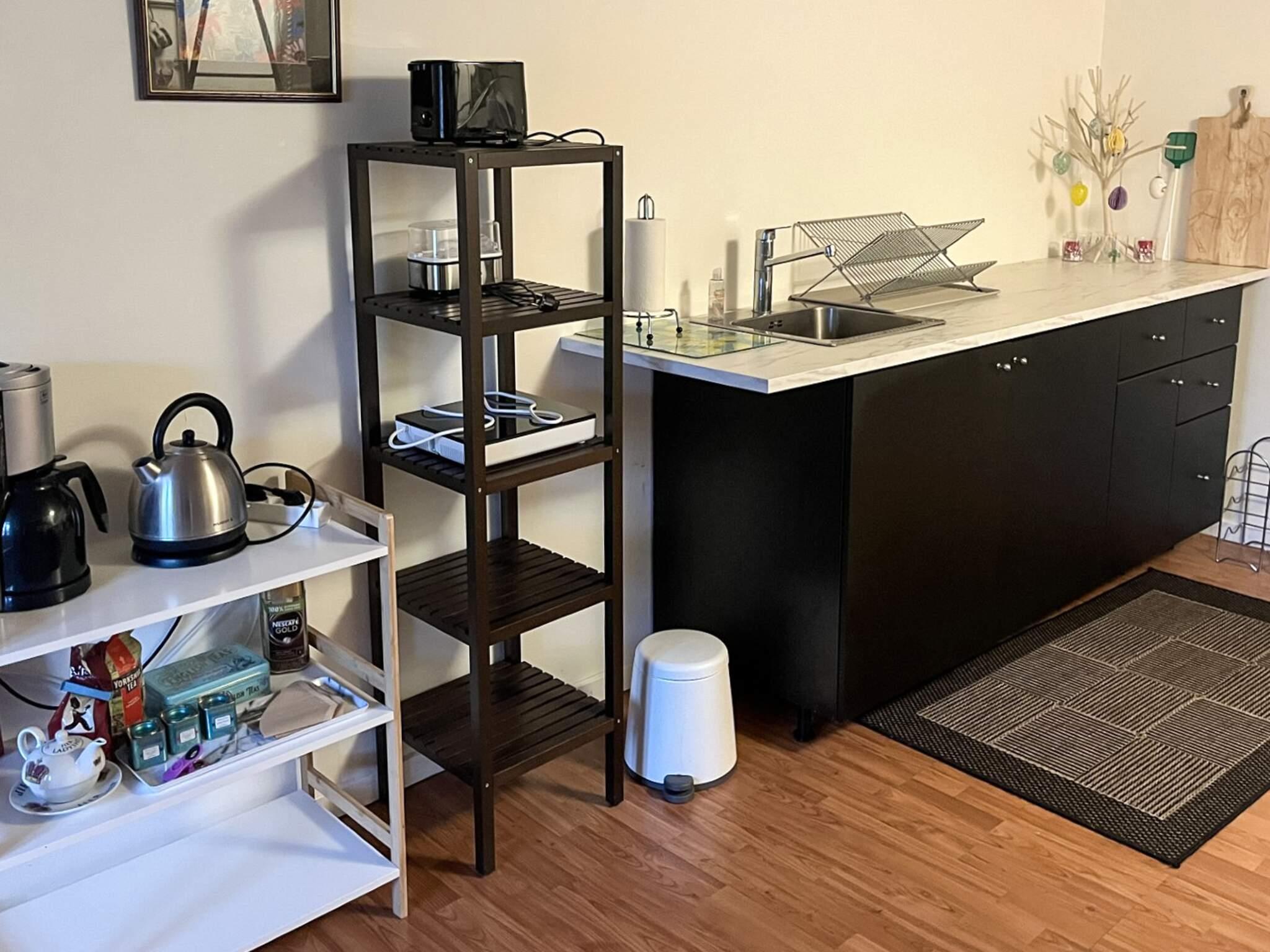 Der Anbau ist hell und geräumig und besteht aus einer Eingangsdiele, einem großen, offenen Raum mit einer größeren Küchenzeile mit u.a. Heißluftfritteuse in einem Bereich und einem Wohnzimmer und einem Doppelbett im anderen. Vom Wohnzimmer führt eine Treppe hinauf zum Dachboden/Hems. Beachten Sie bitte, dass der Dachboden offen ist, was ihn perfekt macht, wenn Sie sich etwas zurückziehen möchten, aber dennoch Teil des offenen Raums darunter sein möchten.