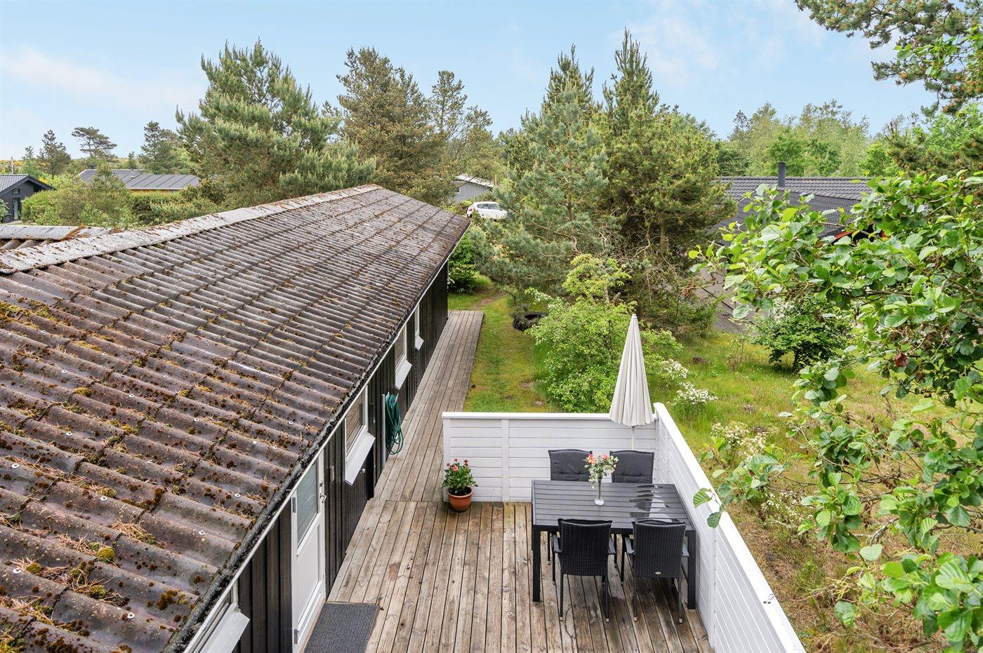 De vakantiewoning is gelegen op een 1000 m² groot grond in bos/park. Afstand tot de zee 125 m. Dichtstbijzijnde winkel 9300 m. Bij de vakantiewoning hoort 57 m² terras. Gereedschapsruimte. Schommel. Zandbak. Parkeerplaats bij het huis.