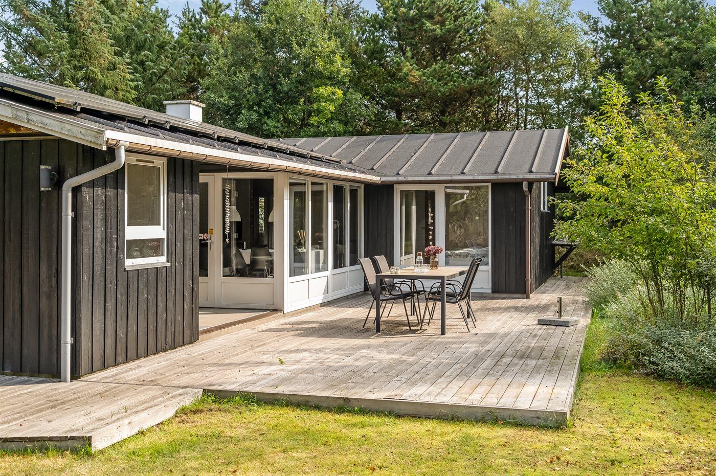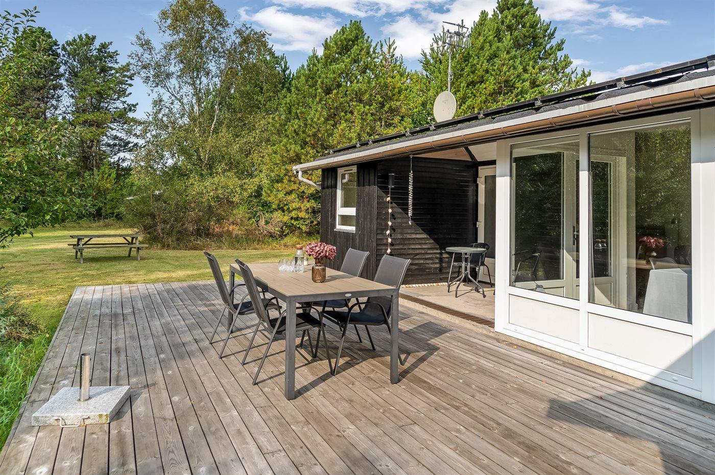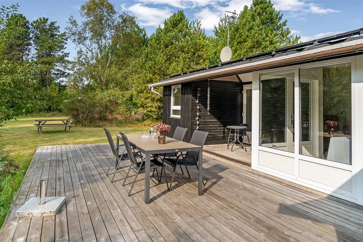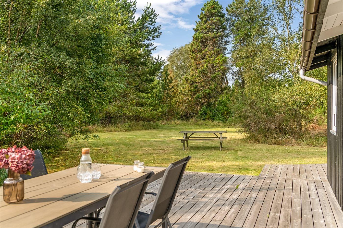 De vakantiewoning is gelegen op een 2500 m² groot natuural grond. Afstand tot de zee 125 m. Dichtstbijzijnde winkel 8500 m. Bij de vakantiewoning hoort 138 m² terras. Daarnaast is er een 17 m² groot overdekt terras. Barbecue. Parkeerplaats bij het huis.