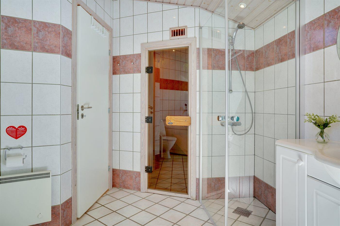 Er is 2 badkamers met douchehok en 2 toiletten. Er is vloerverwarming in 2 van de badkamers. De sauna biedt de gelegenheid tot ontspanning.
