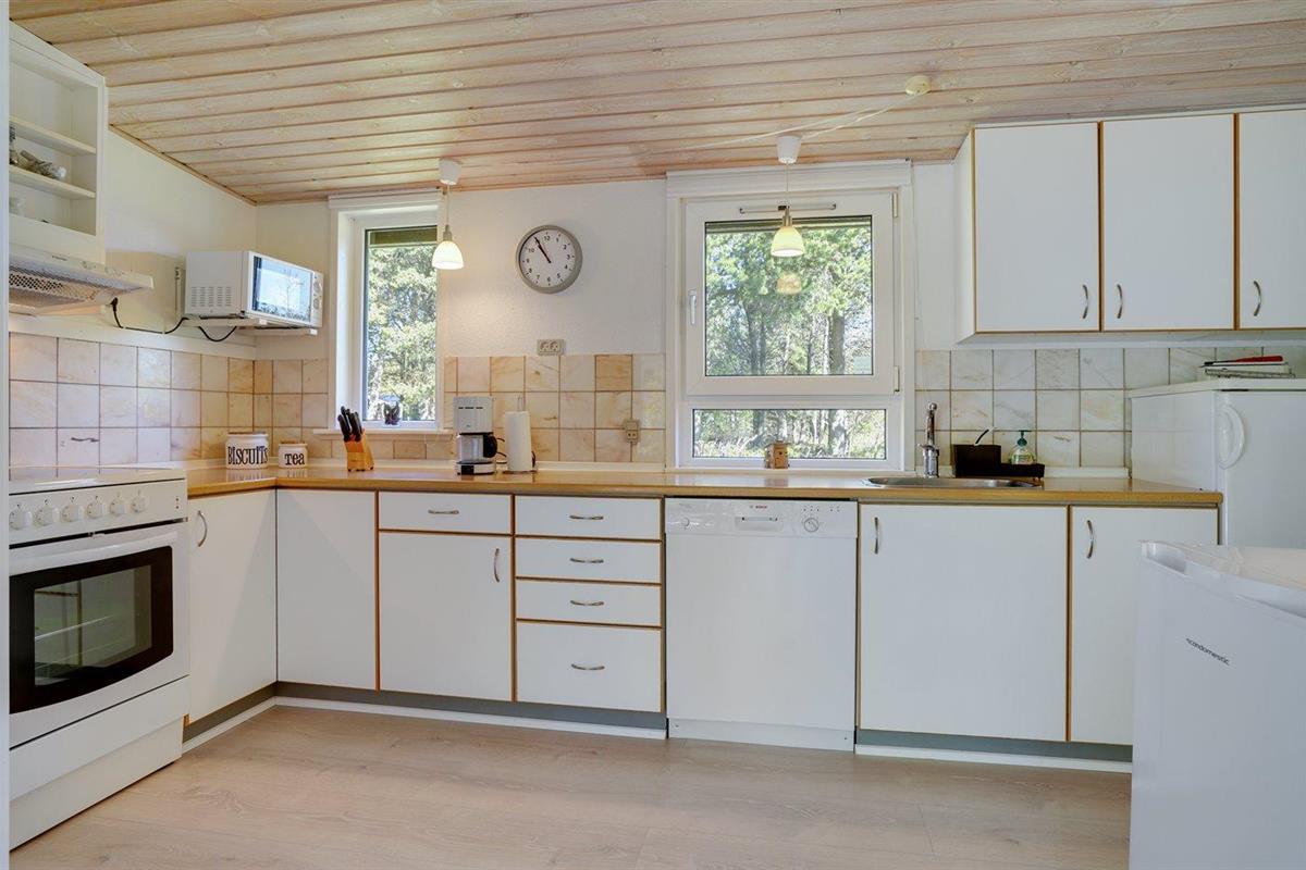 De keuken is uitgerust met koelkast Er zijn 4 keramische kookplaten, heteluchtoven, magnetron en vaatwasser.
