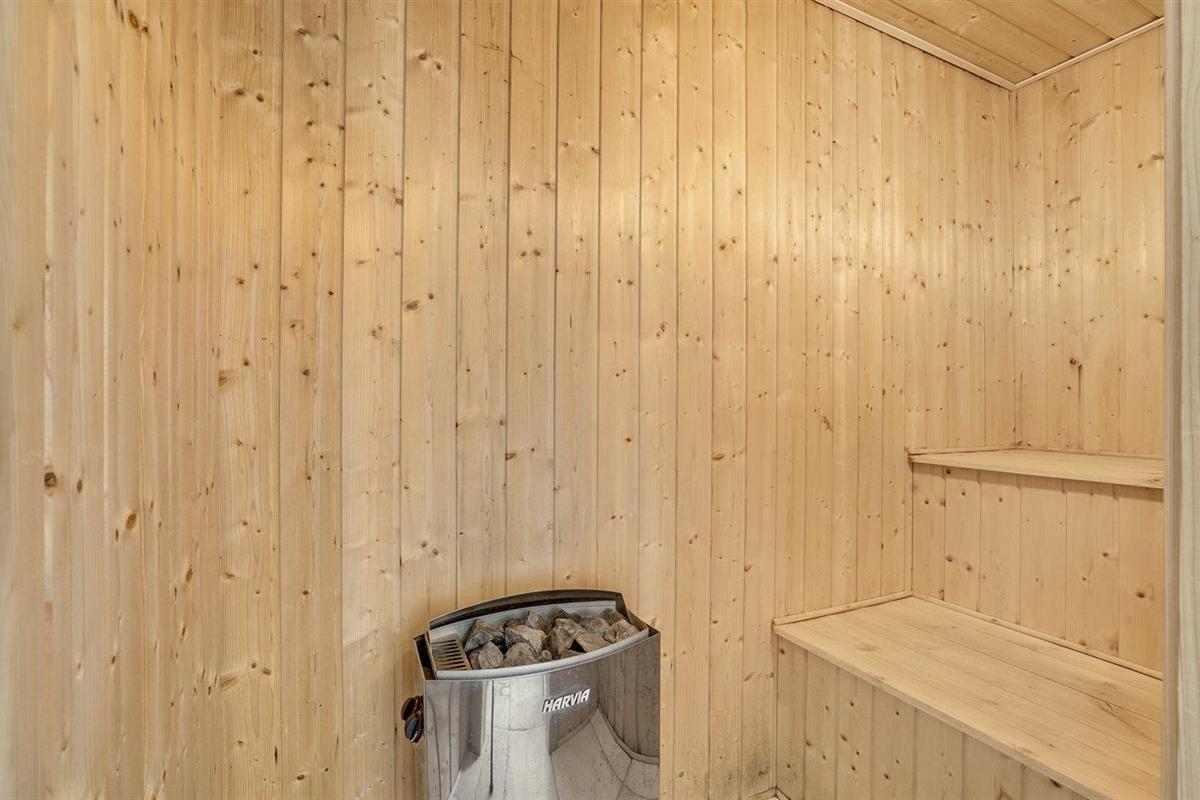 Er is 2 badkamers met douchehok en 2 toiletten. Er is vloerverwarming in 2 van de badkamers. De sauna biedt de gelegenheid tot ontspanning.
