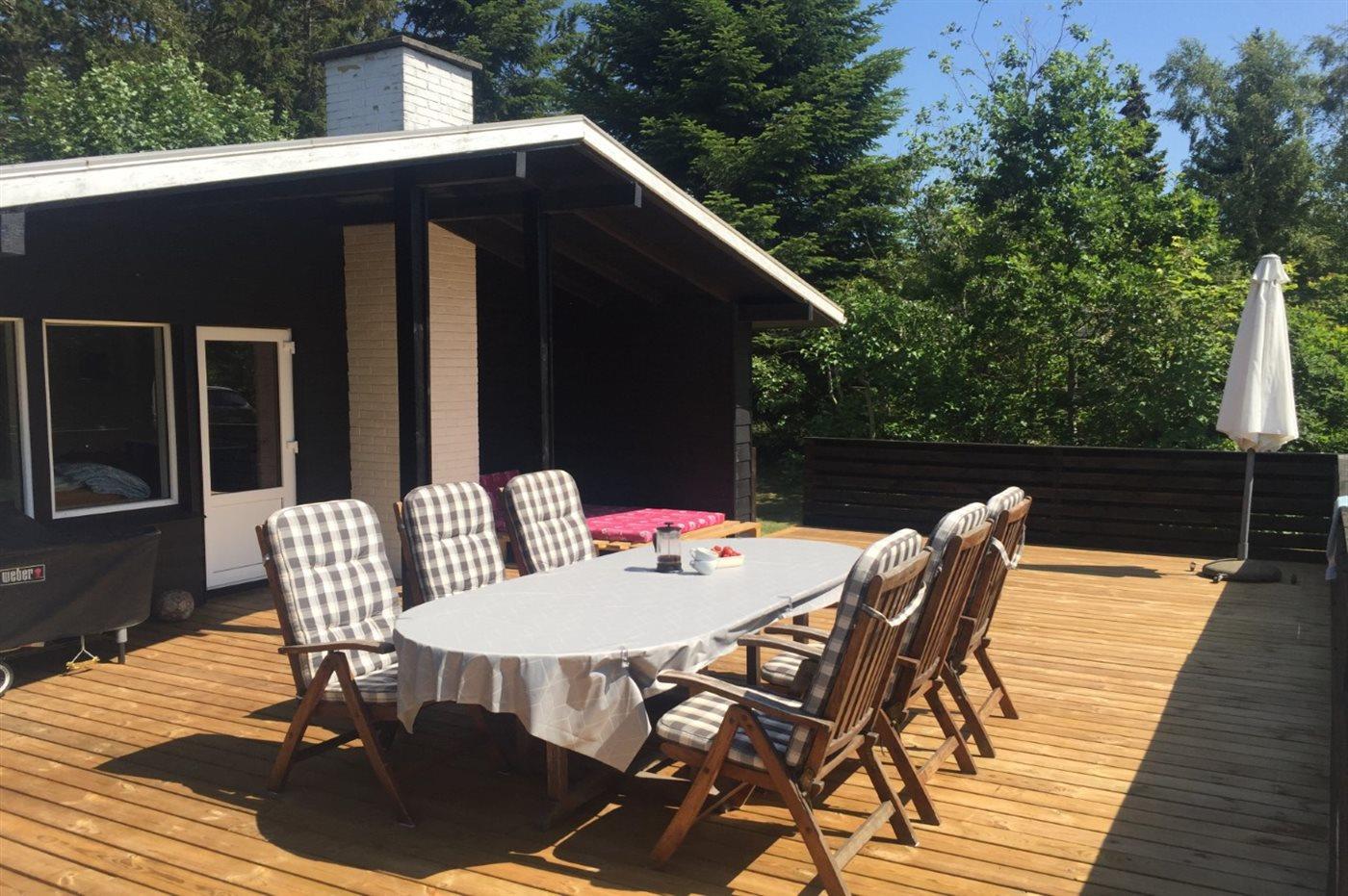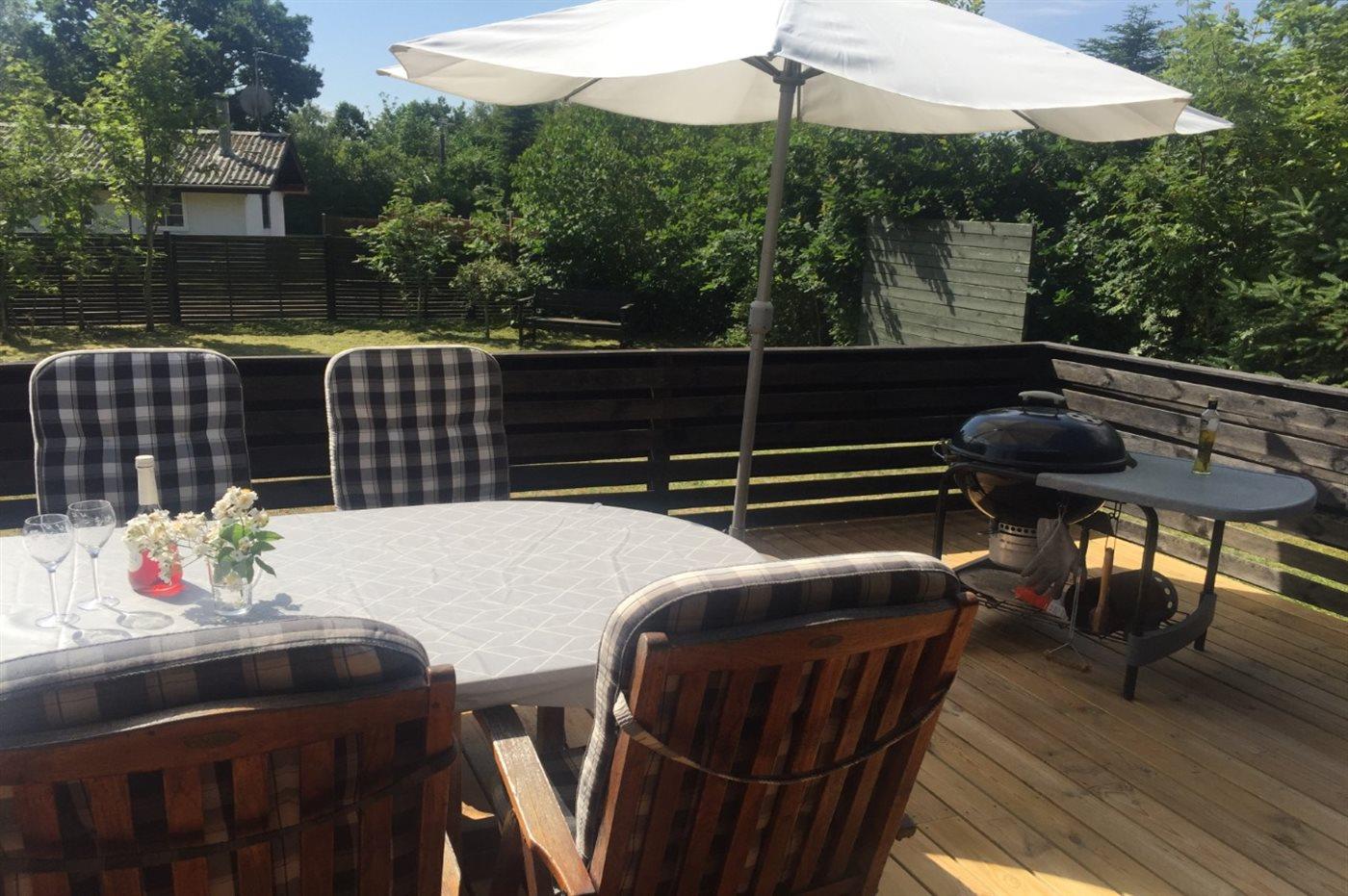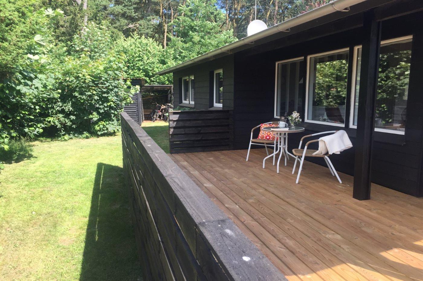 De vakantiewoning is gelegen op een 900 m² groot natuural grond. Afstand tot de zee 350 m. Dichtstbijzijnde winkel 8000 m. Bij de vakantiewoning hoort 60 m² terras. Daarnaast is er een 10 m² groot overdekt terras. Gereedschapsruimte. Schommel. Barbecue. Parkeerplaats bij het huis.