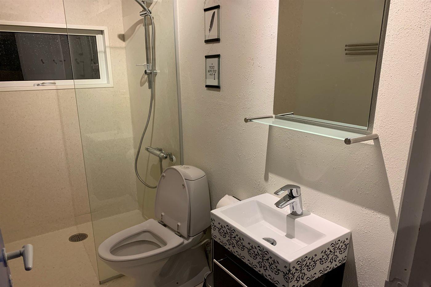 Er is 1 badkamer met douchehok en 1 toilet.