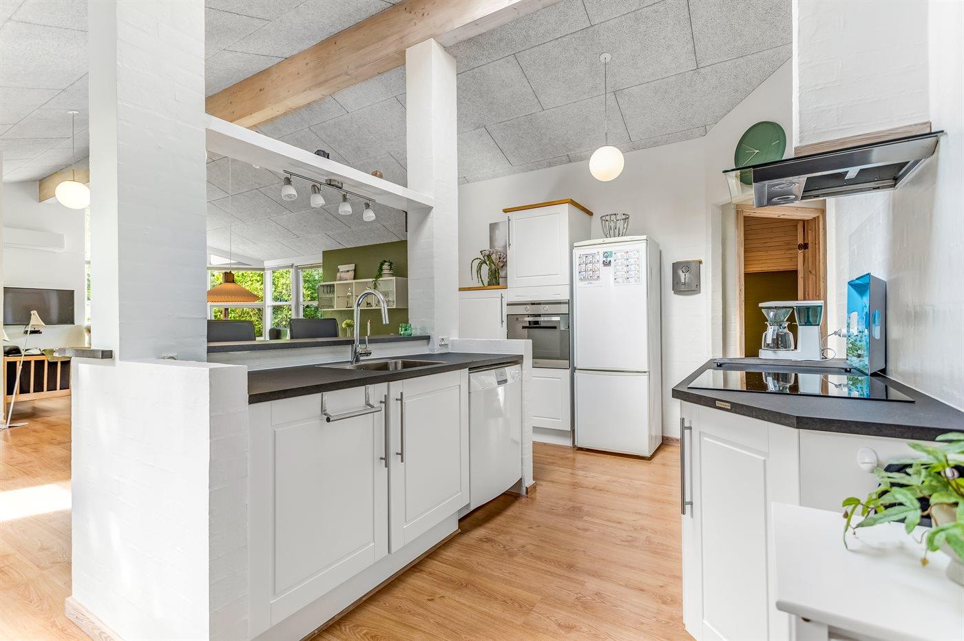 De keuken is uitgerust met koelkast Er zijn 4 keramische kookplaten, heteluchtoven, magnetron en vaatwasser.