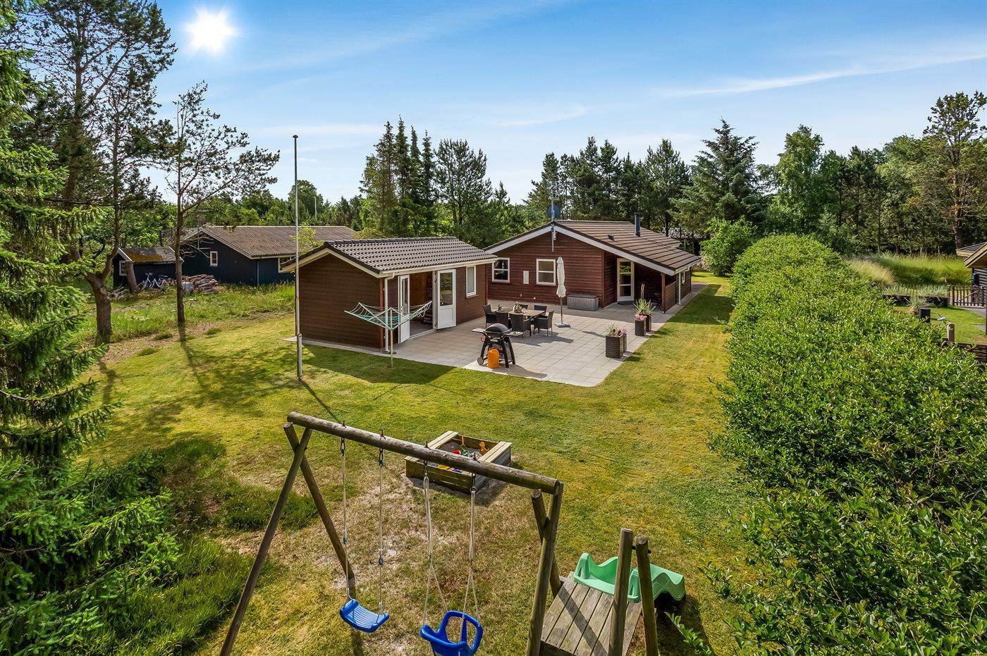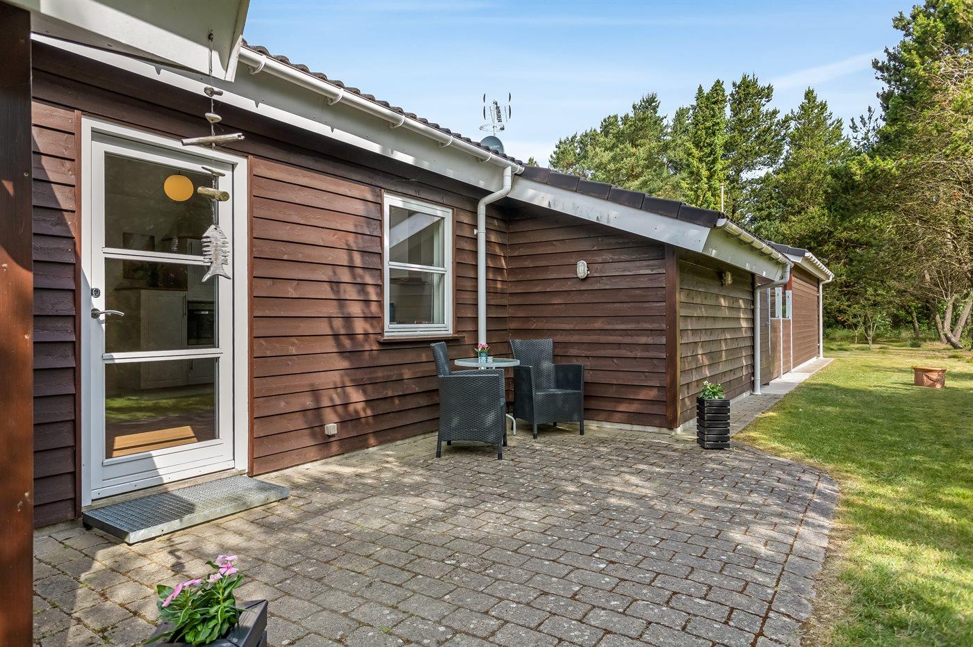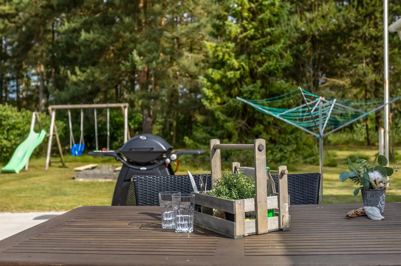 De vakantiewoning is gelegen op een 1000 m² groot natuural grond. Afstand tot de zee 200 m. Dichtstbijzijnde winkel 8000 m. Er is een golfbaan op een afstand van 10000 m. Bij de vakantiewoning hoort 80 m² terras. Daarnaast is er een 8 m² groot overdekt terras. Gereedschapsruimte. Schommel. Zandbak. Gasbarbecue ter beschikking. Parkeerplaats bij het huis.