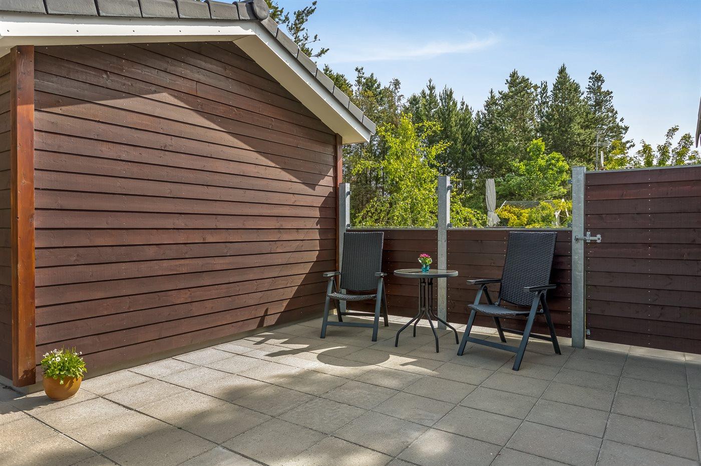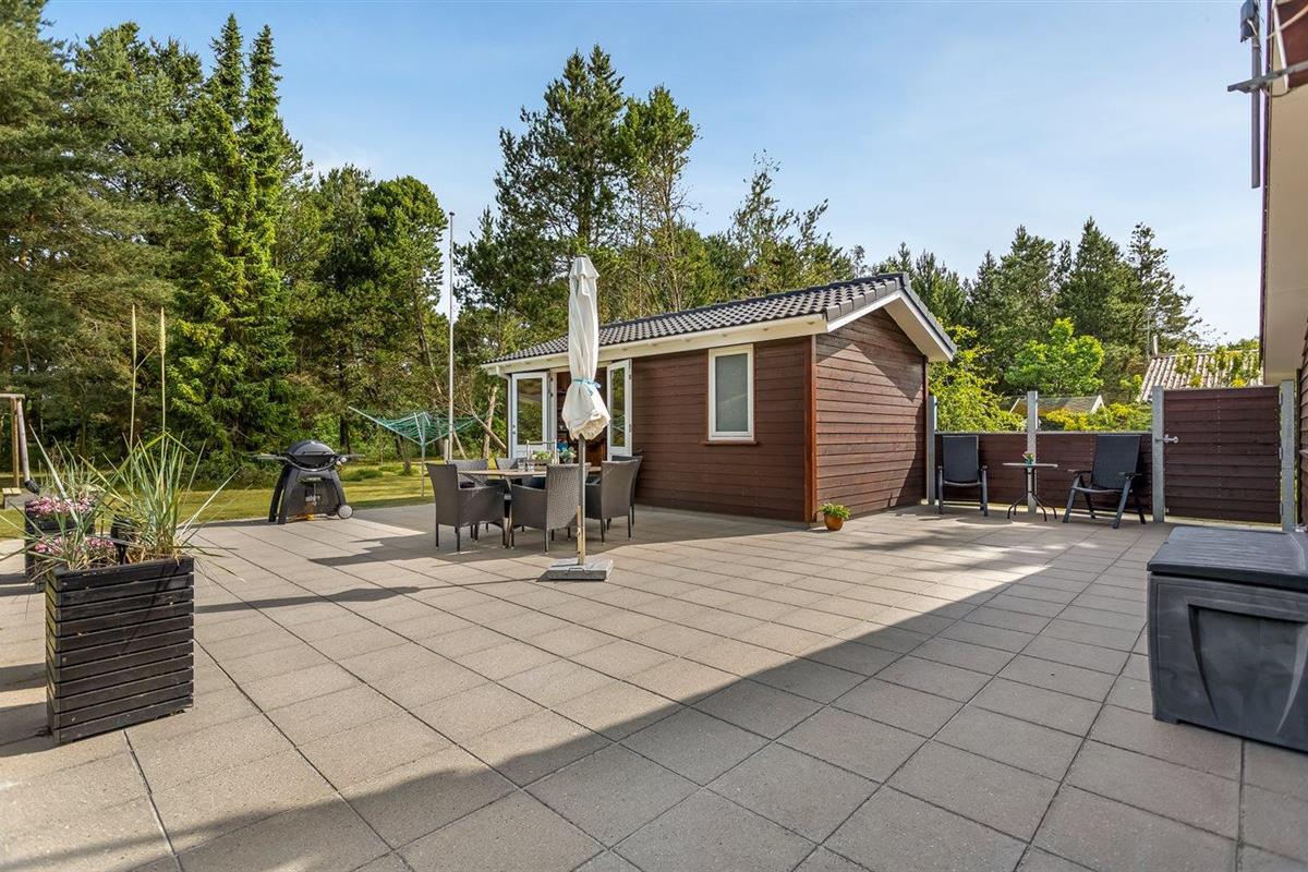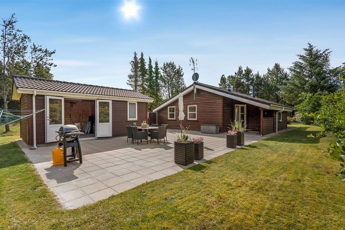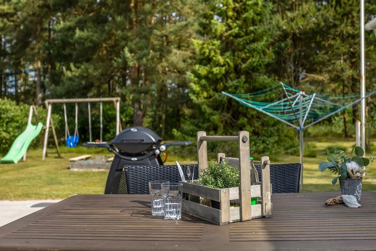 De vakantiewoning is gelegen op een 1000 m² groot natuural grond. Afstand tot de zee 200 m. Dichtstbijzijnde winkel 8000 m. Er is een golfbaan op een afstand van 10000 m. Bij de vakantiewoning hoort 80 m² terras. Daarnaast is er een 8 m² groot overdekt terras. Gereedschapsruimte. Schommel. Zandbak. Gasbarbecue ter beschikking. Parkeerplaats bij het huis.