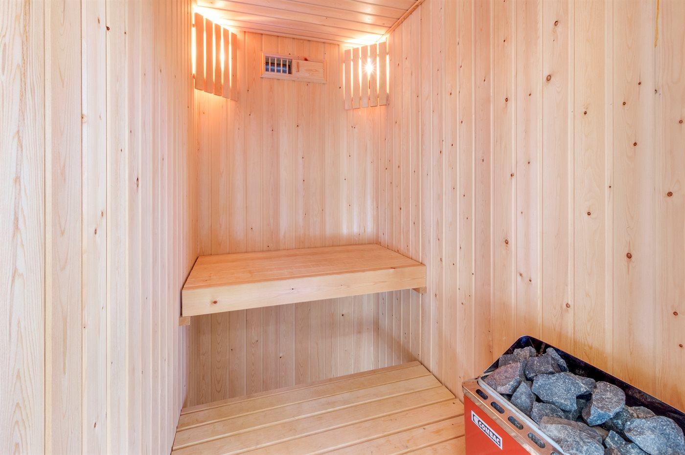 Er is 1 badkamer met douchehok en 1 toilet.. Er is vloerverwarming in 1 badkamer. De sauna biedt de gelegenheid tot ontspanning.