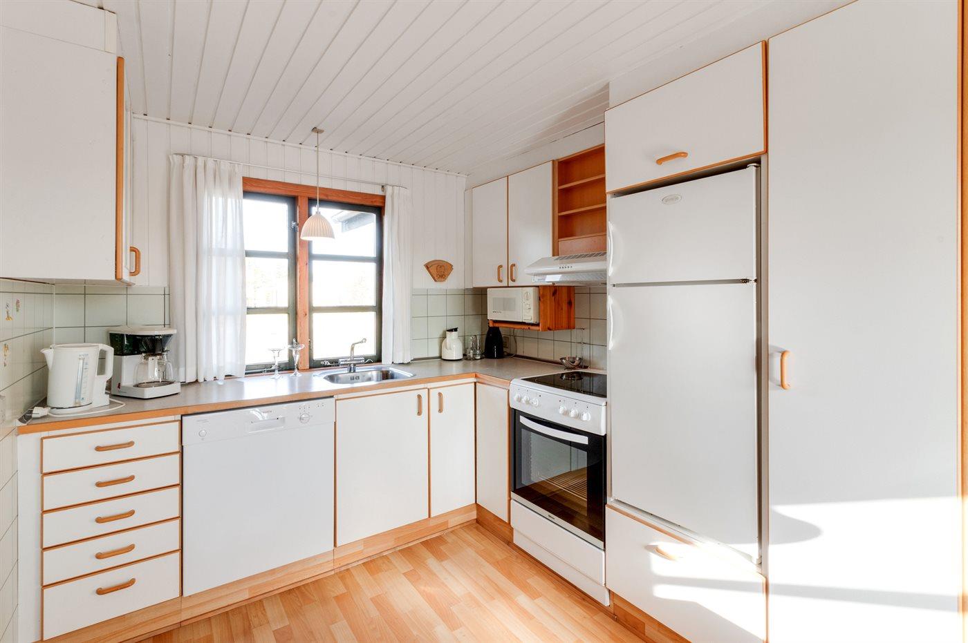 De keuken is uitgerust met koelkast Er zijn 4 keramische kookplaten, heteluchtoven, magnetron en vaatwasser.