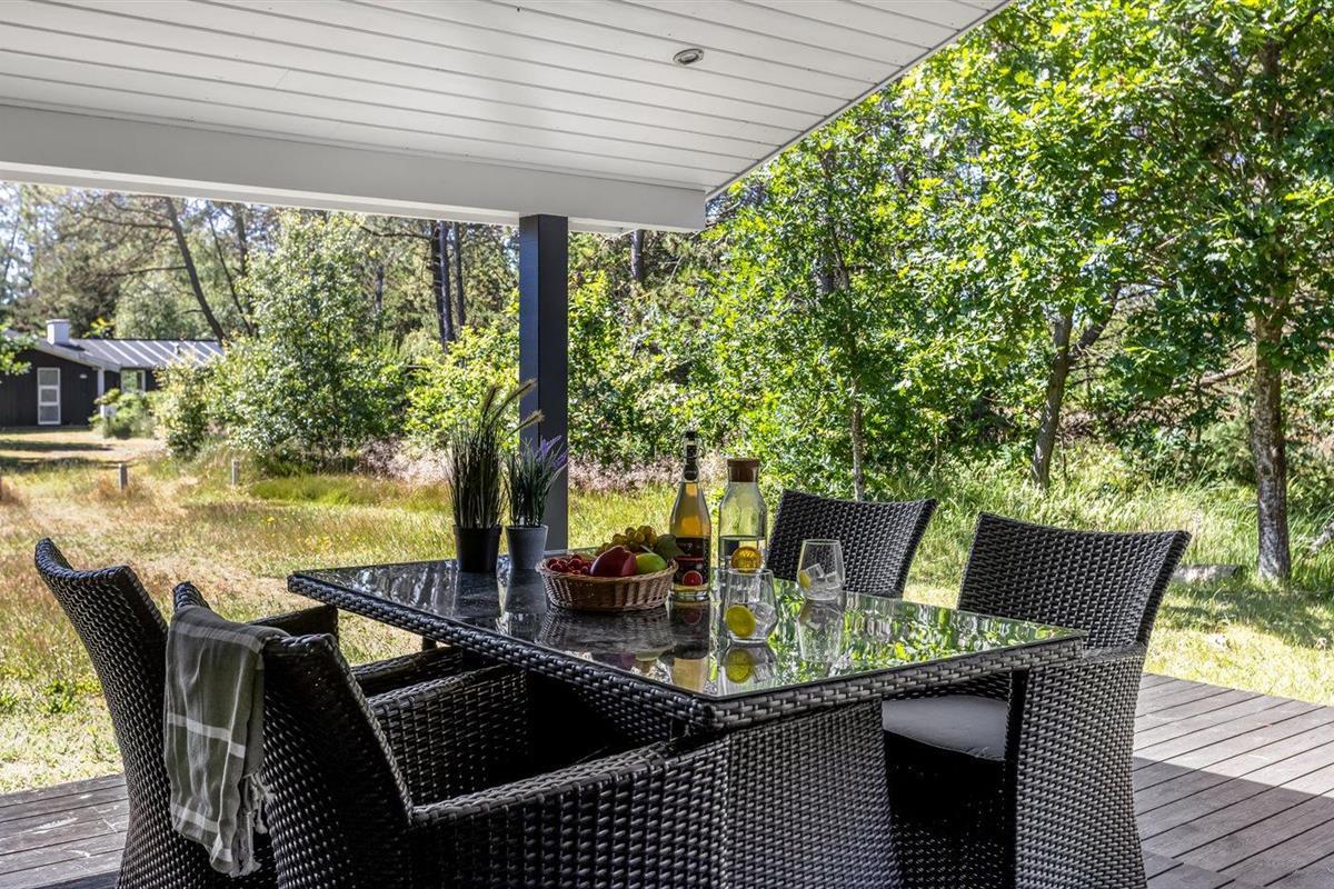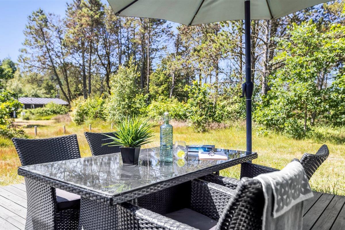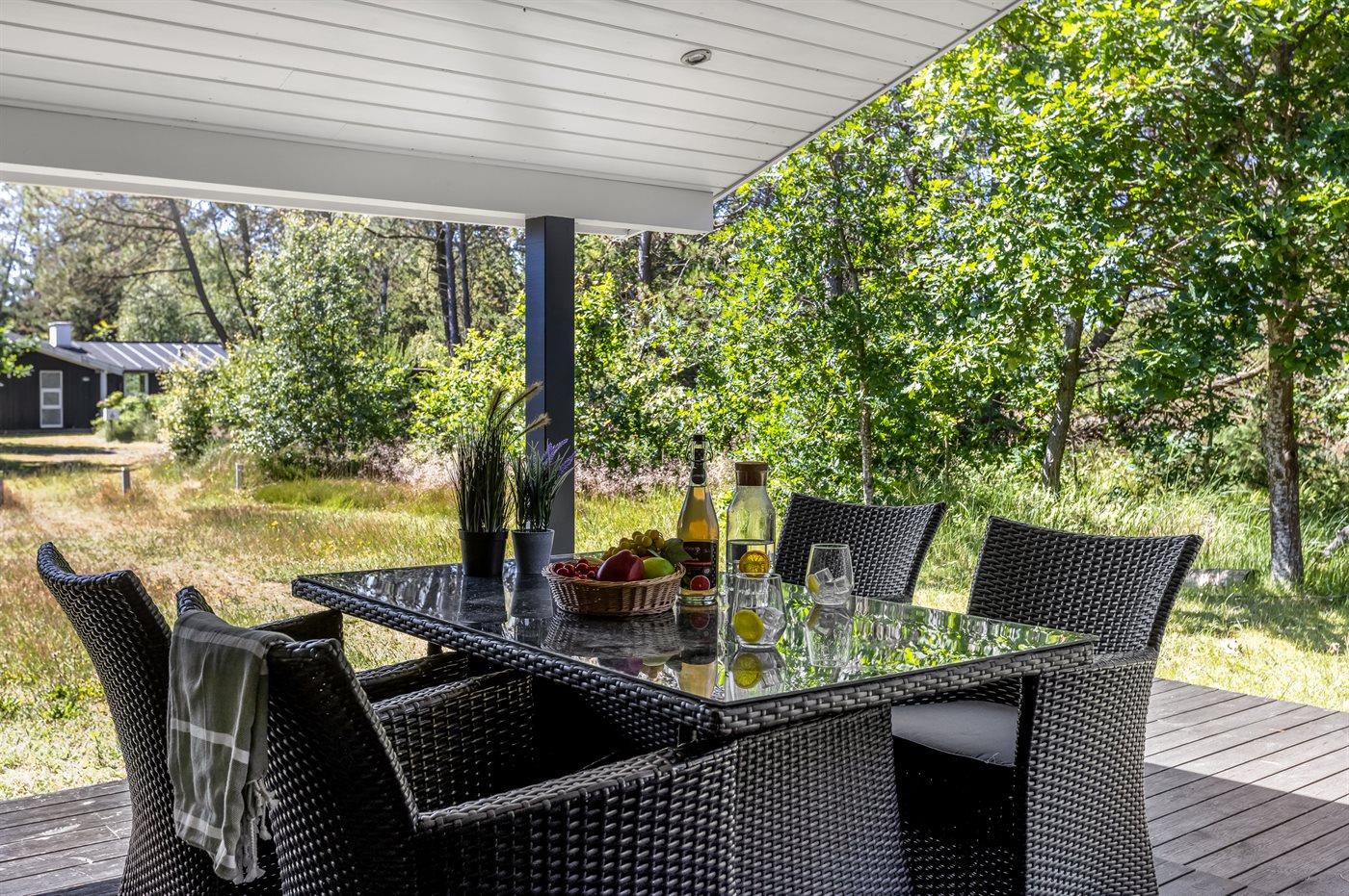 De vakantiewoning is gelegen op een 3000 m² groot natuural grond. Afstand tot de zee 150 m. Dichtstbijzijnde winkel 2000 m. Er is een golfbaan op een afstand van 7000 m. Bij de vakantiewoning hoort 35 m² terras. Daarnaast is er een 12 m² groot overdekt terras. Gereedschapsruimte. Zandbak.Gasbarbecue ter beschikking. Moet bij vertrek door de gasten schoon worden achtergelaten. Parkeerplaats bij het huis.