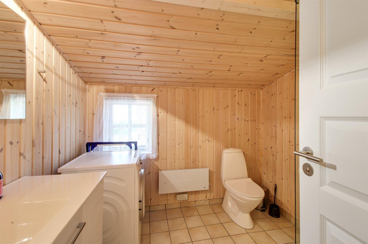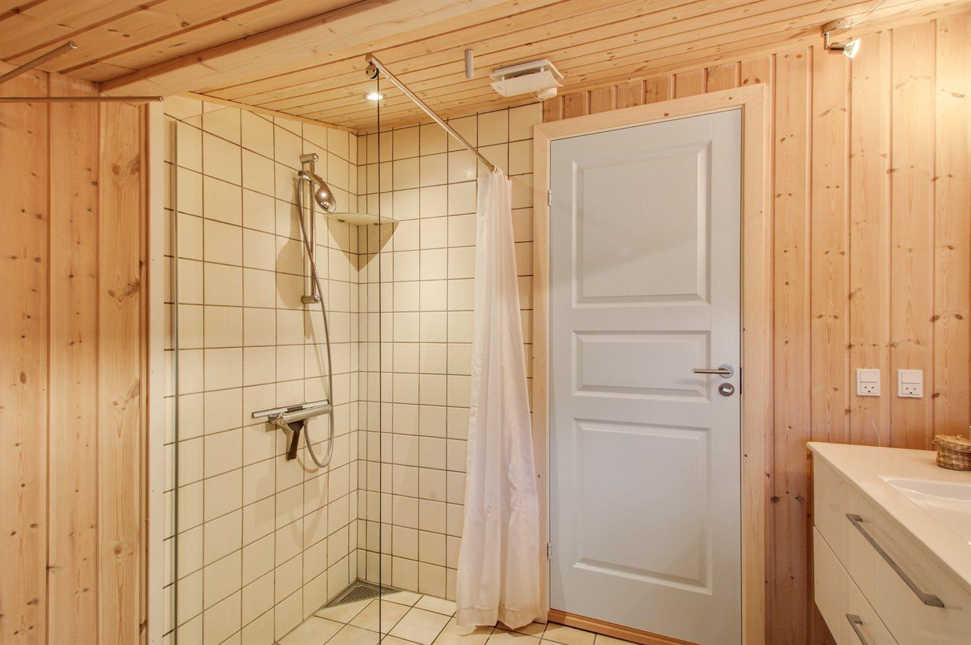 Er is 1 badkamers met douche, toilet en vloerverwarming. Er is 1 gastentoilet met vloerverwarming.