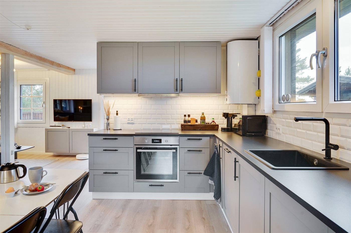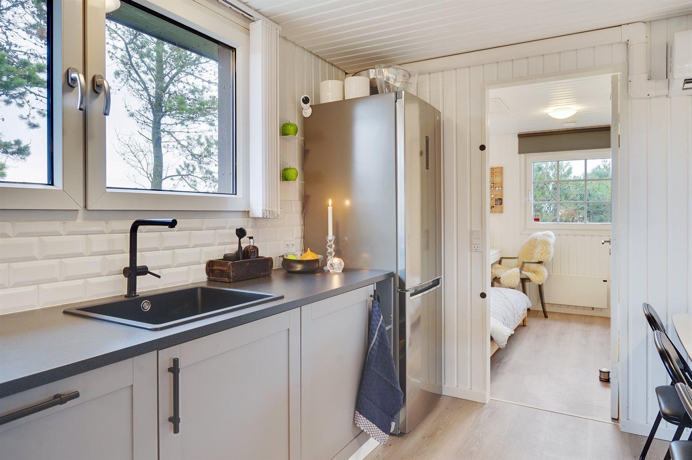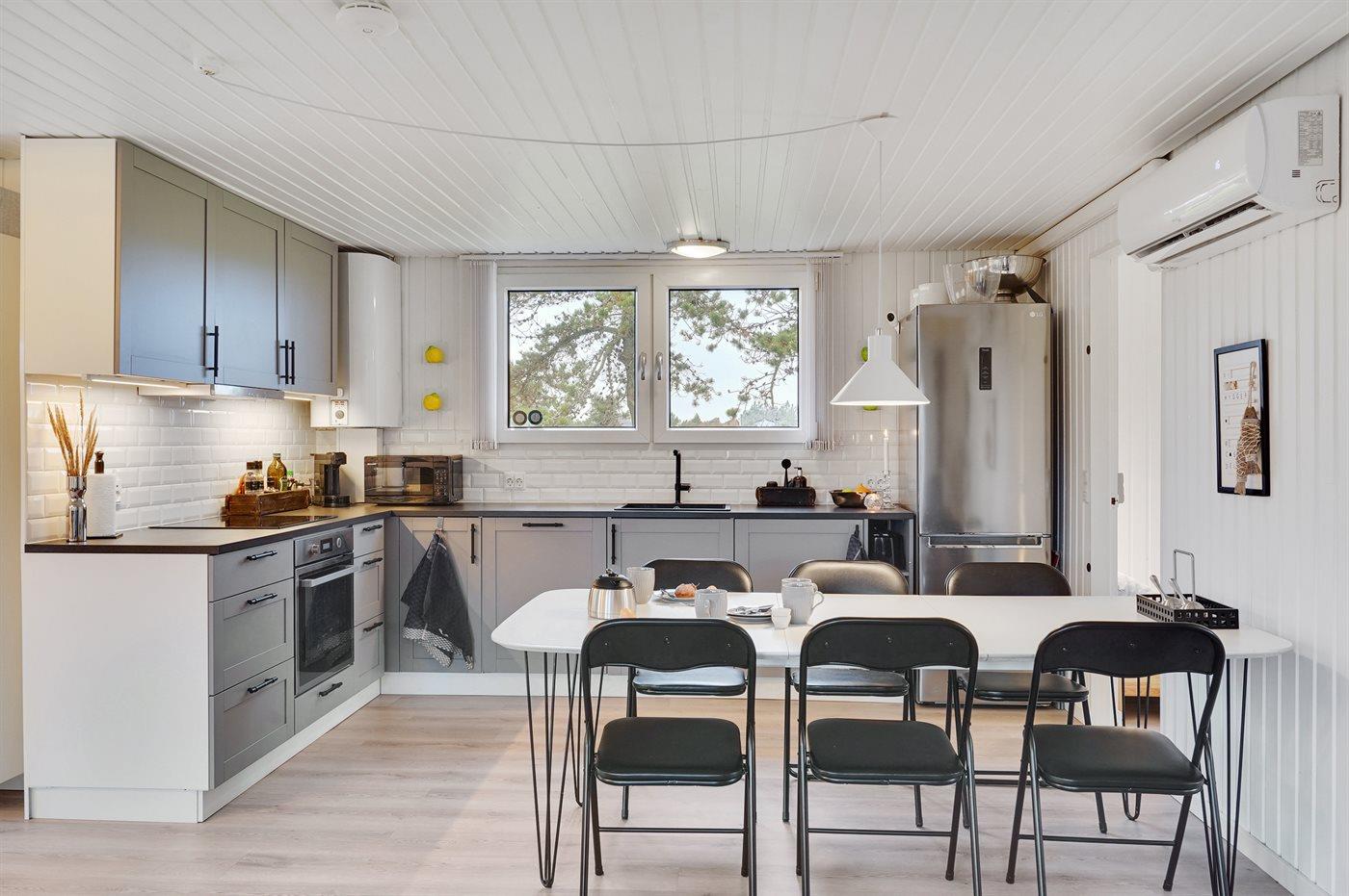 De keuken is uitgerust met koelkast Er is 4 inductiekookplaten, heteluchtoven, magnetron en vaatwasser.