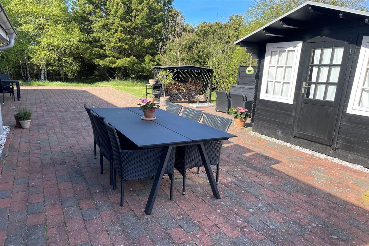 De vakantiewoning is gelegen op een 1000 m² groot aangelegde tuin. Afstand tot de zee 100 m. Dichtstbijzijnde winkel 8000 m. Er is een golfbaan op een afstand van 9100 m. Bij de vakantiewoning hoort terras. Daarnaast is er een overdekt terras. Barbecue. Het huis heeft een stopcontact voor het opladen van een elektrische auto. Parkeerplaats bij het huis.