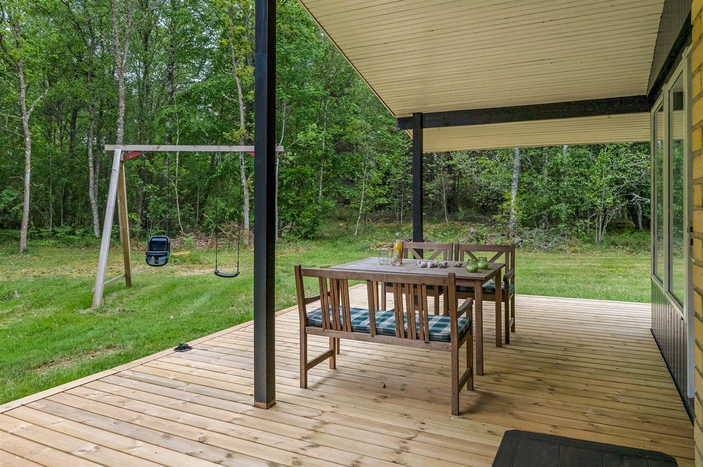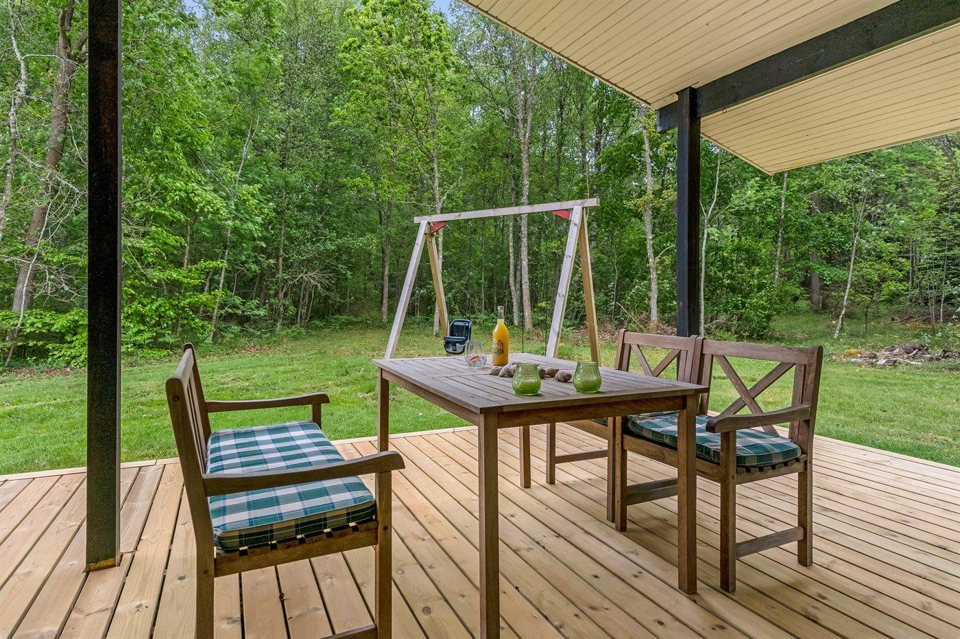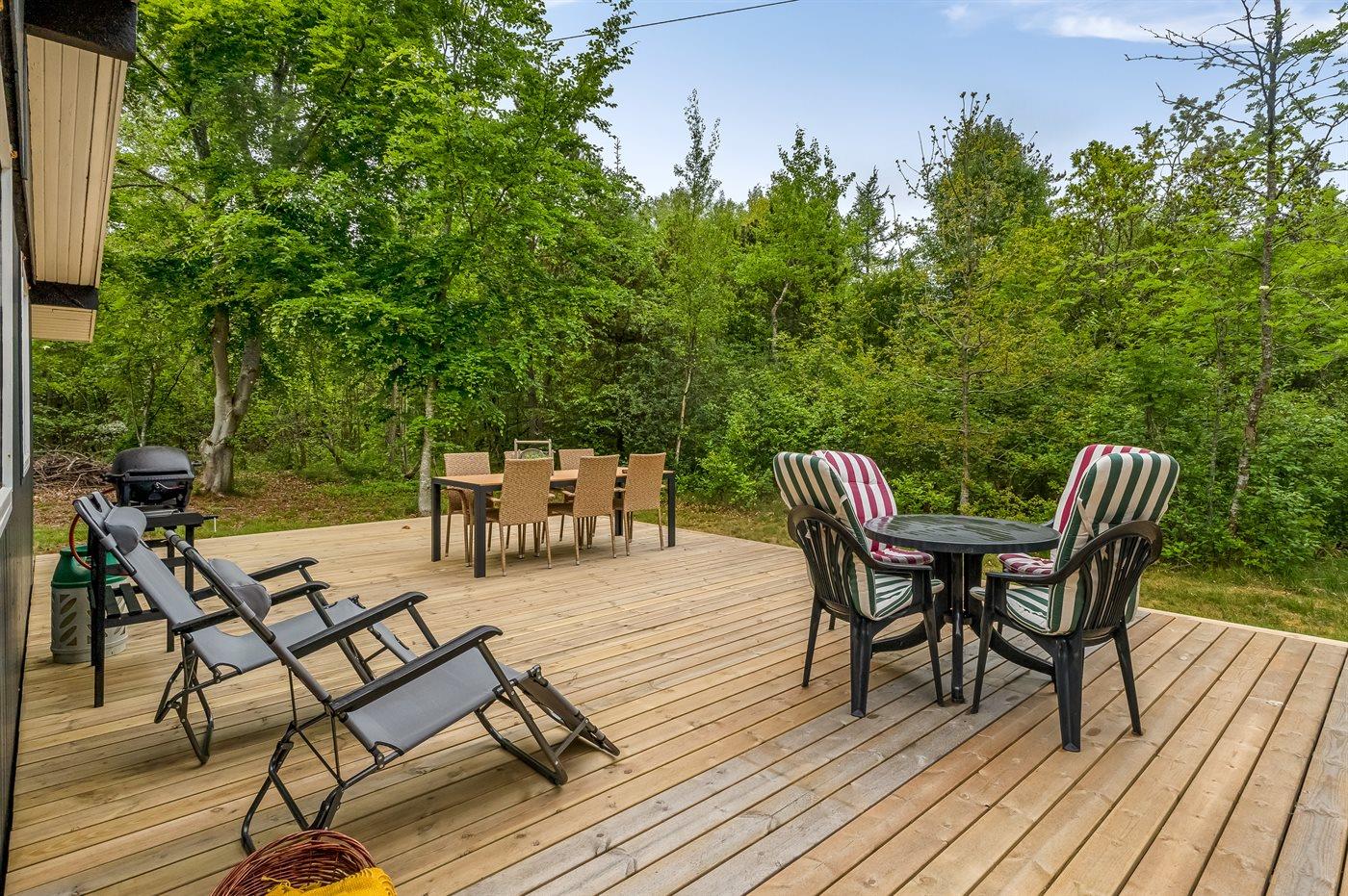 De vakantiewoning is gelegen op een 5000 m² groot natuural grond. Afstand tot de zee 1170 m. Dichtstbijzijnde winkel 3100 m. Bij de vakantiewoning hoort terras. Daarnaast is er een overdekt terras. Gereedschapsruimte. Schommel. 2 Gasbarbecue ter beschikking. Parkeerplaats bij het huis.