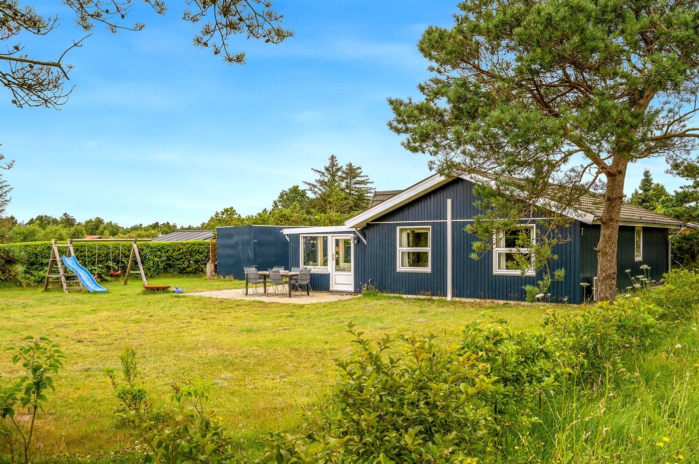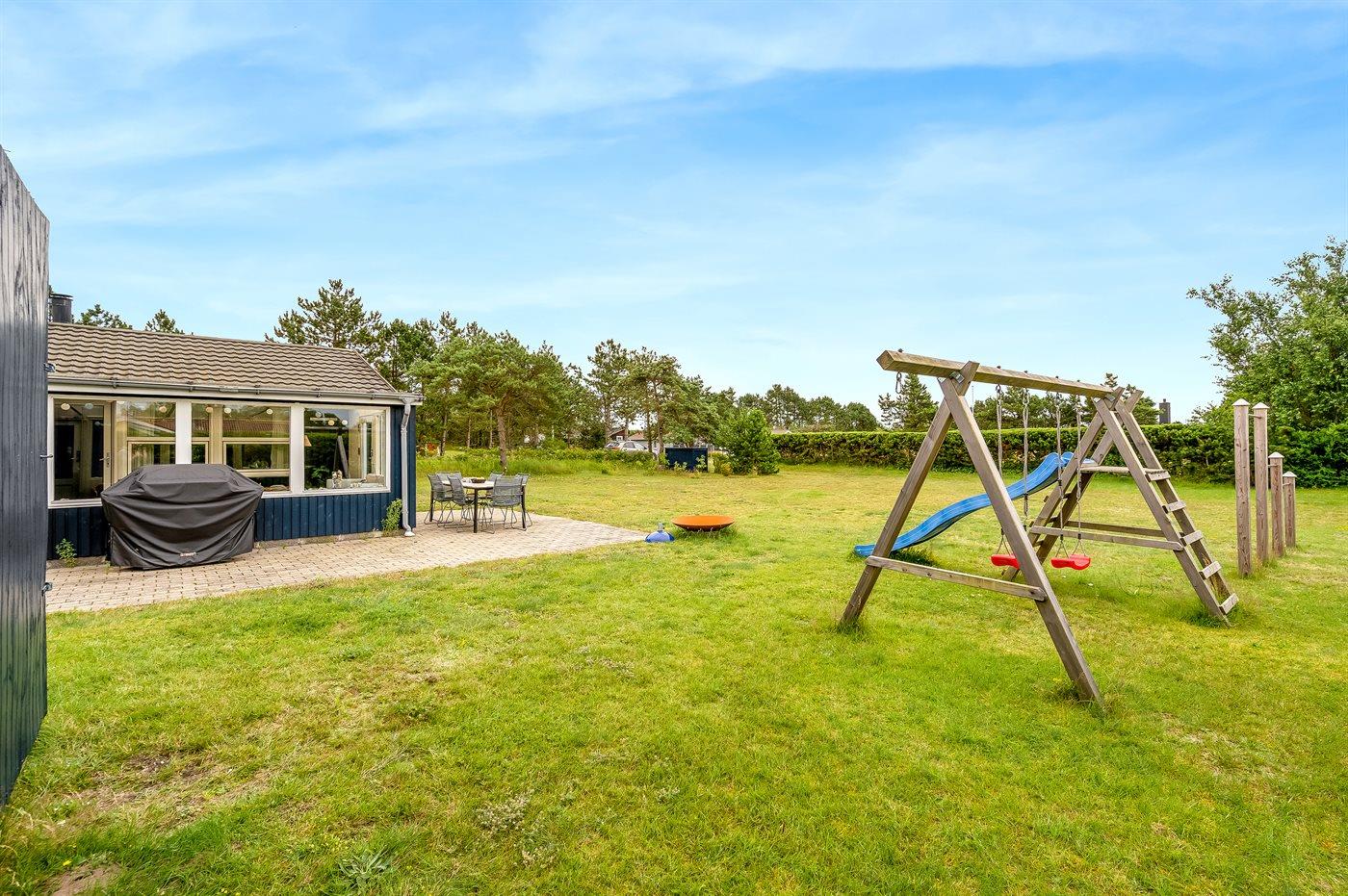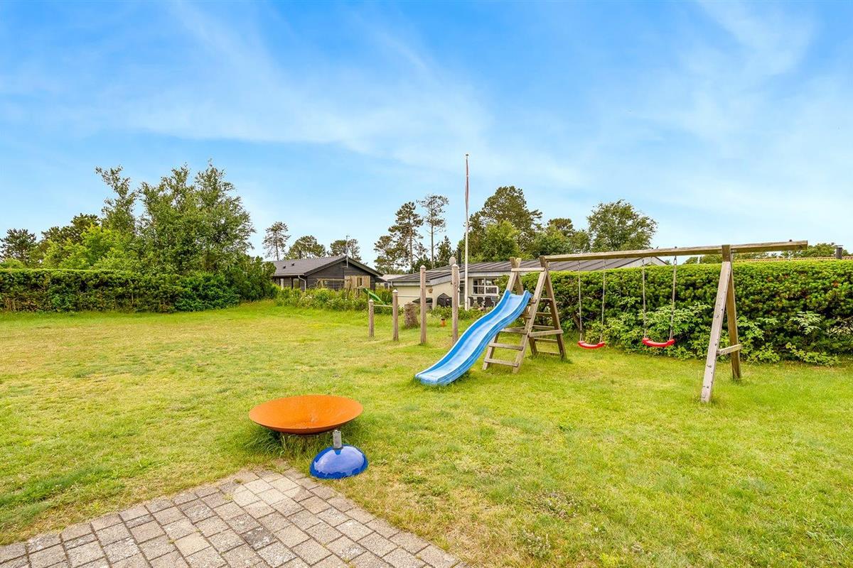 Moderne vakantiewoning vlak bij de zee met luxe voorzieningen en speelruimte voor kinderen.
