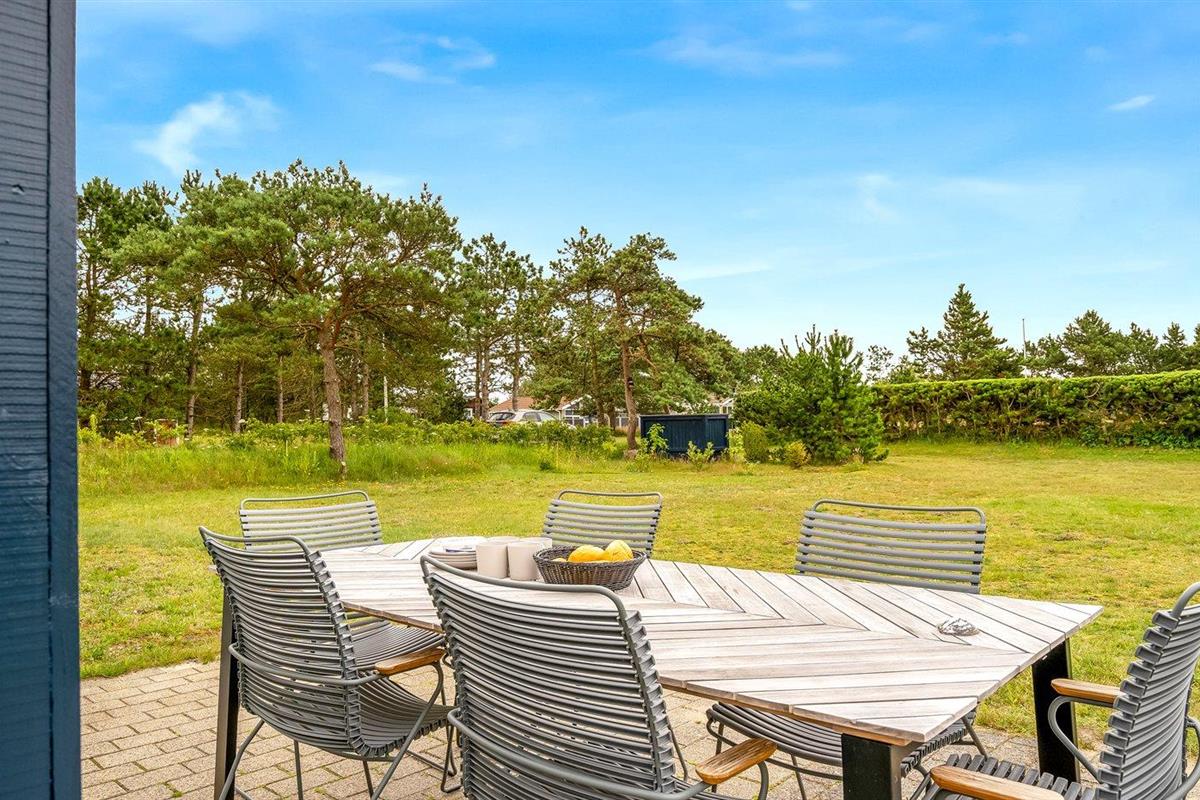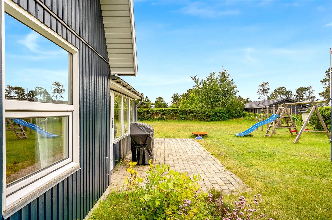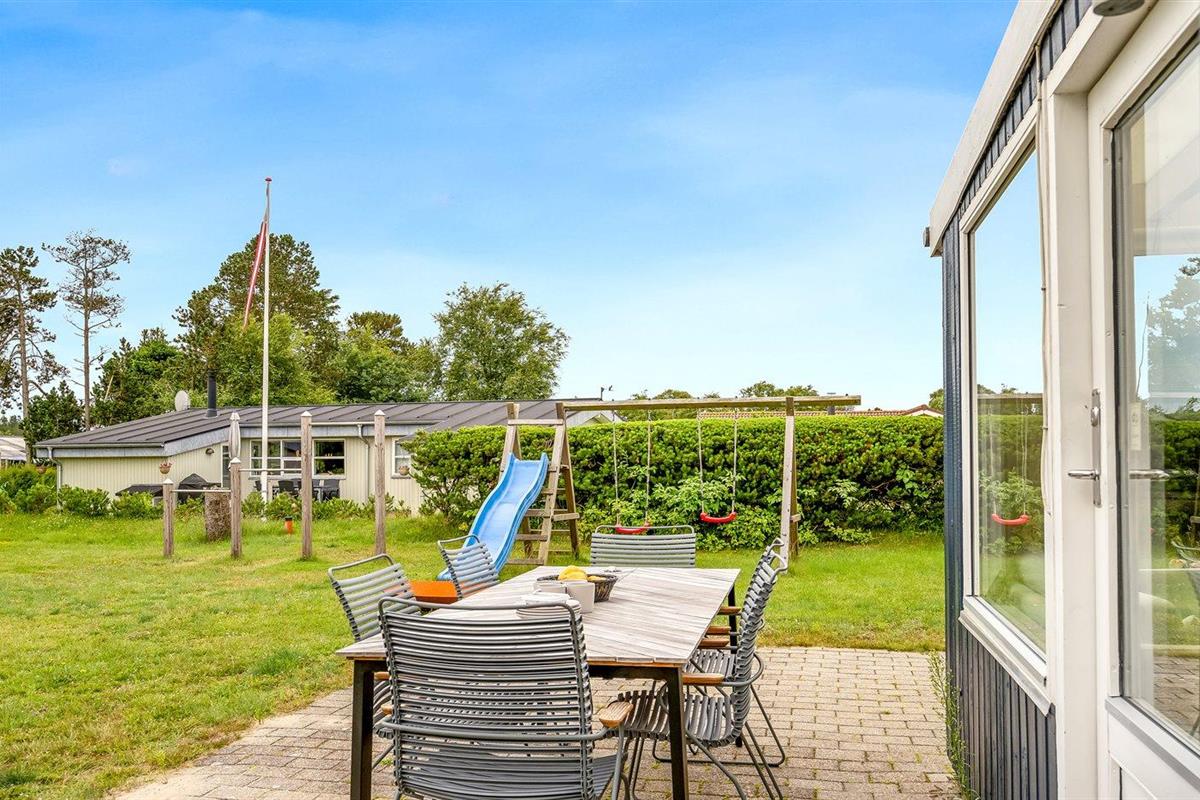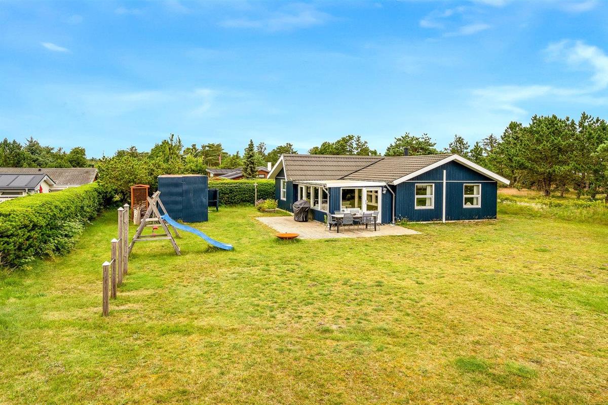 Moderne vakantiewoning vlak bij de zee met luxe voorzieningen en speelruimte voor kinderen.