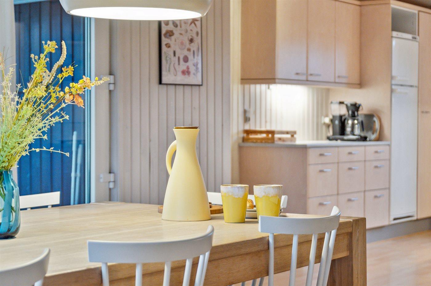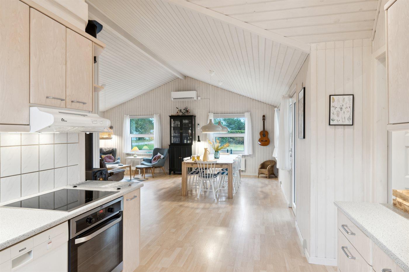 De keuken is uitgerust met koelkast Er is 4 inductiekookplaten, heteluchtoven, magnetron en vaatwasser.