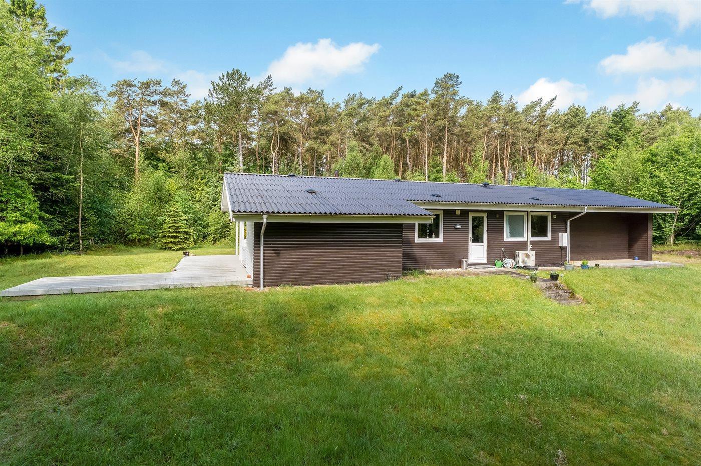 De vakantiewoning is gelegen op een 5000 m² groot grond in bos/park. Afstand tot de zee 1300 m. Dichtstbijzijnde winkel 6000 m. Er is een golfbaan op een afstand van 12000 m. Bij de vakantiewoning hoort terras. Daarnaast is er een overdekt terras. Gereedschapsruimte. Trampoline. Barbecue. Het huis heeft een stopcontact voor het opladen van een elektrische auto. Oplaadstekker type 2. Parkeerplaats bij het huis.